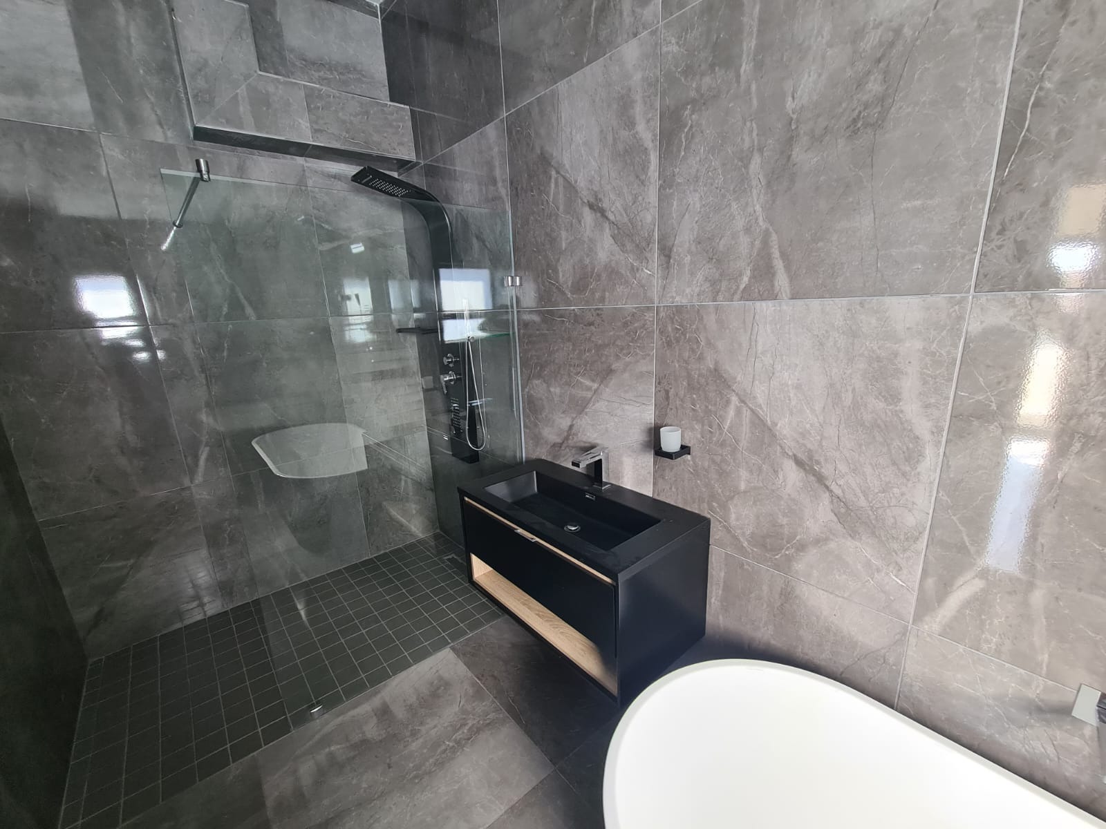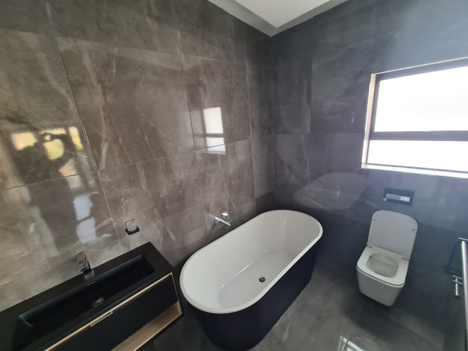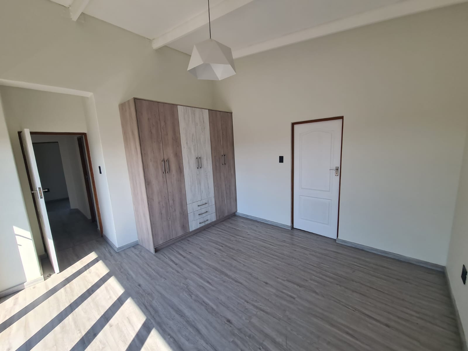 Upstairs, you’ll find three bedrooms fully fitted with modern cabinets, providing plenty of storage. The family bathroom boasts a stylish design with a shower, while the master bedroom includes an en-suite bathroom with a large shower for ultimate relaxation.
