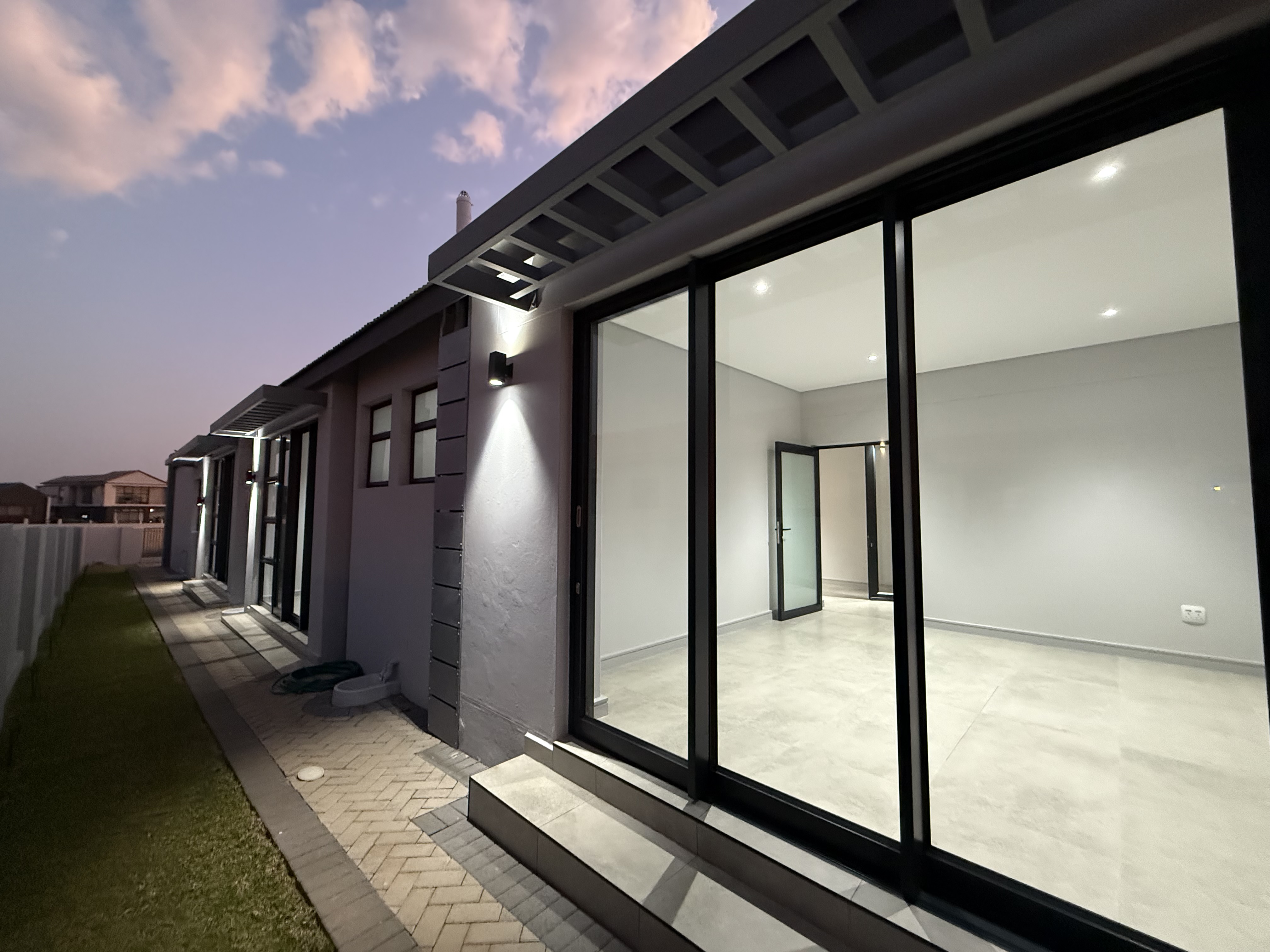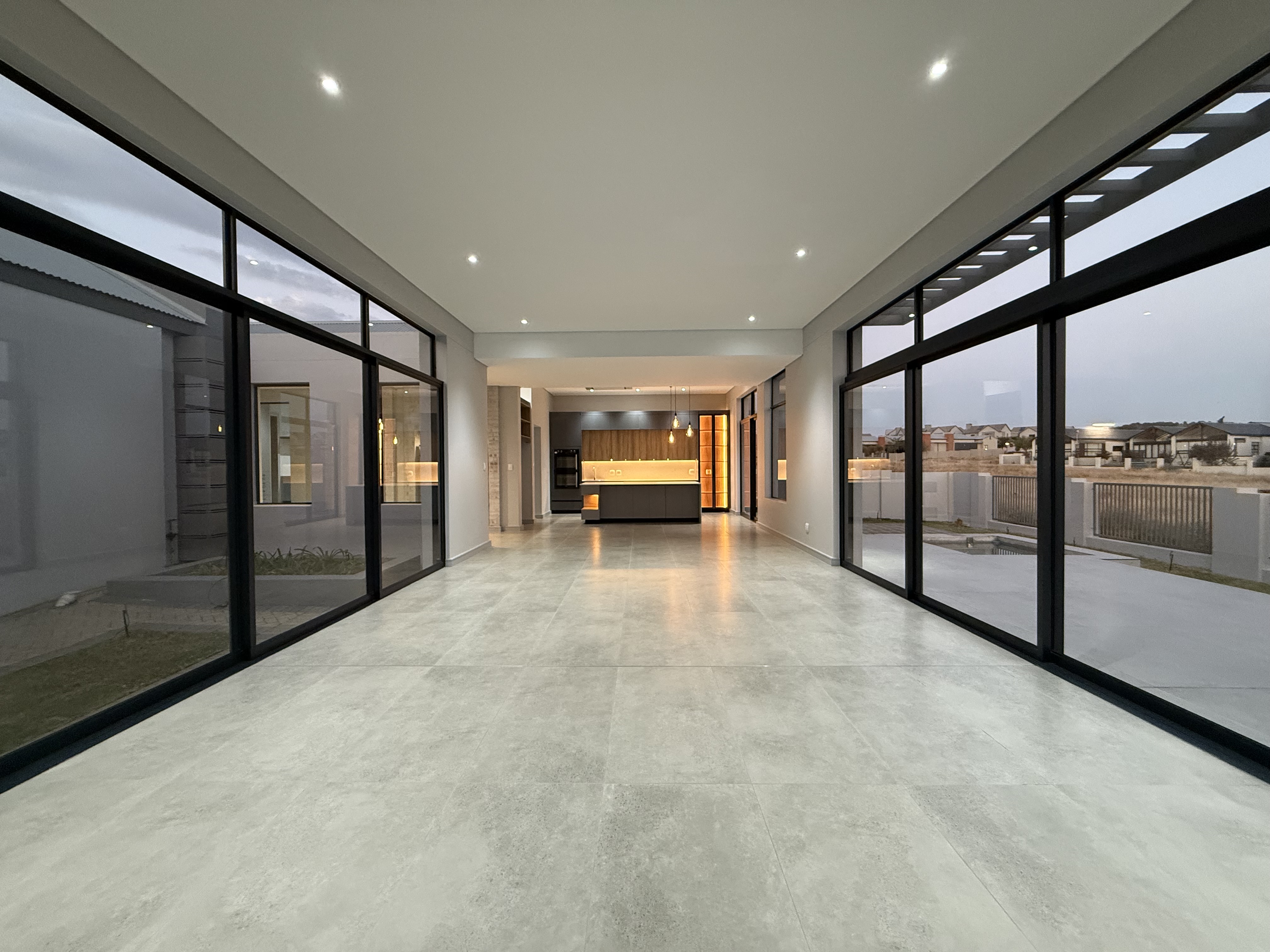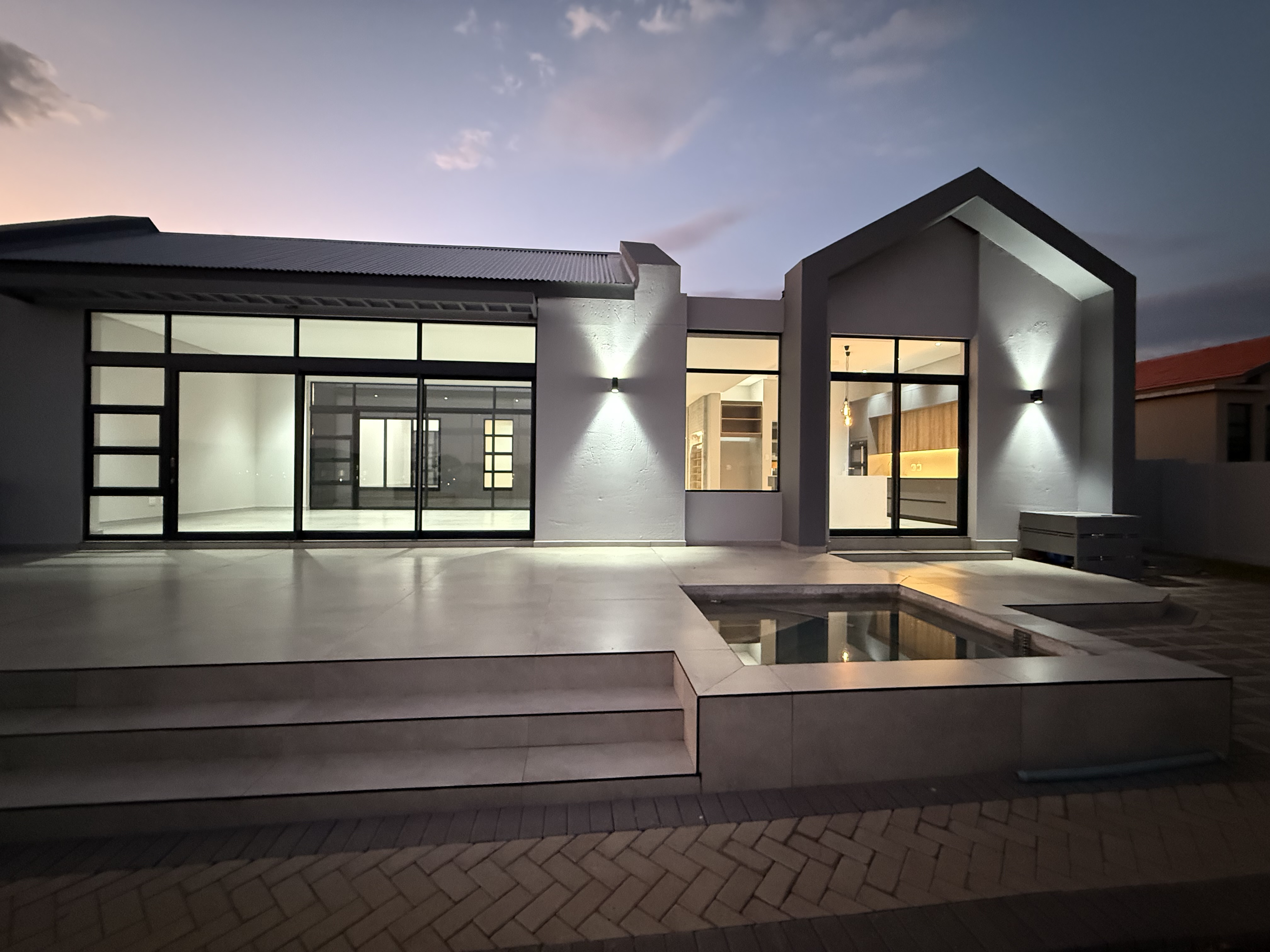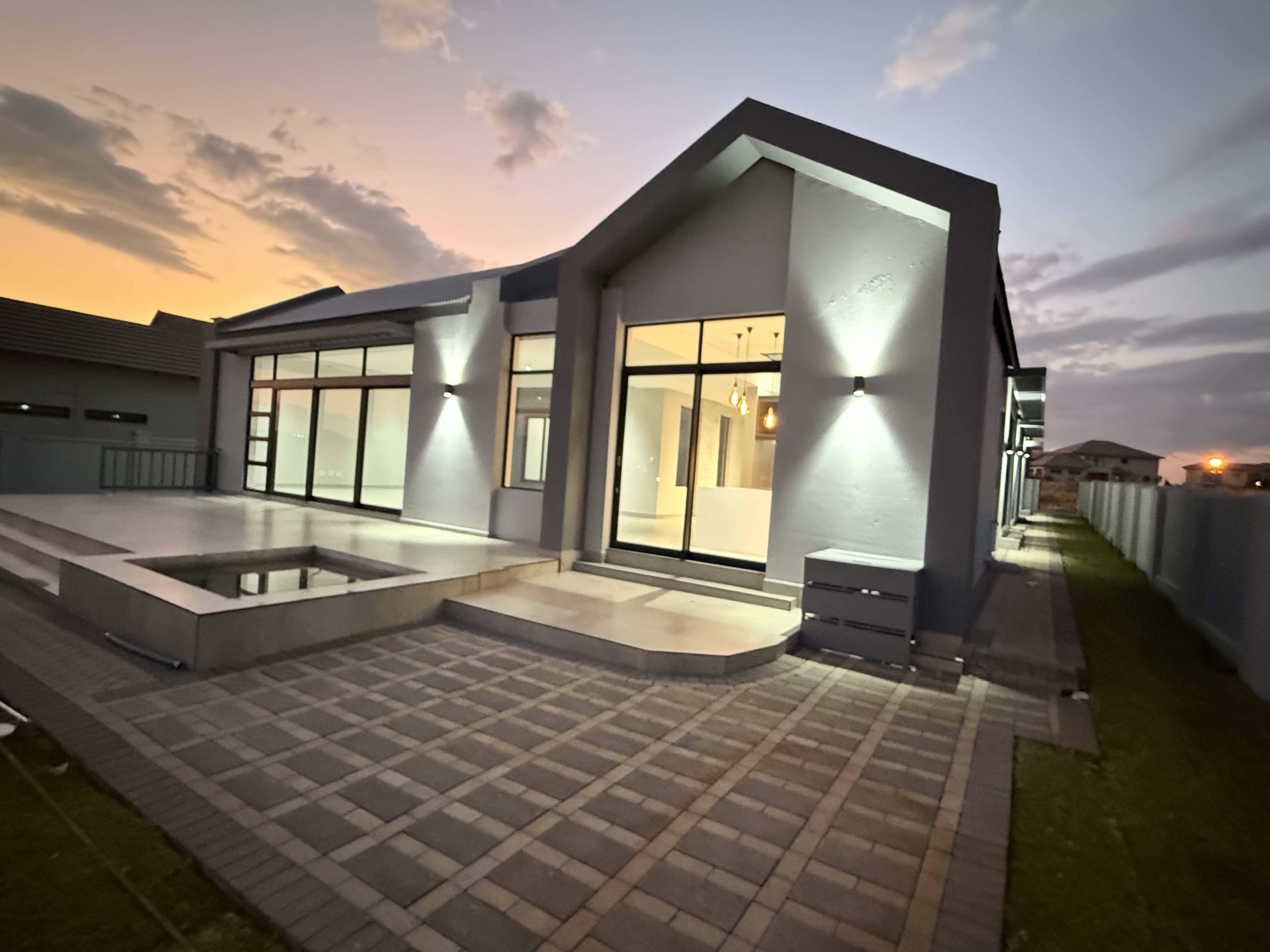 Step into a world of modern luxury and tranquil living with this newly built, ultra-modern family home, ideally positioned to embrace breathtaking greenbelt views. Designed with both sophistication and everyday comfort in mind, this home offers a seamless blend of open-plan elegance, high-end finishes, and thoughtful functionality. The home features four generously proportioned bedrooms, two of which include stylish en-suite bathrooms for added convenience and privacy. The versatile fourth bedroom is perfect as a home office or study, ideal for remote work or quiet productivity. The heart of the home is the expansive open-plan living and dining area, framed by sliding doors on both sides. One set opens onto a covered patio with a sparkling splash pool — the ultimate space for relaxing or entertaining while enjoying uninterrupted views of the natural surroundings. On the opposite side, a peaceful private courtyard offers a secluded retreat for morning coffee or evening unwinding. The designer kitchen is both practical and beautiful, boasting a large center island, walk-in pantry, and separate scullery. With panoramic views of the greenbelt, it’s the perfect space for hosting or enjoying family meals in a serene setting. The luxurious master suite is a true sanctuary, featuring a modern en-suite bathroom and direct access to the private garden through sliding doors — allowing for a seamless connection between indoor comfort and outdoor beauty. Additional features include a double garage with an integrated storeroom, an outside toilet, and high-quality finishes throughout. If you're looking for a home that offers contemporary style, generous space, and a strong connection to nature — this is the one. Call Annette today to arrange your private viewing and experience it for yourself.