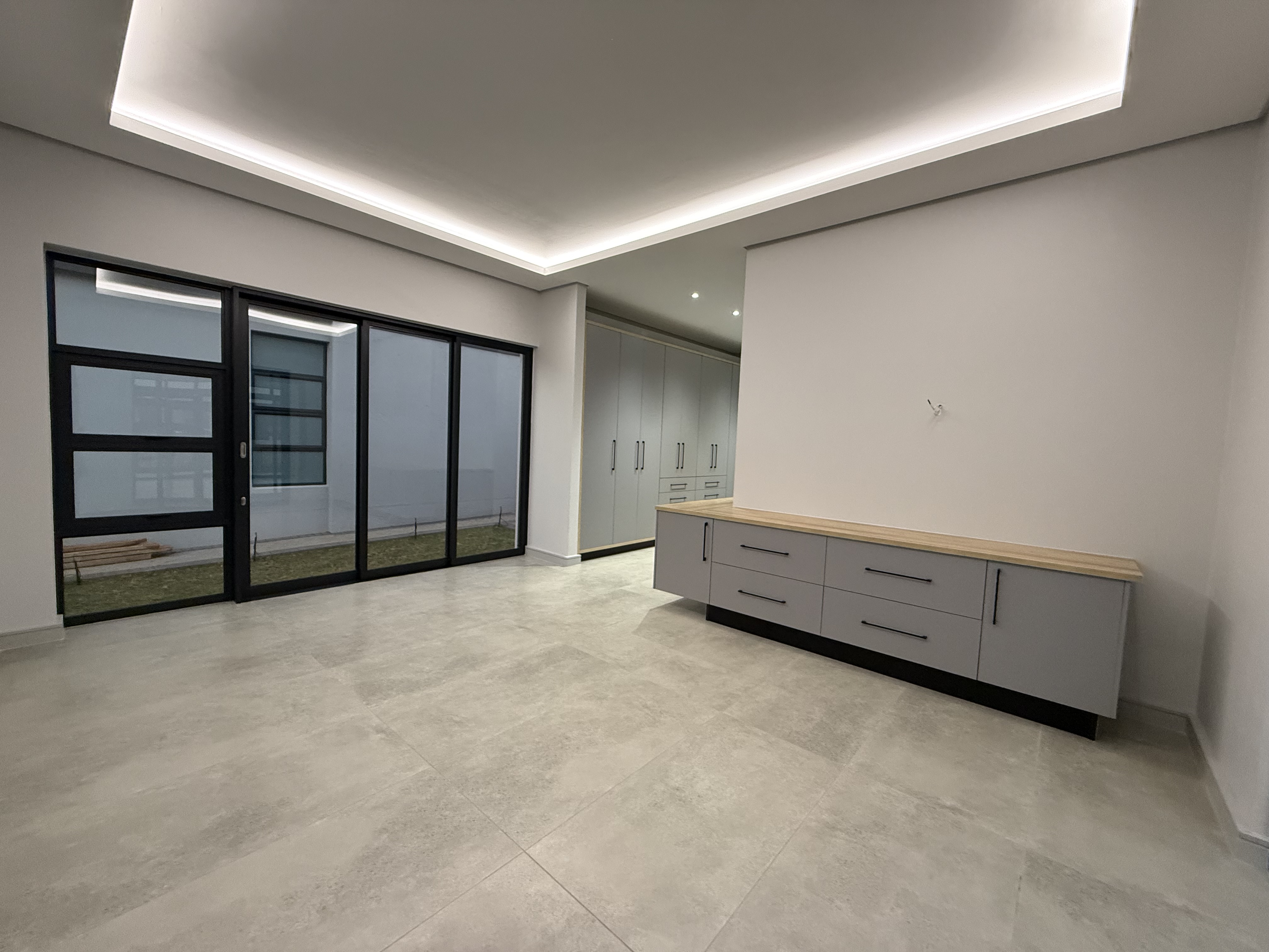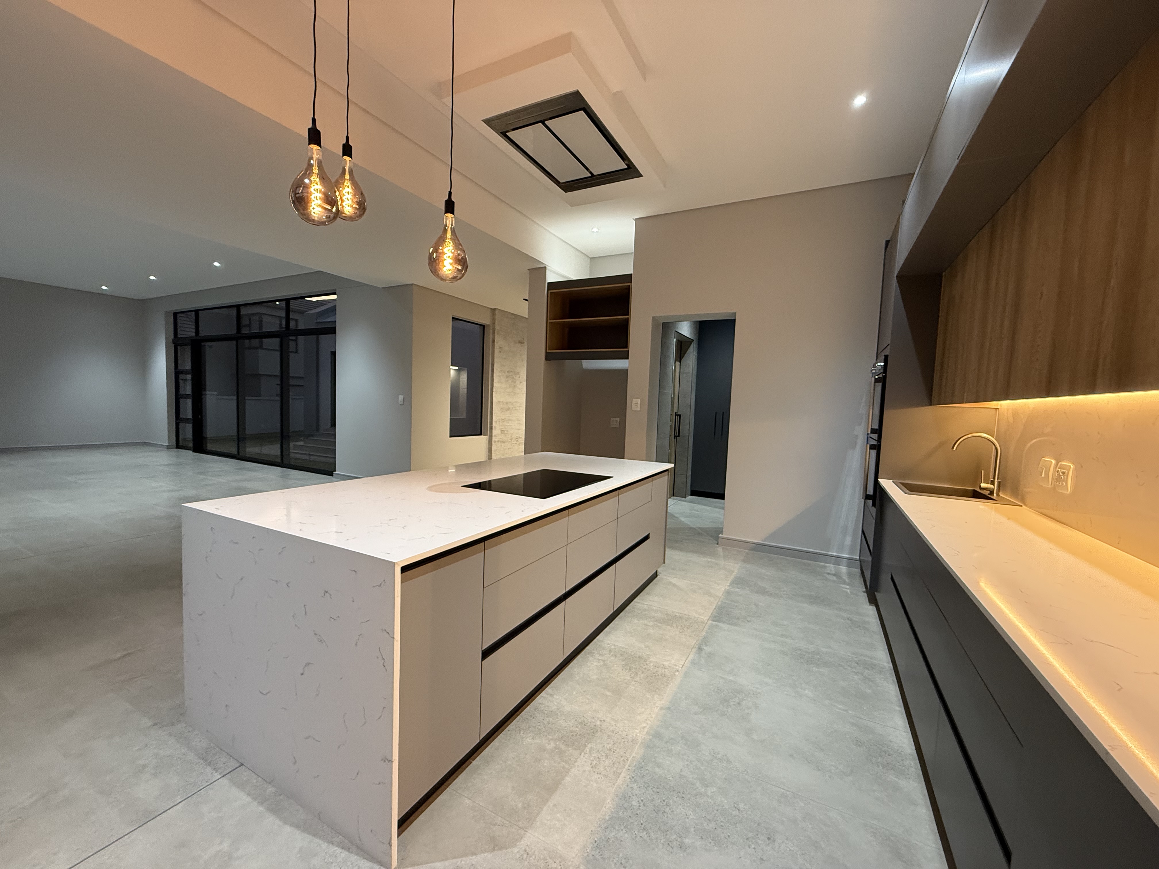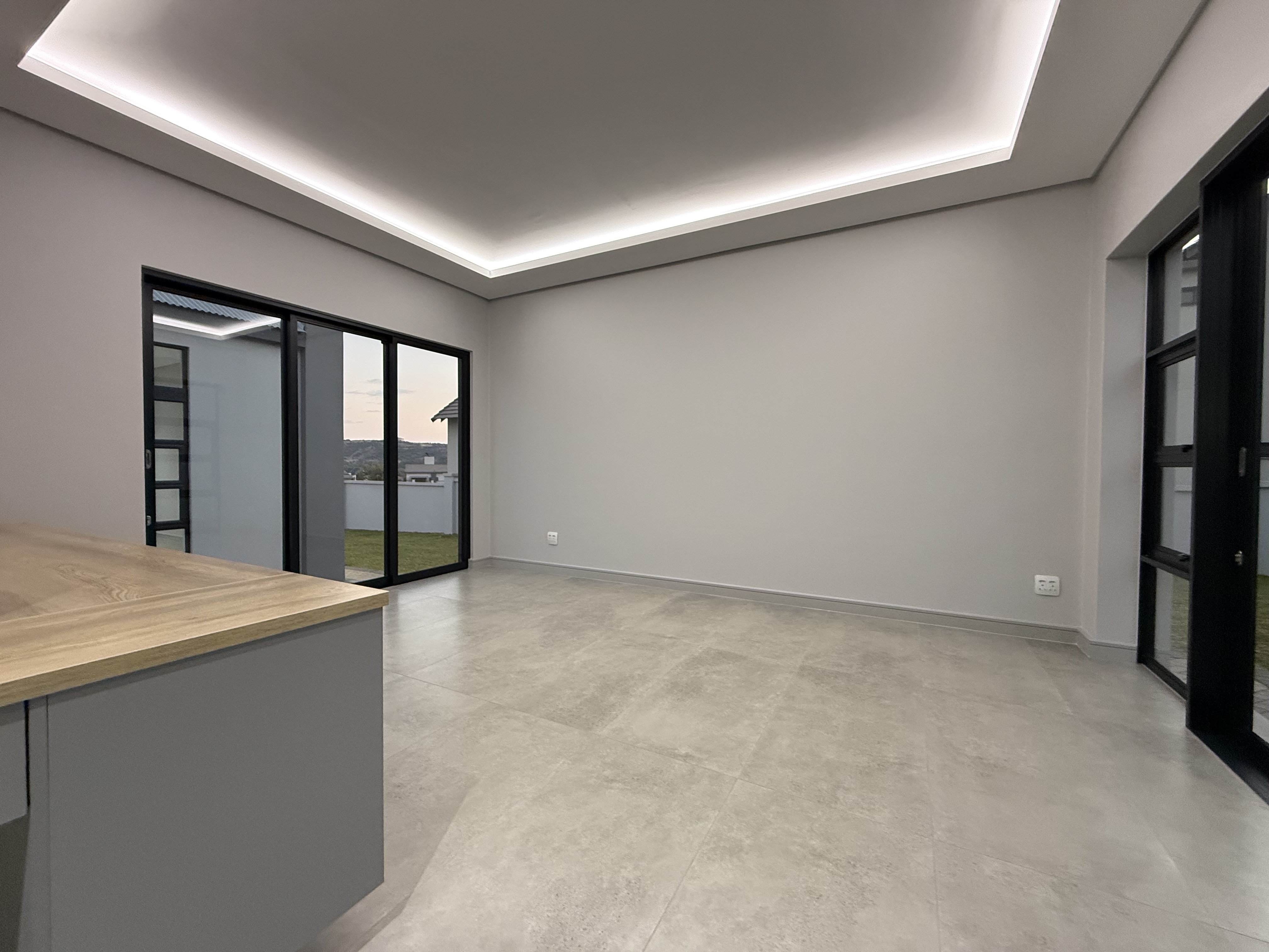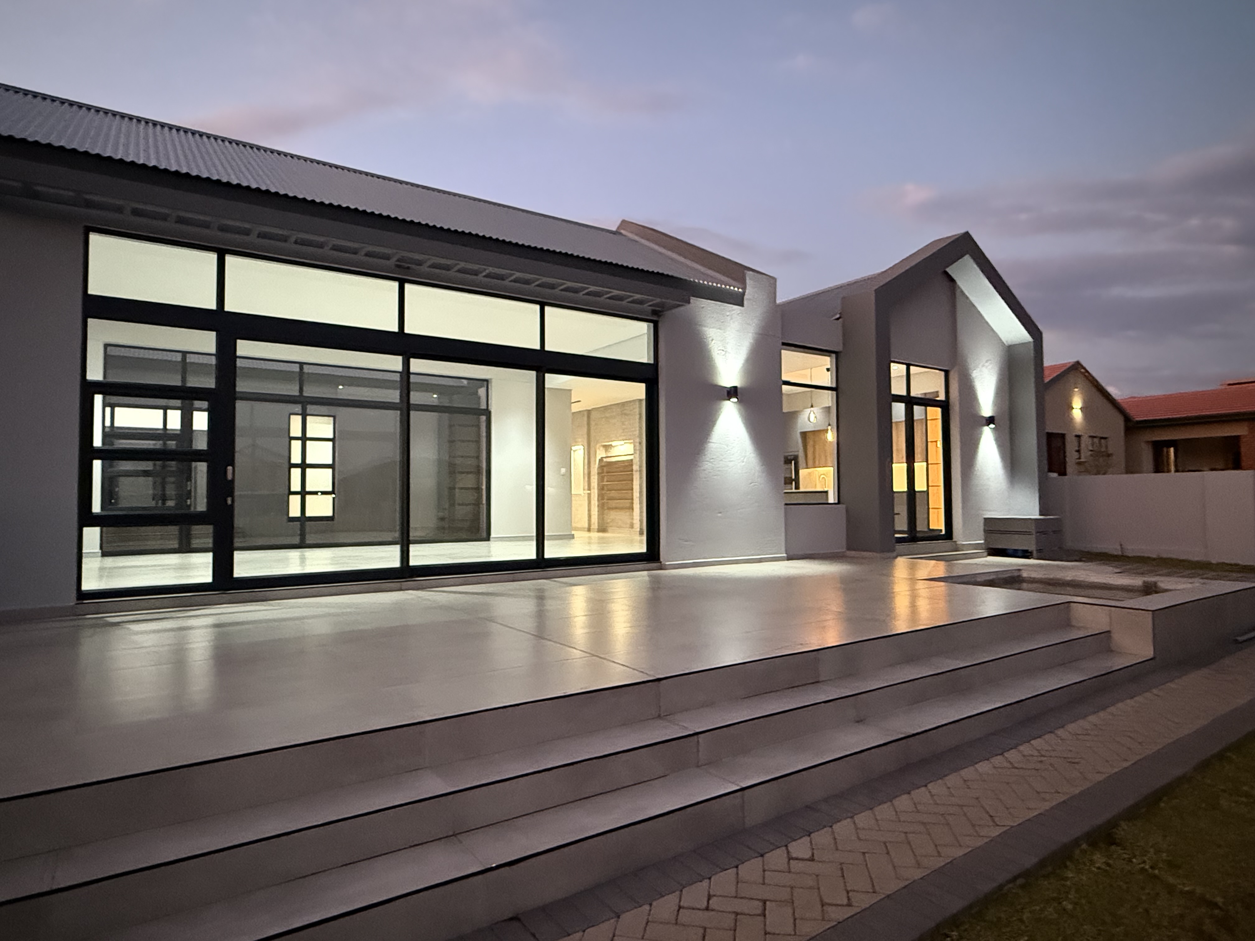 Step into a world of modern luxury and tranquil living with this newly built, ultra-modern family home, ideally positioned to embrace breathtaking greenbelt views. Designed with both sophistication and everyday comfort in mind, this home offers a seamless blend of open-plan elegance, high-end finishes, and thoughtful functionality. The home features four generously proportioned bedrooms, two of which include stylish en-suite bathrooms for added convenience and privacy. The versatile fourth bedroom is perfect as a home office or study, ideal for remote work or quiet productivity. The heart of the home is the expansive open-plan living and dining area, framed by sliding doors on both sides. One set opens onto a covered patio with a sparkling splash pool — the ultimate space for relaxing or entertaining while enjoying uninterrupted views of the natural surroundings. On the opposite side, a peaceful private courtyard offers a secluded retreat for morning coffee or evening unwinding. The designer kitchen is both practical and beautiful, boasting a large center island, walk-in pantry, and separate scullery. With panoramic views of the greenbelt, it’s the perfect space for hosting or enjoying family meals in a serene setting. The luxurious master suite is a true sanctuary, featuring a modern en-suite bathroom and direct access to the private garden through sliding doors — allowing for a seamless connection between indoor comfort and outdoor beauty. Additional features include a double garage with an integrated storeroom, an outside toilet, and high-quality finishes throughout. If you're looking for a home that offers contemporary style, generous space, and a strong connection to nature — this is the one. Call Annette today to arrange your private viewing and experience it for yourself.