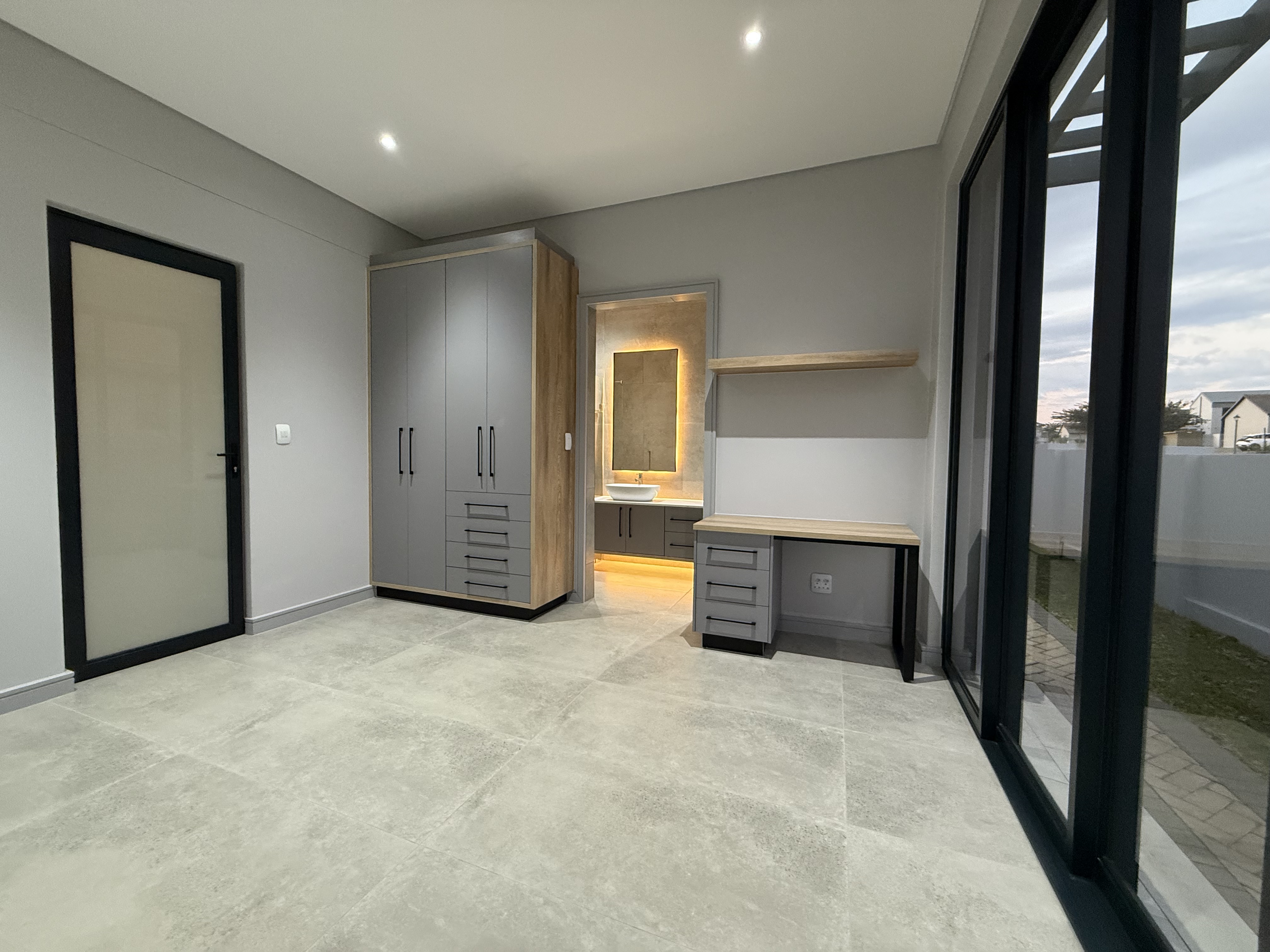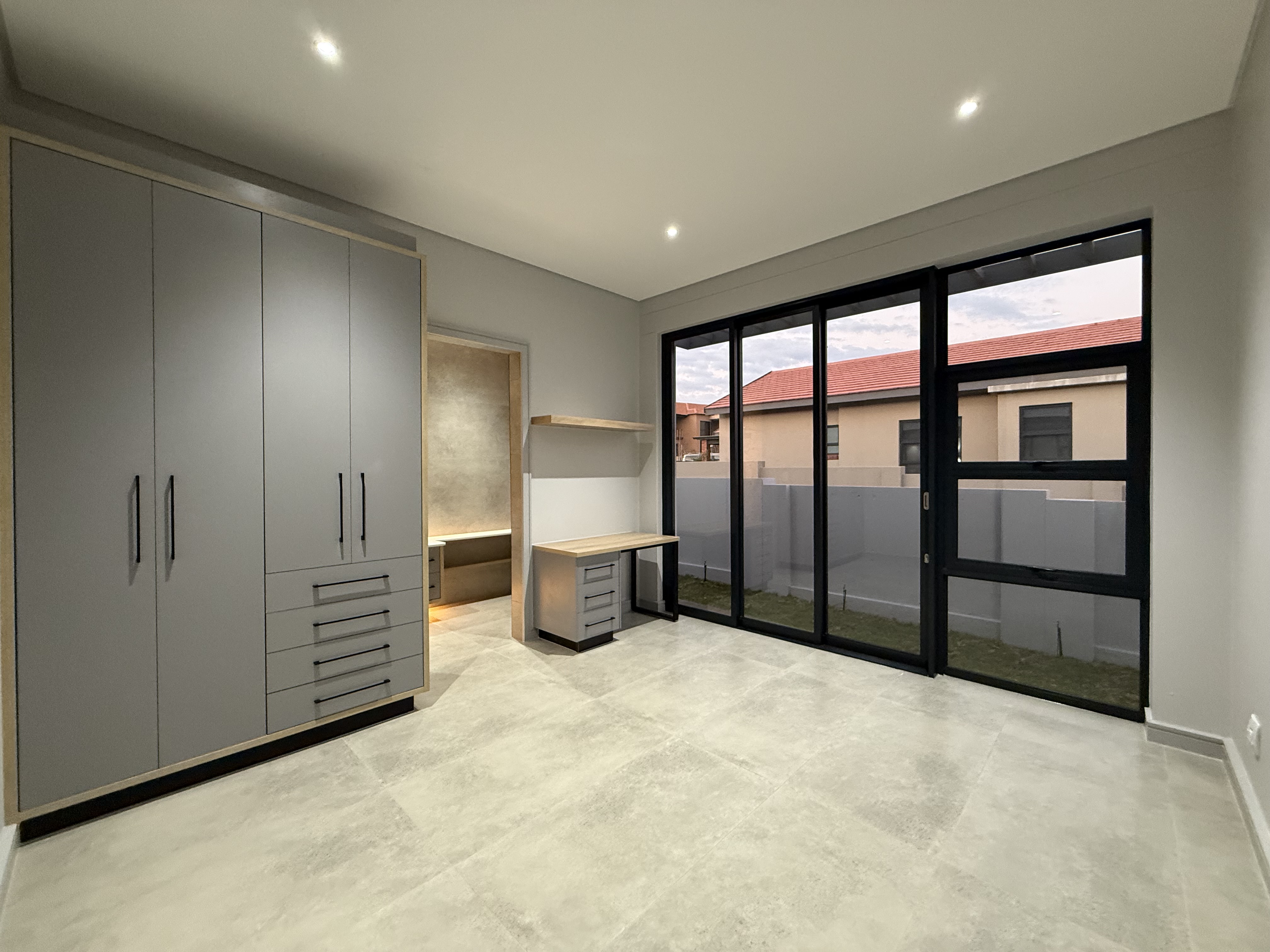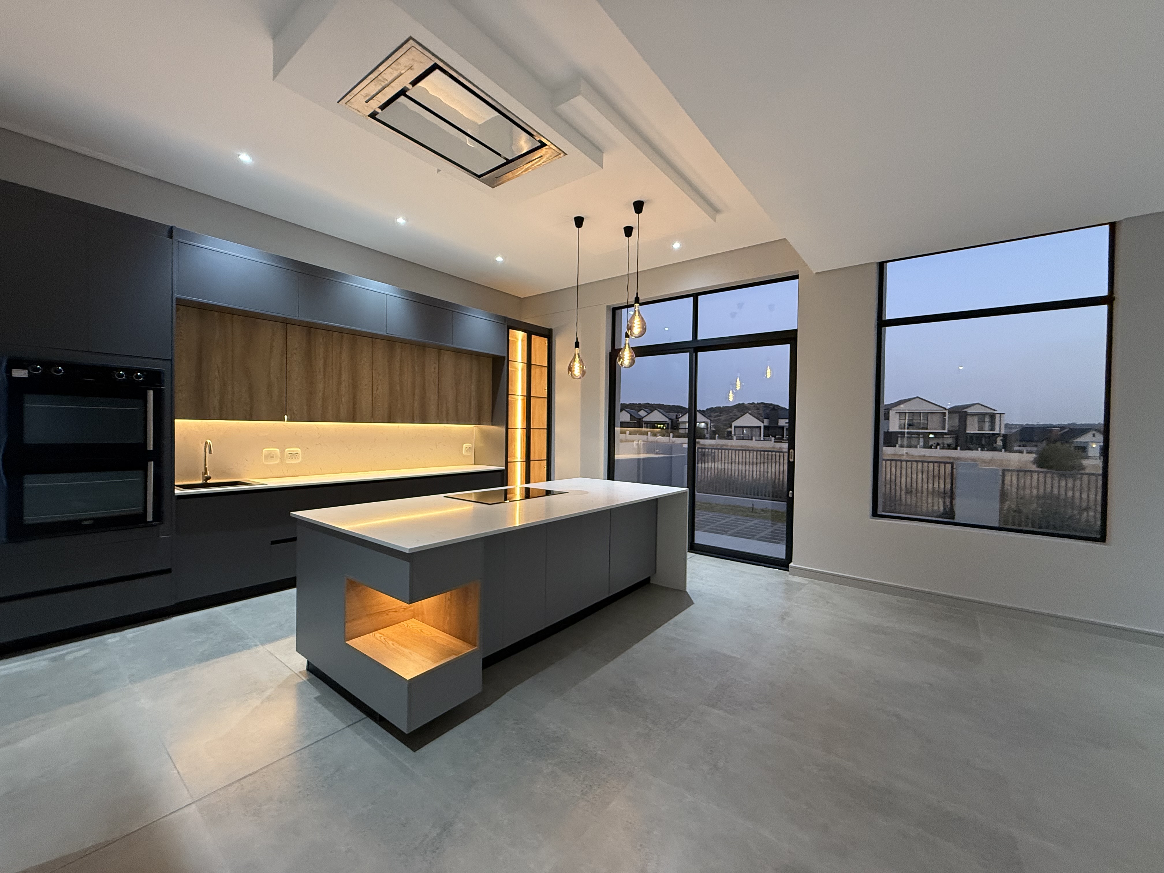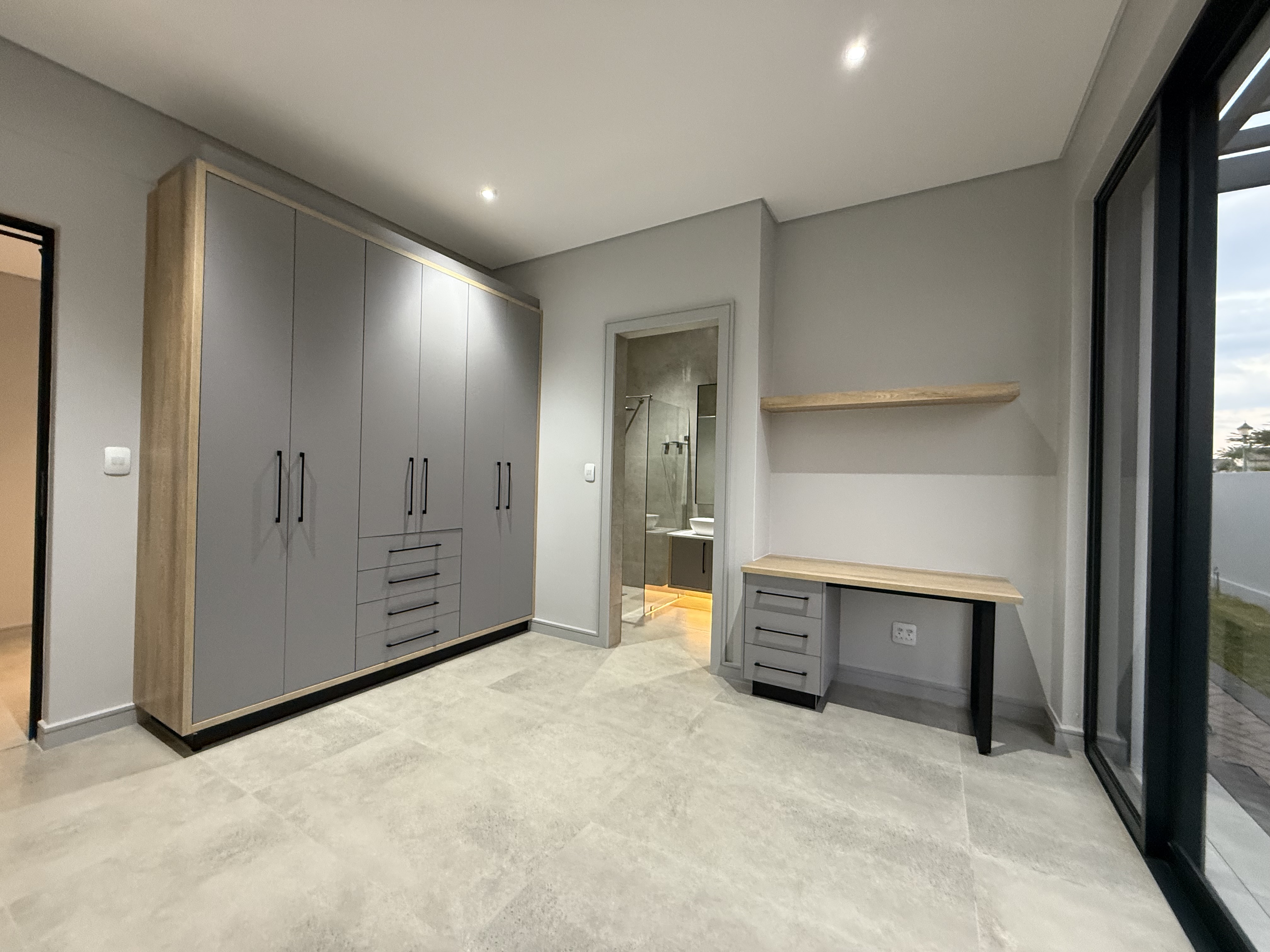 Step into a world of modern luxury and tranquil living with this newly built, ultra-modern family home, ideally positioned to embrace breathtaking greenbelt views. Designed with both sophistication and everyday comfort in mind, this home offers a seamless blend of open-plan elegance, high-end finishes, and thoughtful functionality. The home features four generously proportioned bedrooms, two of which include stylish en-suite bathrooms for added convenience and privacy. The versatile fourth bedroom is perfect as a home office or study, ideal for remote work or quiet productivity. The heart of the home is the expansive open-plan living and dining area, framed by sliding doors on both sides. One set opens onto a covered patio with a sparkling splash pool — the ultimate space for relaxing or entertaining while enjoying uninterrupted views of the natural surroundings. On the opposite side, a peaceful private courtyard offers a secluded retreat for morning coffee or evening unwinding. The designer kitchen is both practical and beautiful, boasting a large center island, walk-in pantry, and separate scullery. With panoramic views of the greenbelt, it’s the perfect space for hosting or enjoying family meals in a serene setting. The luxurious master suite is a true sanctuary, featuring a modern en-suite bathroom and direct access to the private garden through sliding doors — allowing for a seamless connection between indoor comfort and outdoor beauty. Additional features include a double garage with an integrated storeroom, an outside toilet, and high-quality finishes throughout. If you're looking for a home that offers contemporary style, generous space, and a strong connection to nature — this is the one. Call Annette today to arrange your private viewing and experience it for yourself.