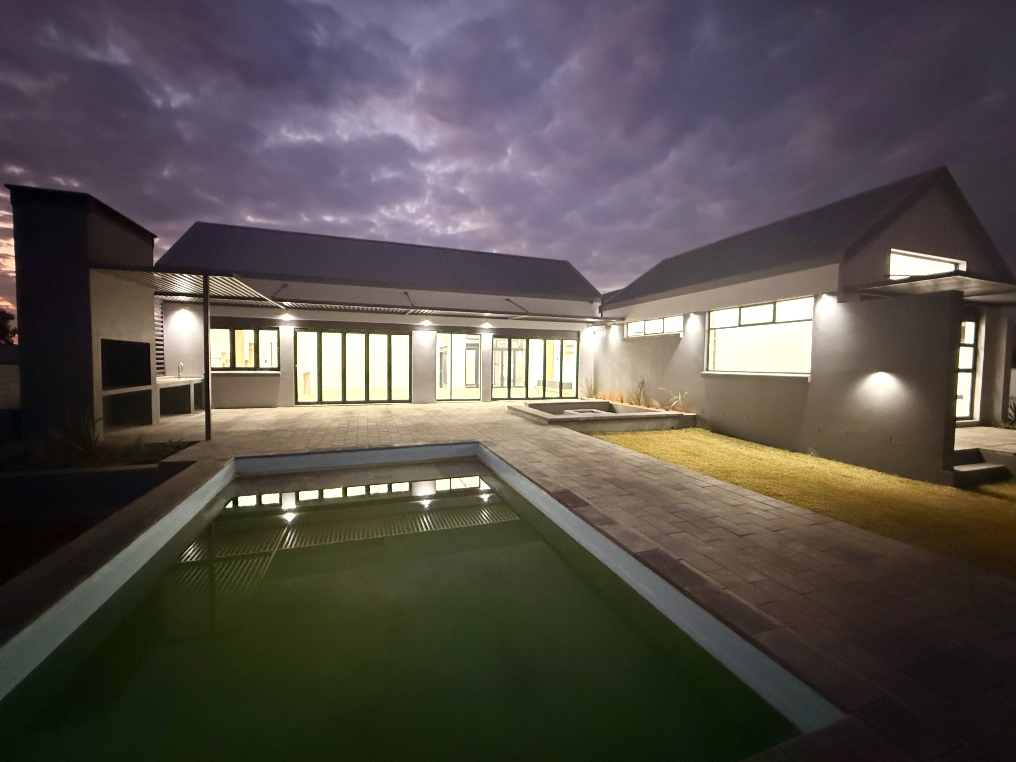 Step into a world of elegance and tranquillity with this pristine, newly built home in one of the most prestigious wildlife estates. Designed with comfort, style, and functionality in mind, this property is ready to welcome its first family. The heart of the home is the spacious open-plan lounge, dining room, and kitchen, boasting high ceilings and an abundance of natural light through large windows. The kitchen is well-appointed with a separate laundry and a domestic bathroom for added convenience. A beautiful private study creates the perfect space to work from home in peace and style. With four generously sized bedrooms and four modern bathrooms, the home offers ample space for family living. The luxurious main bedroom features a large walk-in closet and a full en-suite bathroom. Entertain in style at the inviting swimming pool area, complete with a built-in braai – the ideal spot for family gatherings and weekend relaxation. This exceptional estate offers top-tier security, paddle courts, horse stables, and scenic walking trails, allowing residents to enjoy a secure and active lifestyle surrounded by nature. Don’t miss out on this dream home – contact Annette Kasselman today to arrange a private viewing.