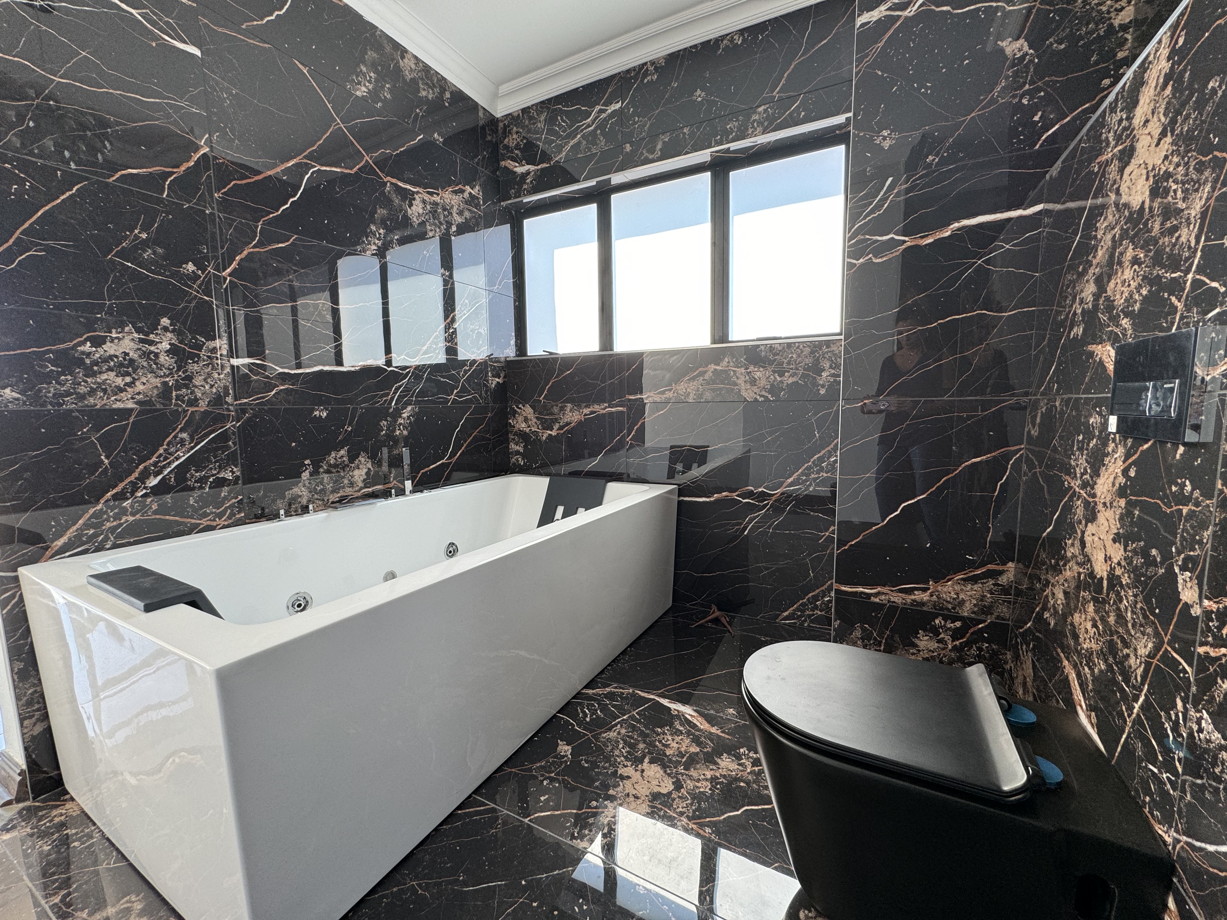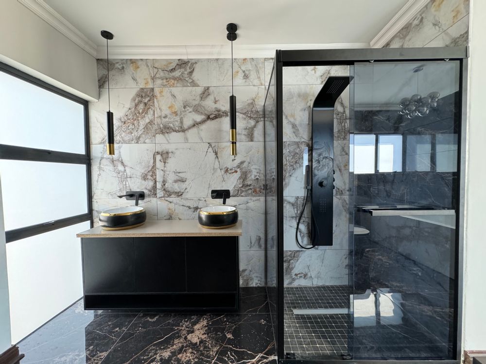 Ascend the elegant staircase, flanked by glass balustrades and modern steel finishes, to discover four beautifully appointed bedrooms—each with its own en-suite bathroom and private balcony. A large entertainment balcony above the garage offers additional space for elevated gatherings. The luxurious master suite is your private haven, complete with a walk-in closet, a spa-like bathroom featuring a jacuzzi tub, double basins, and a private balcony for sunset cocktails.