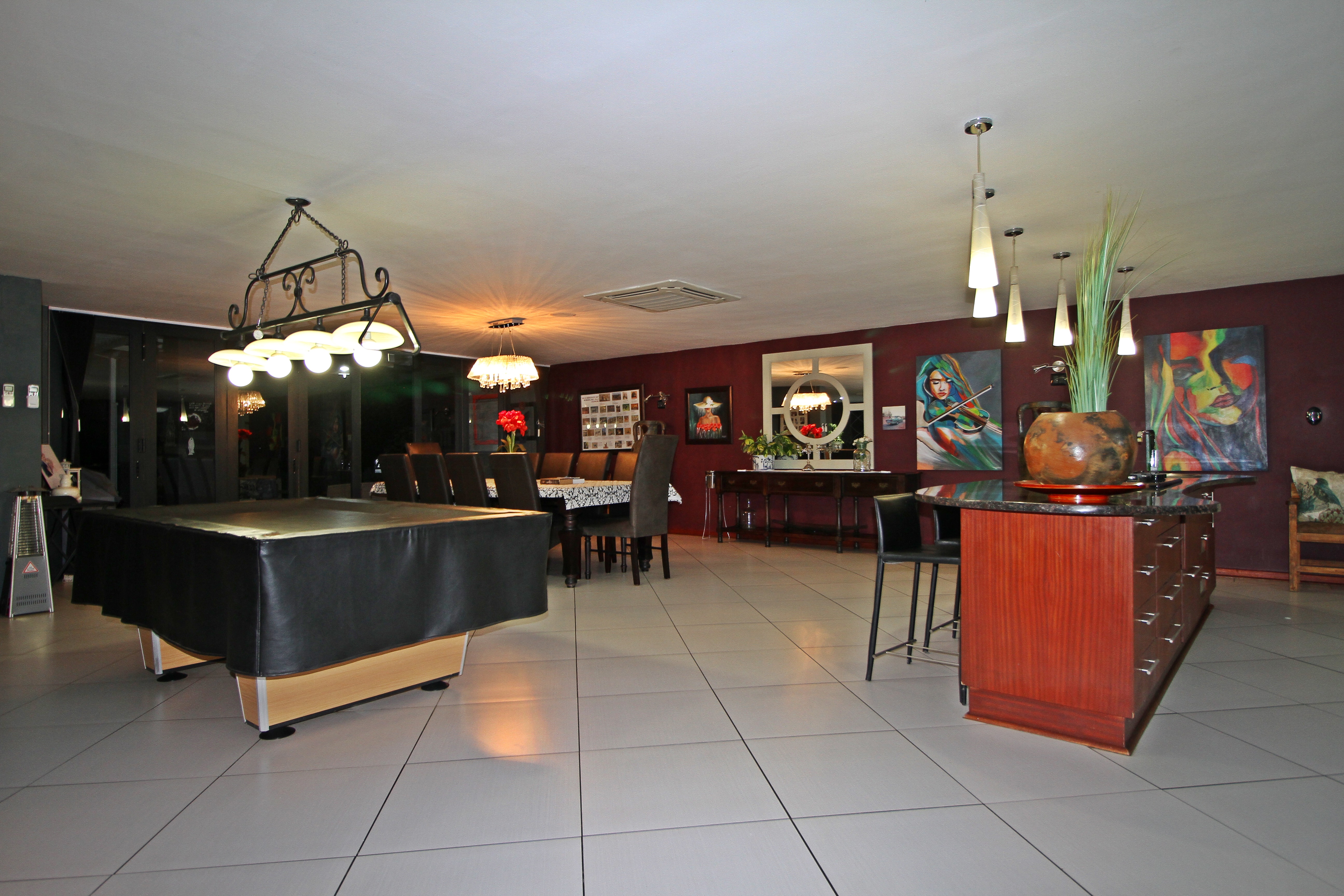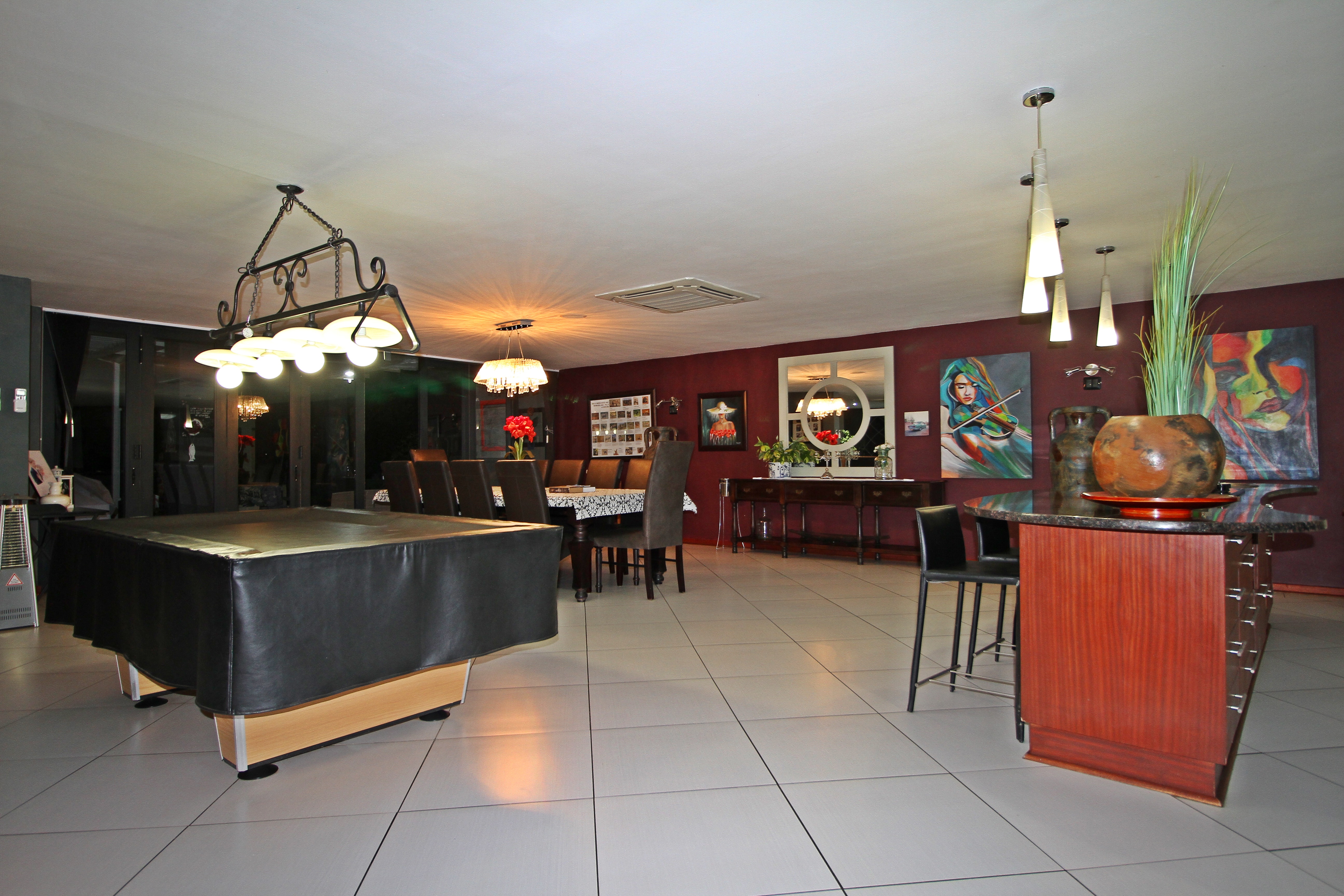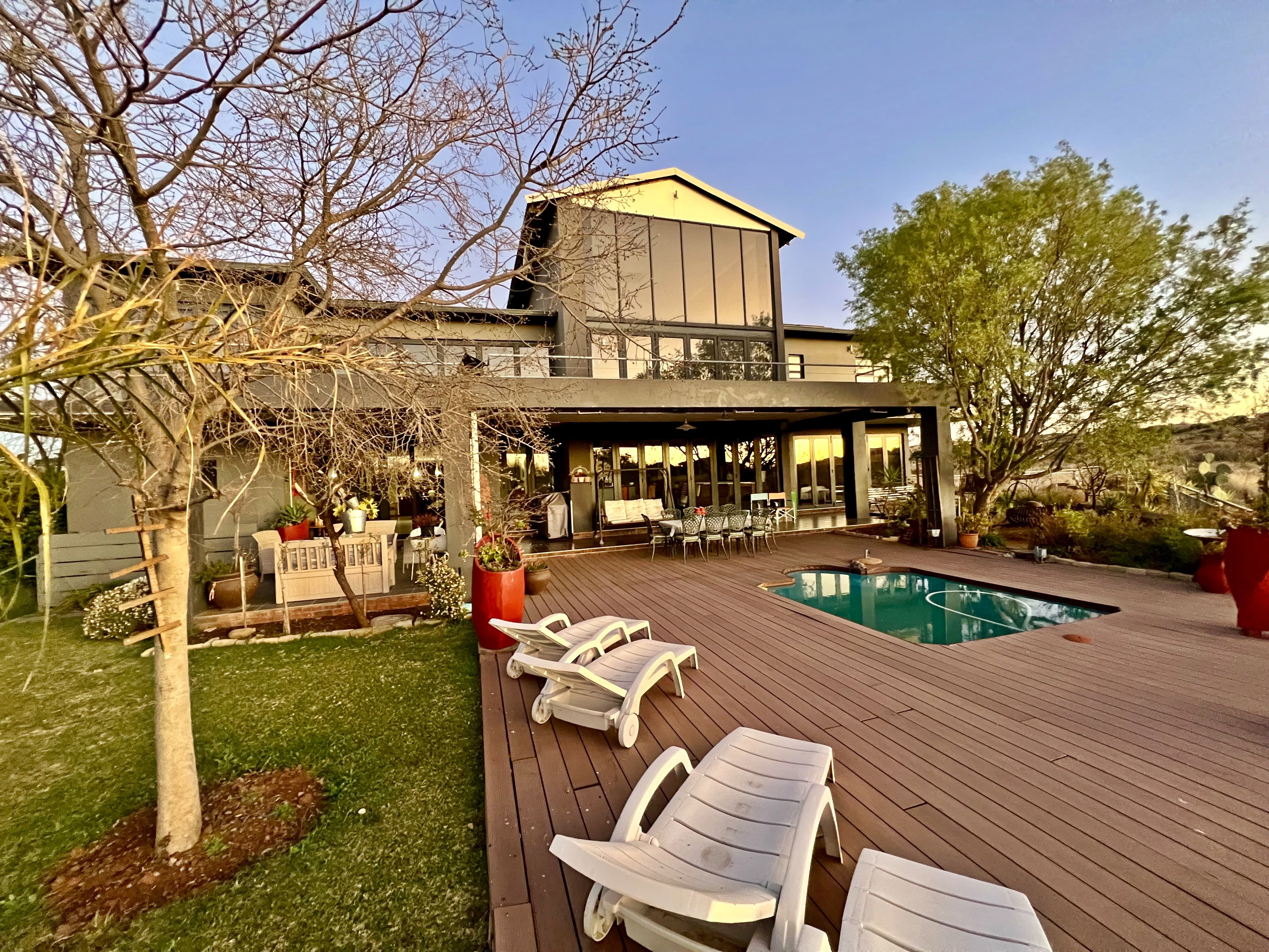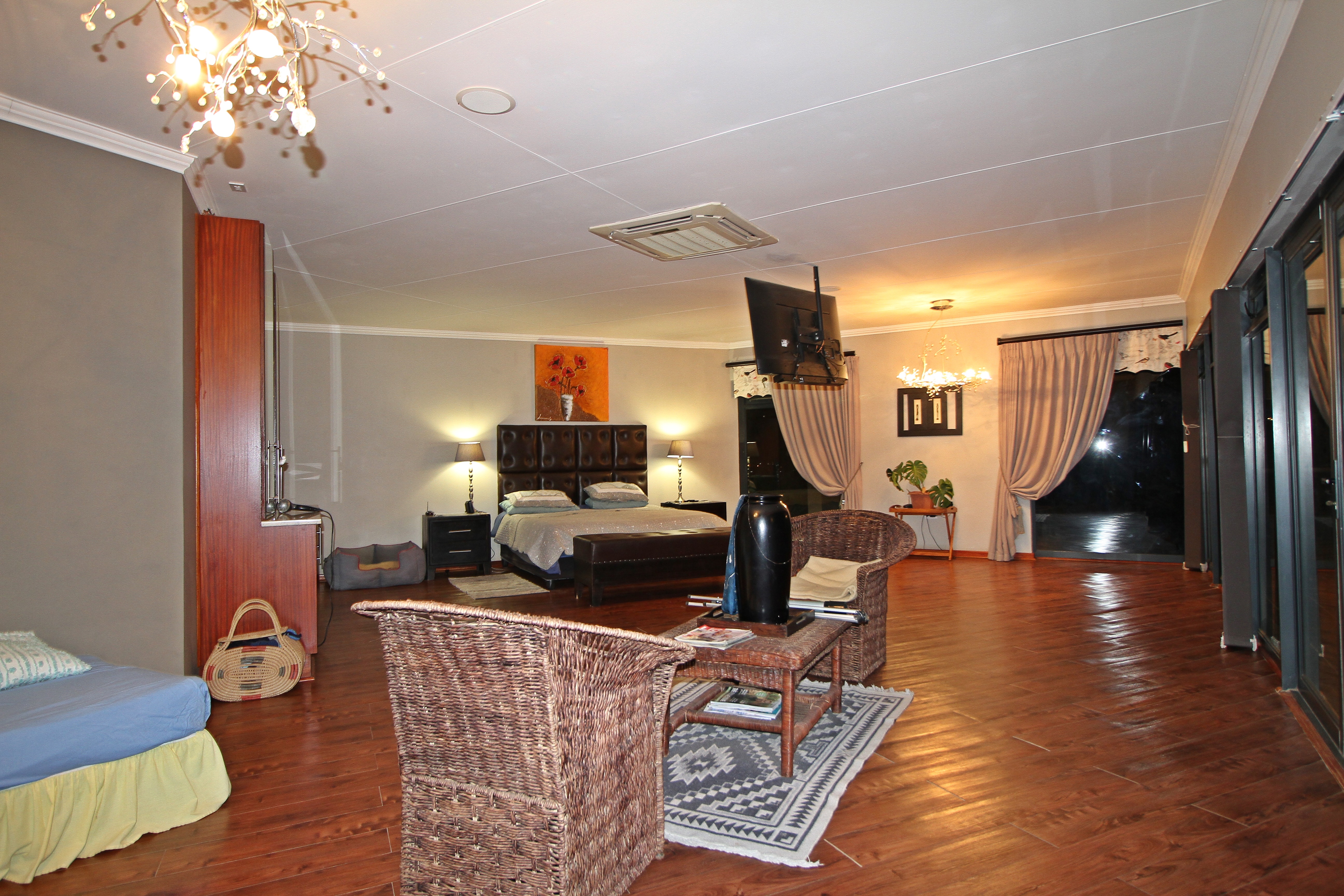 This desirable 5-bedroom family home for sale it fit for a queen, surpasses all expectations of proportion and innovations and is ideally situated, boasting stunning panoramic views of a lush green area within the prestigious Woodland Hills Wildlife Estate. Nestled at the end of a serene street featuring only 9 residences, tranquility and privacy is guaranteed. Upon entering the property, you'll be greeted by a grandiose staircase with the most beautiful chandeliers, that sets the tone for the elegant and spacious interior, complete with contemporary finishes throughout. The open-plan layout effortlessly connects the various living spaces, creating a welcoming ambiance that's perfect for both family gatherings and entertaining friends. The residence offers an array of entertainment options, including a bar and jacuzzi area overlooking a veranda equipped with a built-in braai section, swimming pool, and louvre roof. The natural beauty of the area is enhanced by the presence of nearby wildlife roaming on your doorstep. The open plan kitchen is a Master chef’s dream with its generous cupboard space, granite countertops, gas hob, and even a water connection for your refrigerator. The convenience continues with a spacious pantry and a well-appointed laundry room featuring an external door for easy access. An additional highlight an added extra, is the attached staff accommodation with an en-suite bathroom. The house encompasses a total of 5 super spacious bedrooms, each boasting a luxurious en-suite bathroom and walk-in closet. The master suite has a huge walk in closet and can seat its own lounge suite for your convenience. Glass doors in each bedroom allow abundant natural light to illuminate the space. With 3 bedrooms located upstairs and 2 downstairs, the layout offers flexibility and privacy, making it perfect for accommodating guests. All the upstairs spaces, including the gym area (complete with gym equipment) and an office space and pyjama lounge, provide access to the sprawling balcony. Upstairs also features another bar with a guest toilet, serving as a great spot for intimate gatherings. Modern amenities are prevalent throughout the home, including air conditioning and surround sound systems in every room. Five flat-screen TVs are thoughtfully placed throughout the house. The property is equipped with both a solar geyser and an UPS system that powers essential lights and appliances. With three 5000-liter water tanks and an irrigation system in place, the house is well-prepared to handle water needs. The home's functionality extends to its four spacious garages, which include an additional work area. The sought after estate also offers a range of amenities such as a tennis court, horse stables, walking, cycling and dog trails, putt-putt course, as well as jungle gyms for a comprehensive lifestyle experience. Don’t hesitate a moment longer. Phone Annette now to schedule your private viewing appointment.