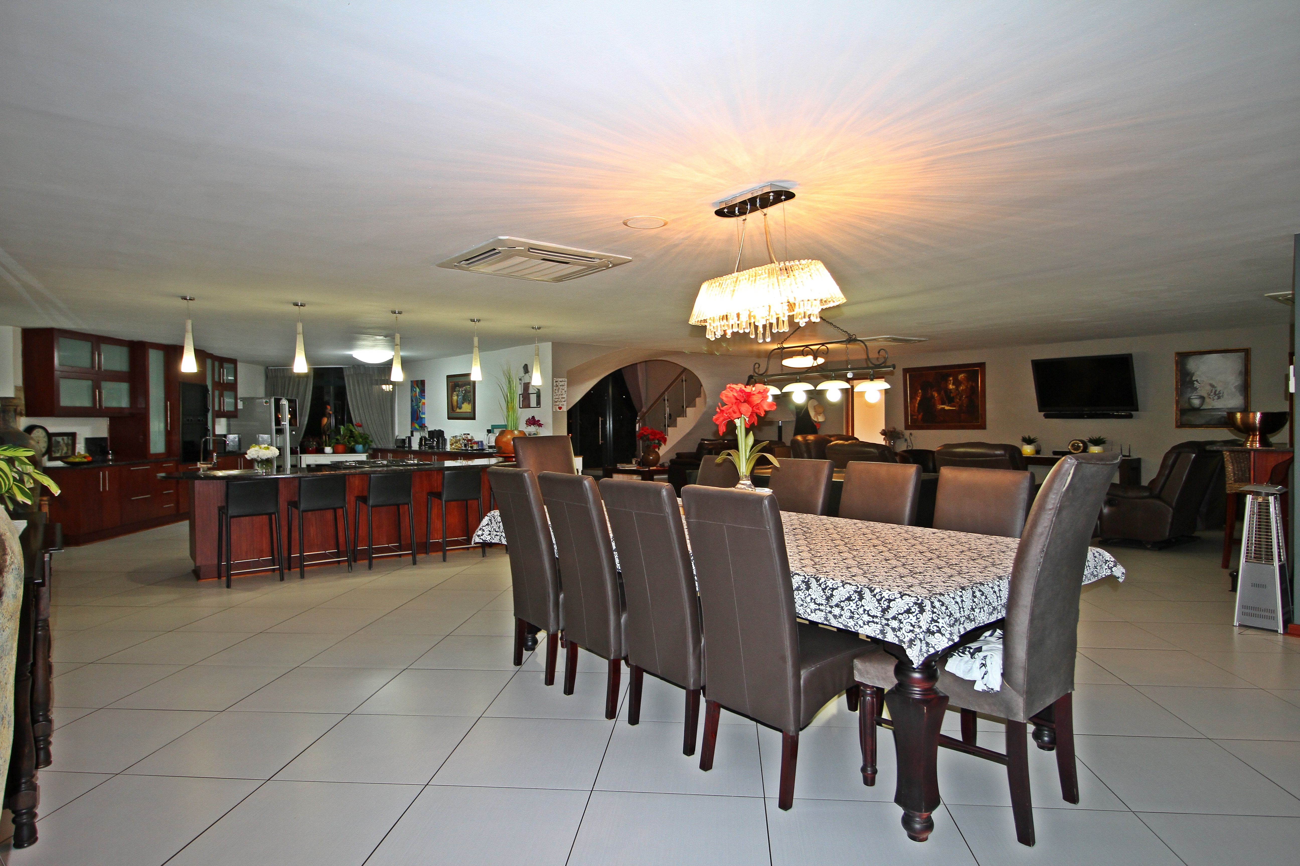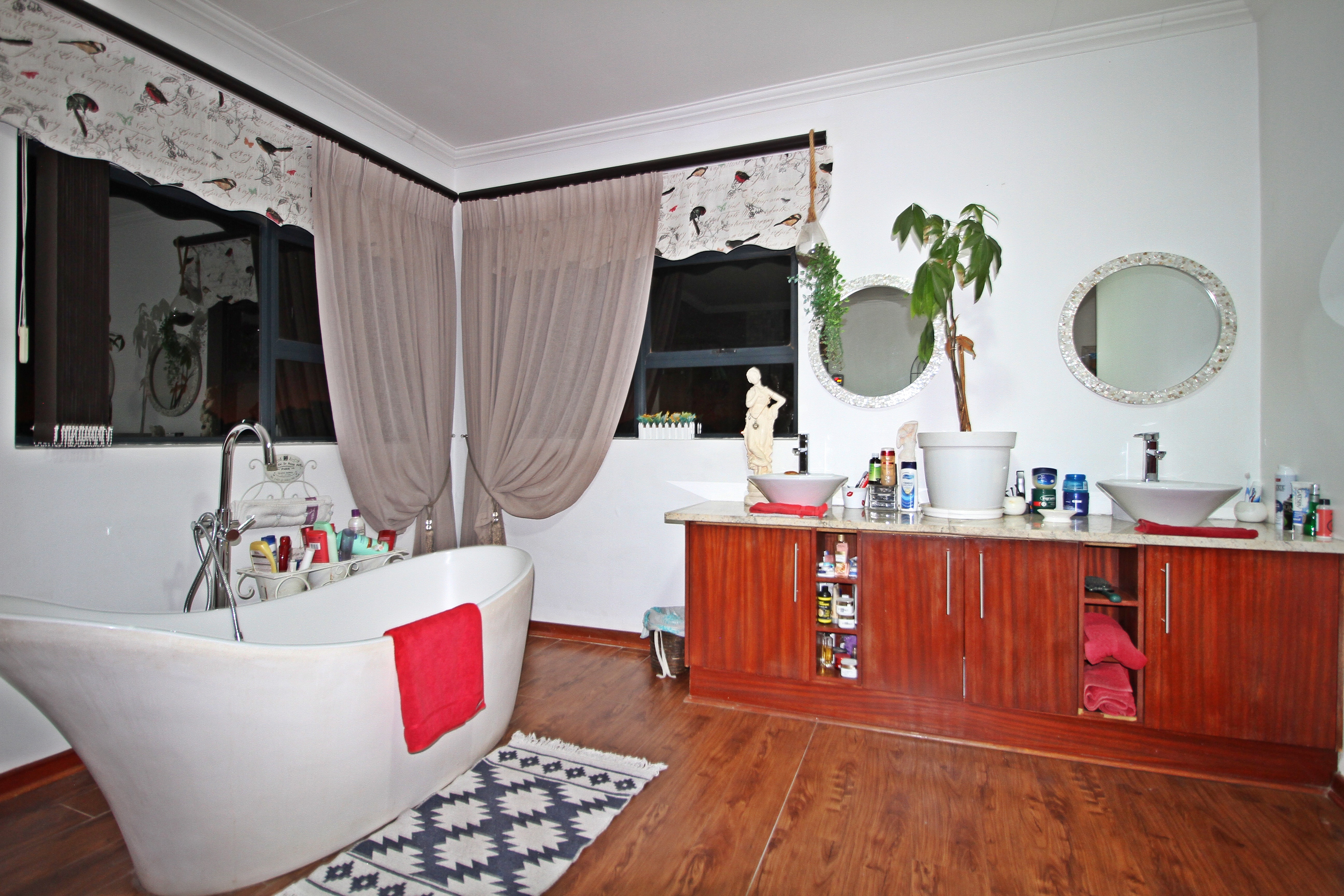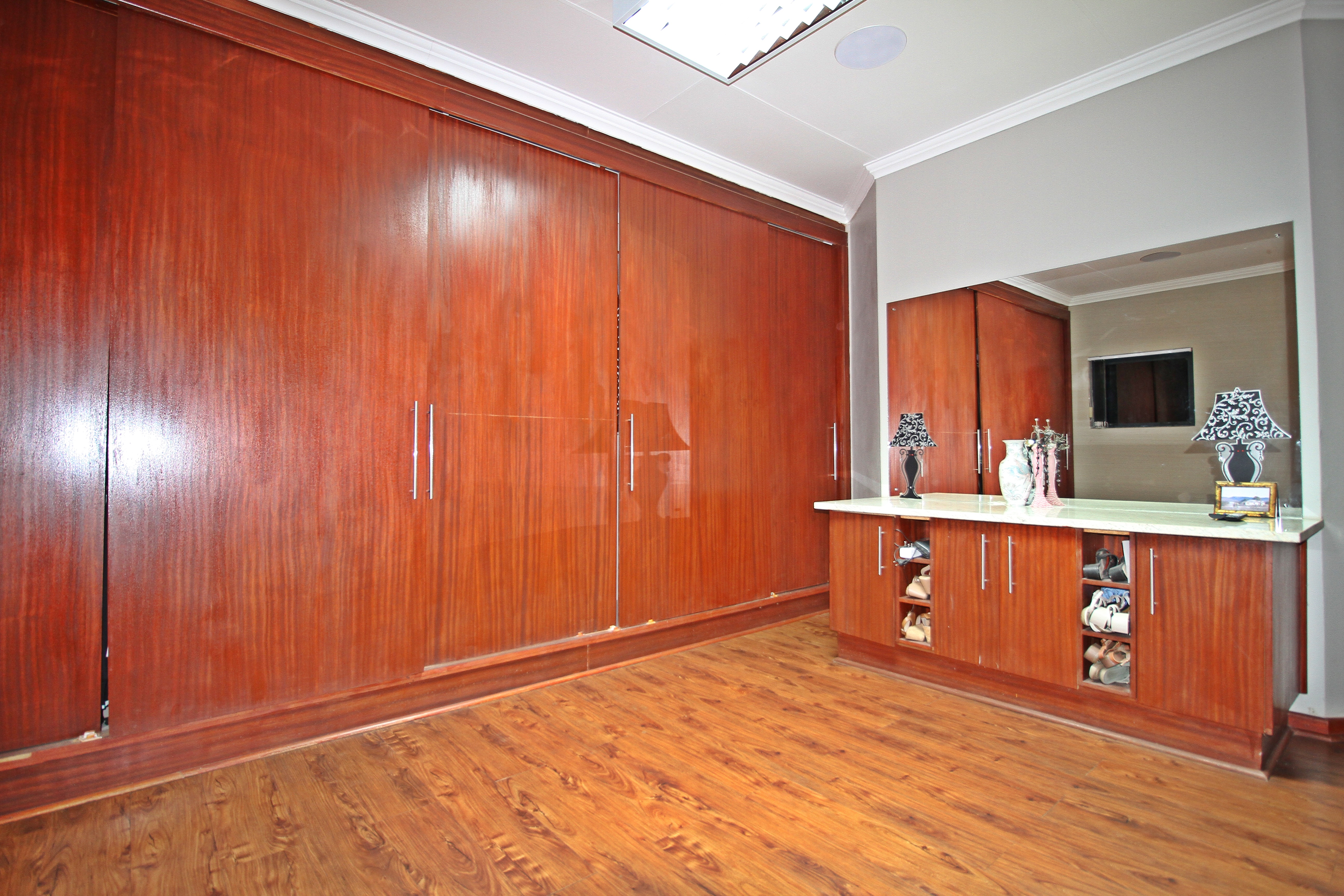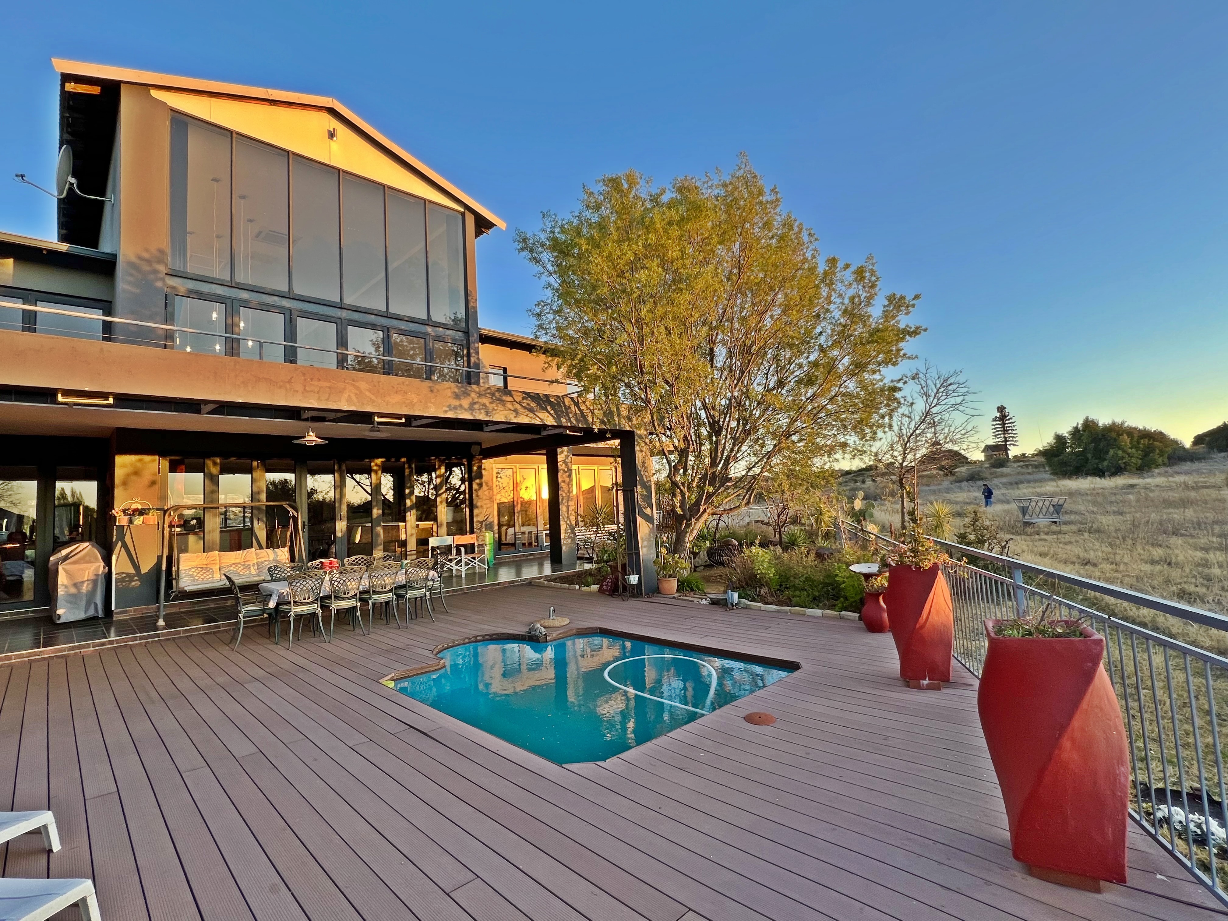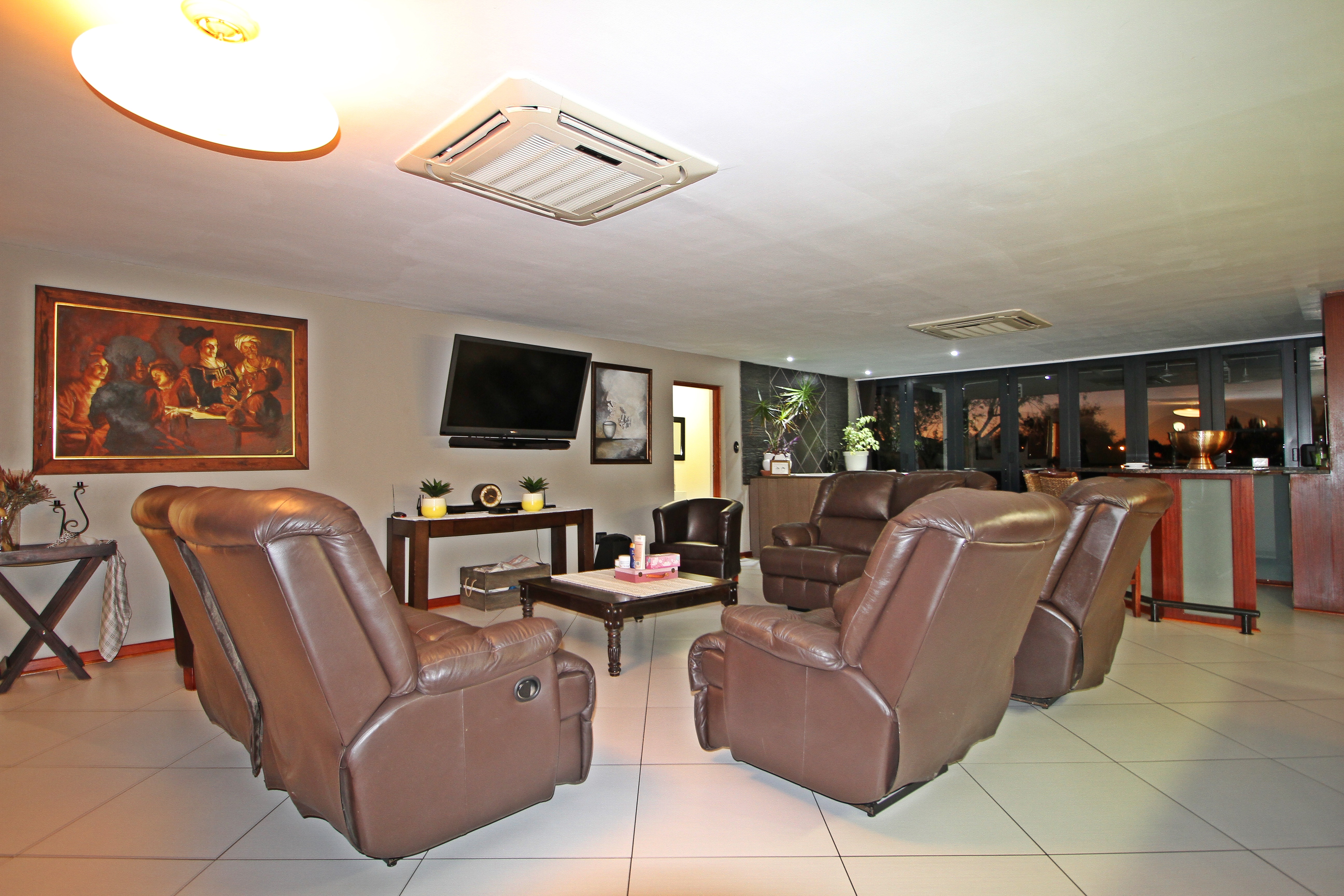 This desirable 5-bedroom family home for sale it fit for a queen, surpasses all expectations of proportion and innovations and is ideally situated, boasting stunning panoramic views of a lush green area within the prestigious Woodland Hills Wildlife Estate. Nestled at the end of a serene street featuring only 9 residences, tranquility and privacy is guaranteed. Upon entering the property, you'll be greeted by a grandiose staircase with the most beautiful chandeliers, that sets the tone for the elegant and spacious interior, complete with contemporary finishes throughout. The open-plan layout effortlessly connects the various living spaces, creating a welcoming ambiance that's perfect for both family gatherings and entertaining friends. The residence offers an array of entertainment options, including a bar and jacuzzi area overlooking a veranda equipped with a built-in braai section, swimming pool, and louvre roof. The natural beauty of the area is enhanced by the presence of nearby wildlife roaming on your doorstep. The open plan kitchen is a Master chef’s dream with its generous cupboard space, granite countertops, gas hob, and even a water connection for your refrigerator. The convenience continues with a spacious pantry and a well-appointed laundry room featuring an external door for easy access. An additional highlight an added extra, is the attached staff accommodation with an en-suite bathroom. The house encompasses a total of 5 super spacious bedrooms, each boasting a luxurious en-suite bathroom and walk-in closet. The master suite has a huge walk in closet and can seat its own lounge suite for your convenience. Glass doors in each bedroom allow abundant natural light to illuminate the space. With 3 bedrooms located upstairs and 2 downstairs, the layout offers flexibility and privacy, making it perfect for accommodating guests. All the upstairs spaces, including the gym area (complete with gym equipment) and an office space and pyjama lounge, provide access to the sprawling balcony. Upstairs also features another bar with a guest toilet, serving as a great spot for intimate gatherings. Modern amenities are prevalent throughout the home, including air conditioning and surround sound systems in every room. Five flat-screen TVs are thoughtfully placed throughout the house. The property is equipped with both a solar geyser and an UPS system that powers essential lights and appliances. With three 5000-liter water tanks and an irrigation system in place, the house is well-prepared to handle water needs. The home's functionality extends to its four spacious garages, which include an additional work area. The sought after estate also offers a range of amenities such as a tennis court, horse stables, walking, cycling and dog trails, putt-putt course, as well as jungle gyms for a comprehensive lifestyle experience. Don’t hesitate a moment longer. Phone Annette now to schedule your private viewing appointment.