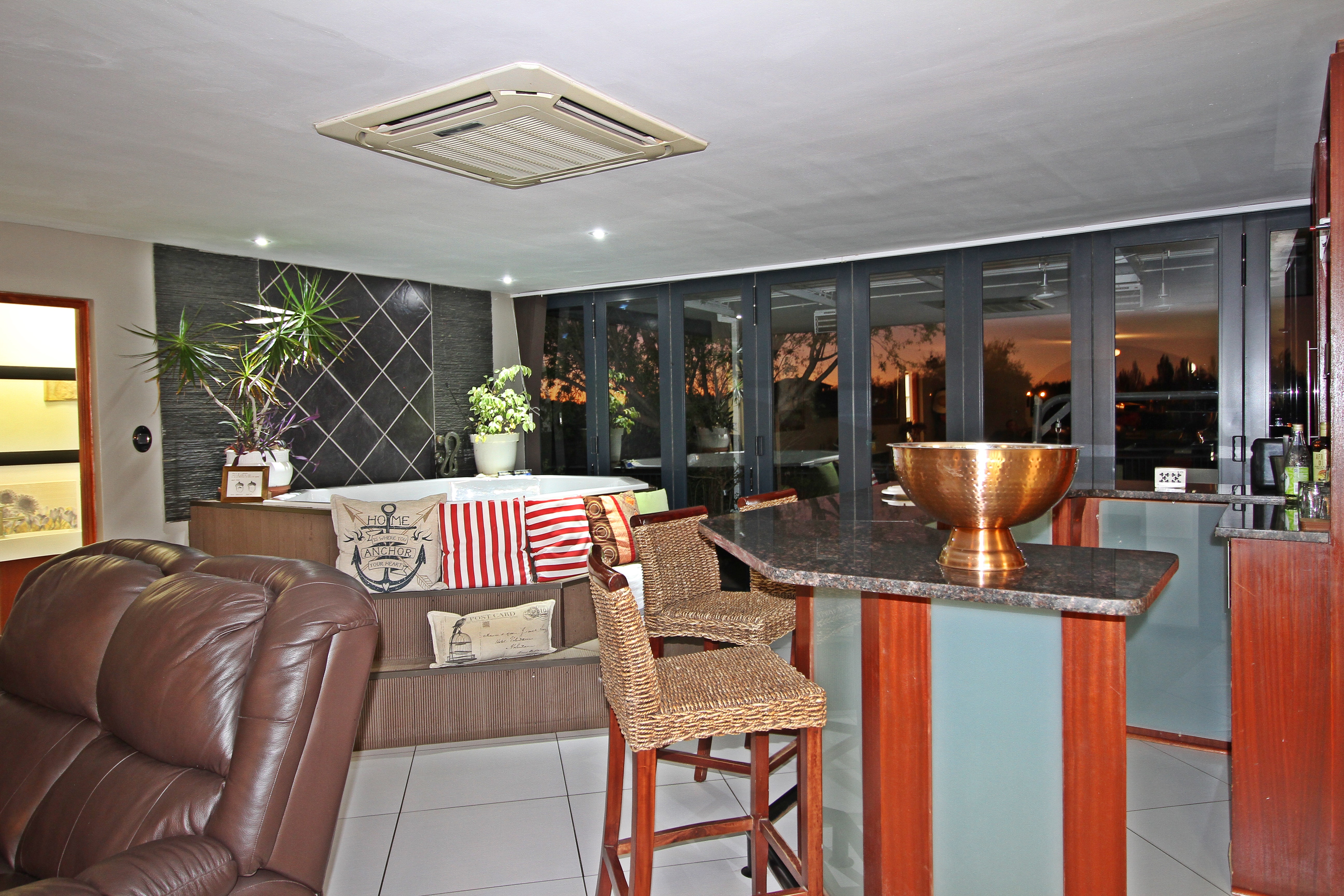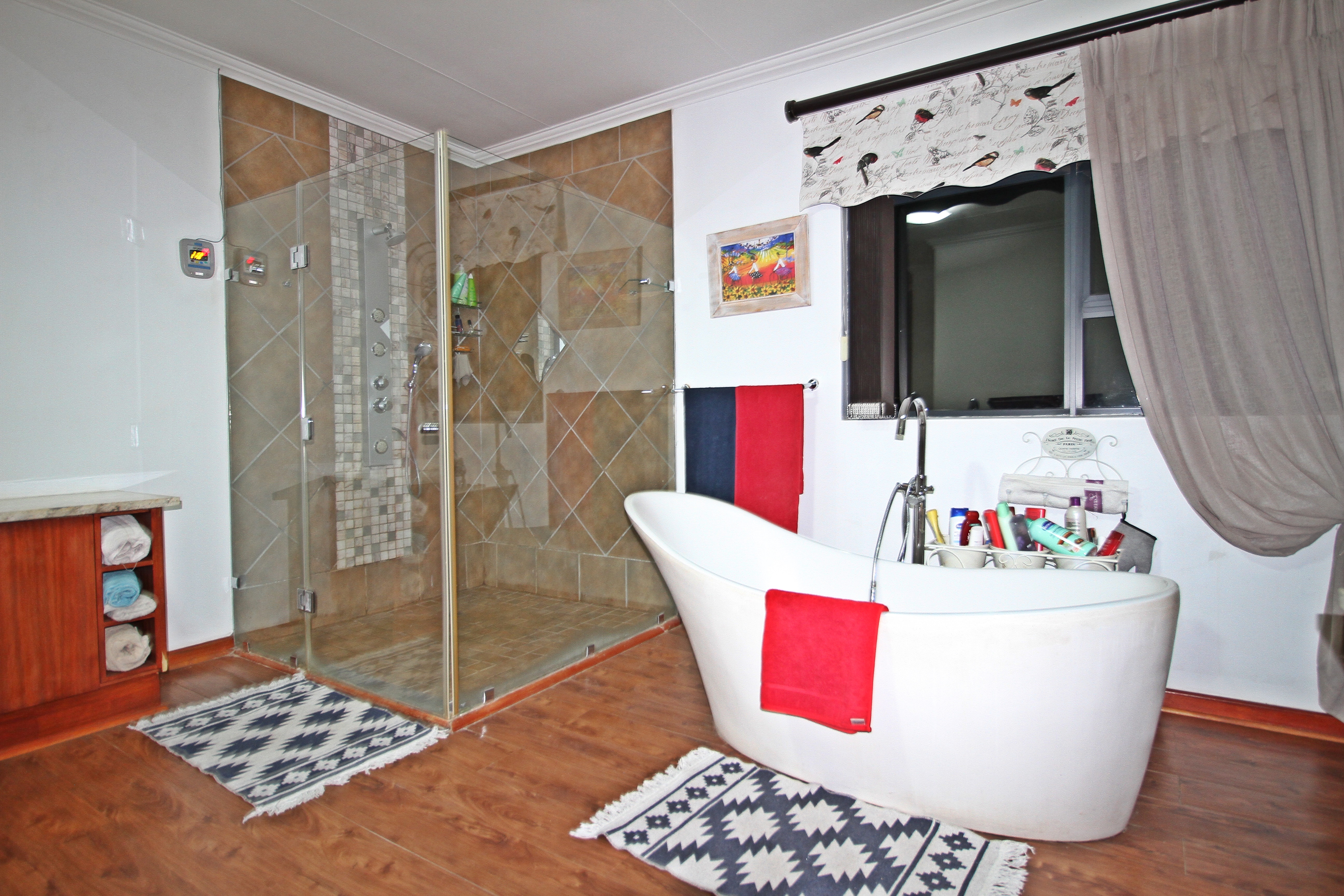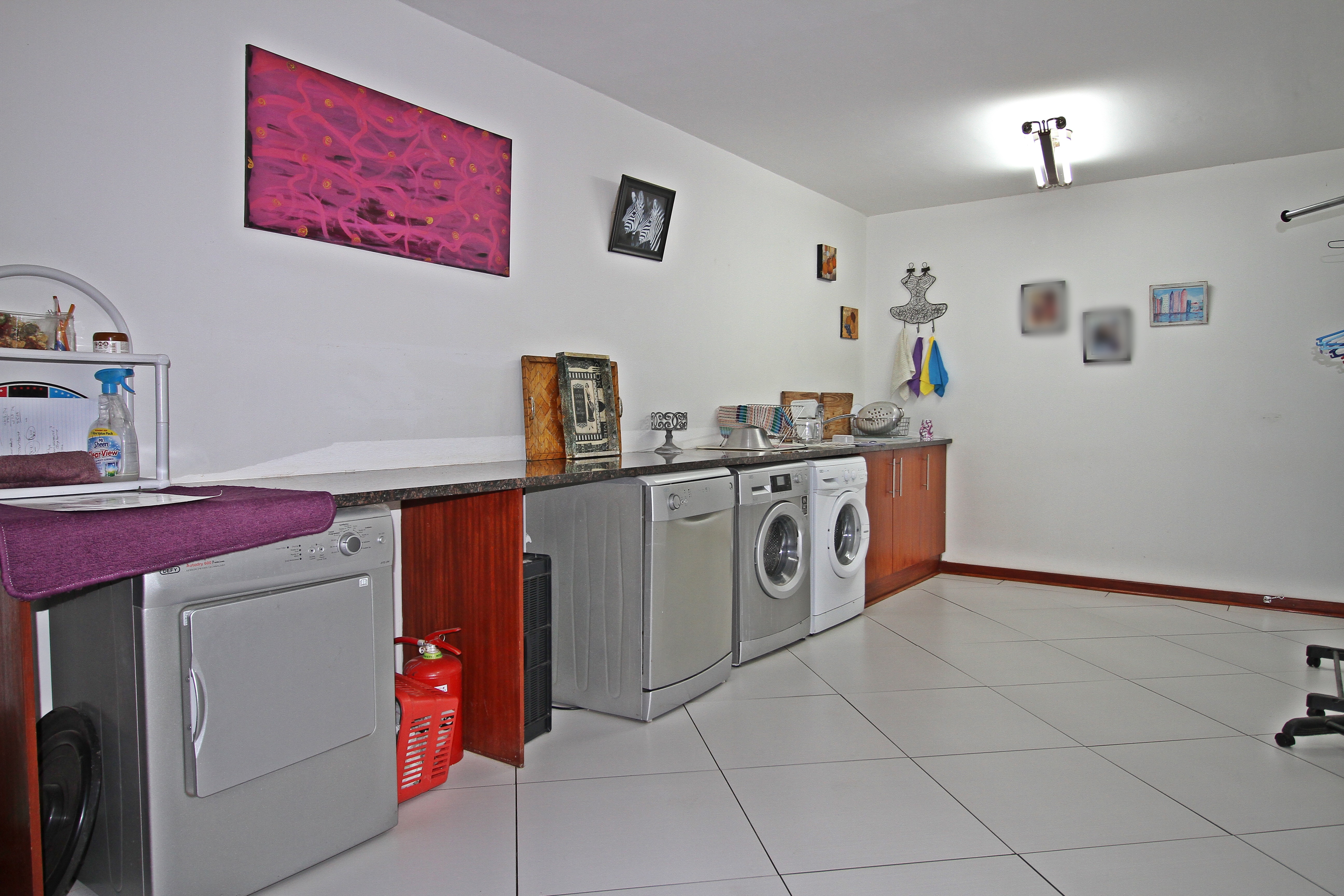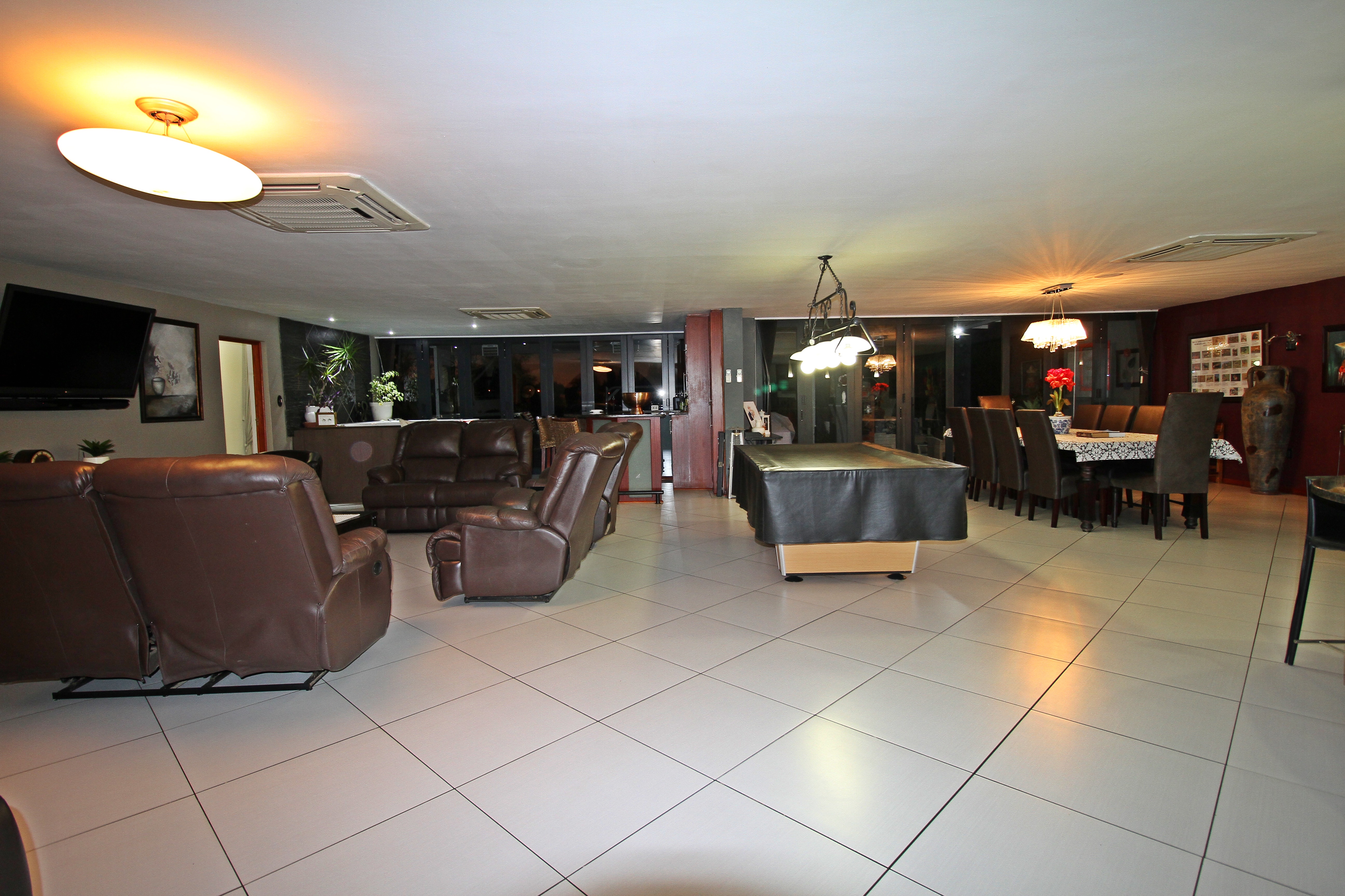 This desirable 5-bedroom family home for sale it fit for a queen, surpasses all expectations of proportion and innovations and is ideally situated, boasting stunning panoramic views of a lush green area within the prestigious Woodland Hills Wildlife Estate. Nestled at the end of a serene street featuring only 9 residences, tranquility and privacy is guaranteed. Upon entering the property, you'll be greeted by a grandiose staircase with the most beautiful chandeliers, that sets the tone for the elegant and spacious interior, complete with contemporary finishes throughout. The open-plan layout effortlessly connects the various living spaces, creating a welcoming ambiance that's perfect for both family gatherings and entertaining friends. The residence offers an array of entertainment options, including a bar and jacuzzi area overlooking a veranda equipped with a built-in braai section, swimming pool, and louvre roof. The natural beauty of the area is enhanced by the presence of nearby wildlife roaming on your doorstep. The open plan kitchen is a Master chef’s dream with its generous cupboard space, granite countertops, gas hob, and even a water connection for your refrigerator. The convenience continues with a spacious pantry and a well-appointed laundry room featuring an external door for easy access. An additional highlight an added extra, is the attached staff accommodation with an en-suite bathroom. The house encompasses a total of 5 super spacious bedrooms, each boasting a luxurious en-suite bathroom and walk-in closet. The master suite has a huge walk in closet and can seat its own lounge suite for your convenience. Glass doors in each bedroom allow abundant natural light to illuminate the space. With 3 bedrooms located upstairs and 2 downstairs, the layout offers flexibility and privacy, making it perfect for accommodating guests. All the upstairs spaces, including the gym area (complete with gym equipment) and an office space and pyjama lounge, provide access to the sprawling balcony. Upstairs also features another bar with a guest toilet, serving as a great spot for intimate gatherings. Modern amenities are prevalent throughout the home, including air conditioning and surround sound systems in every room. Five flat-screen TVs are thoughtfully placed throughout the house. The property is equipped with both a solar geyser and an UPS system that powers essential lights and appliances. With three 5000-liter water tanks and an irrigation system in place, the house is well-prepared to handle water needs. The home's functionality extends to its four spacious garages, which include an additional work area. The sought after estate also offers a range of amenities such as a tennis court, horse stables, walking, cycling and dog trails, putt-putt course, as well as jungle gyms for a comprehensive lifestyle experience. Don’t hesitate a moment longer. Phone Annette now to schedule your private viewing appointment.