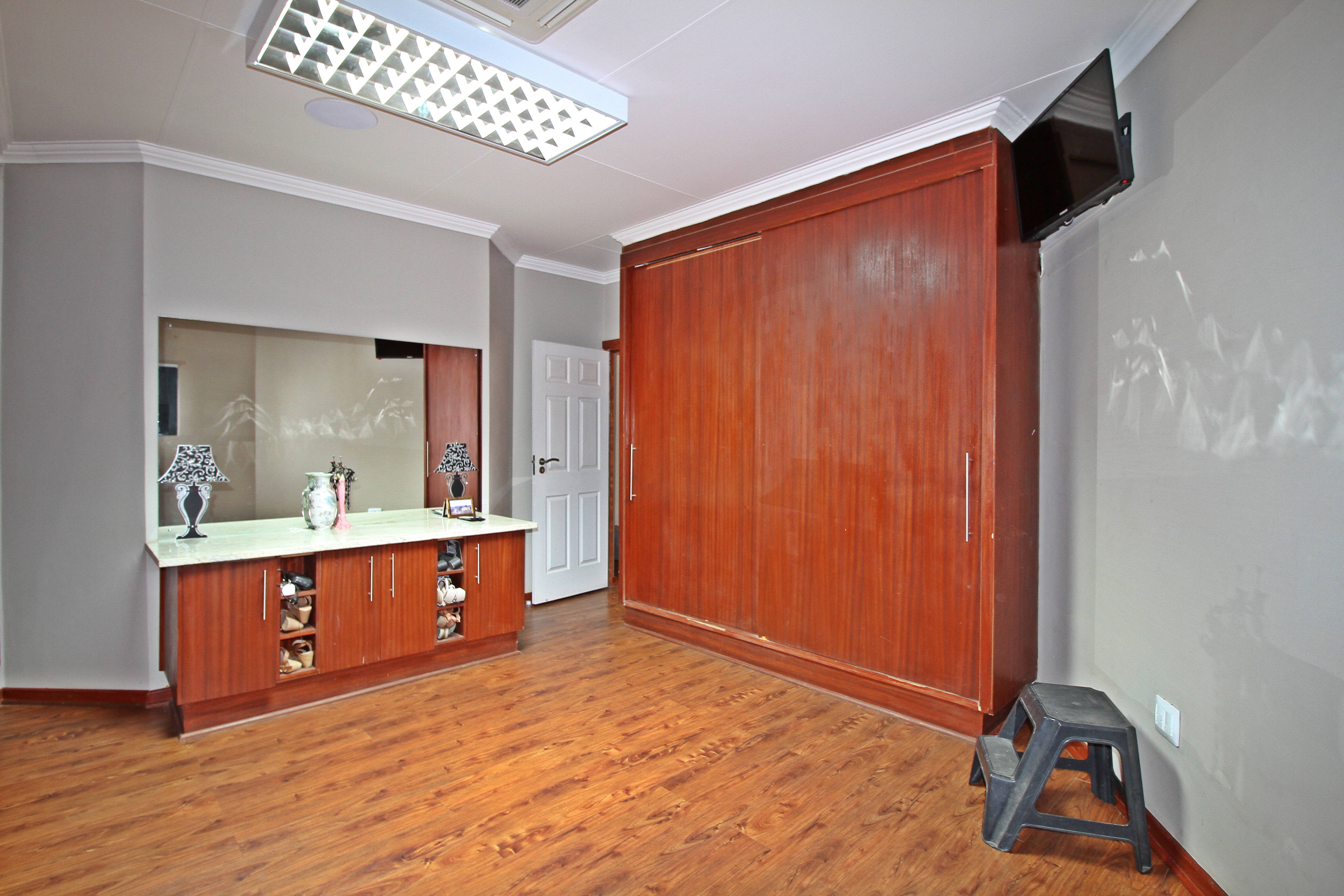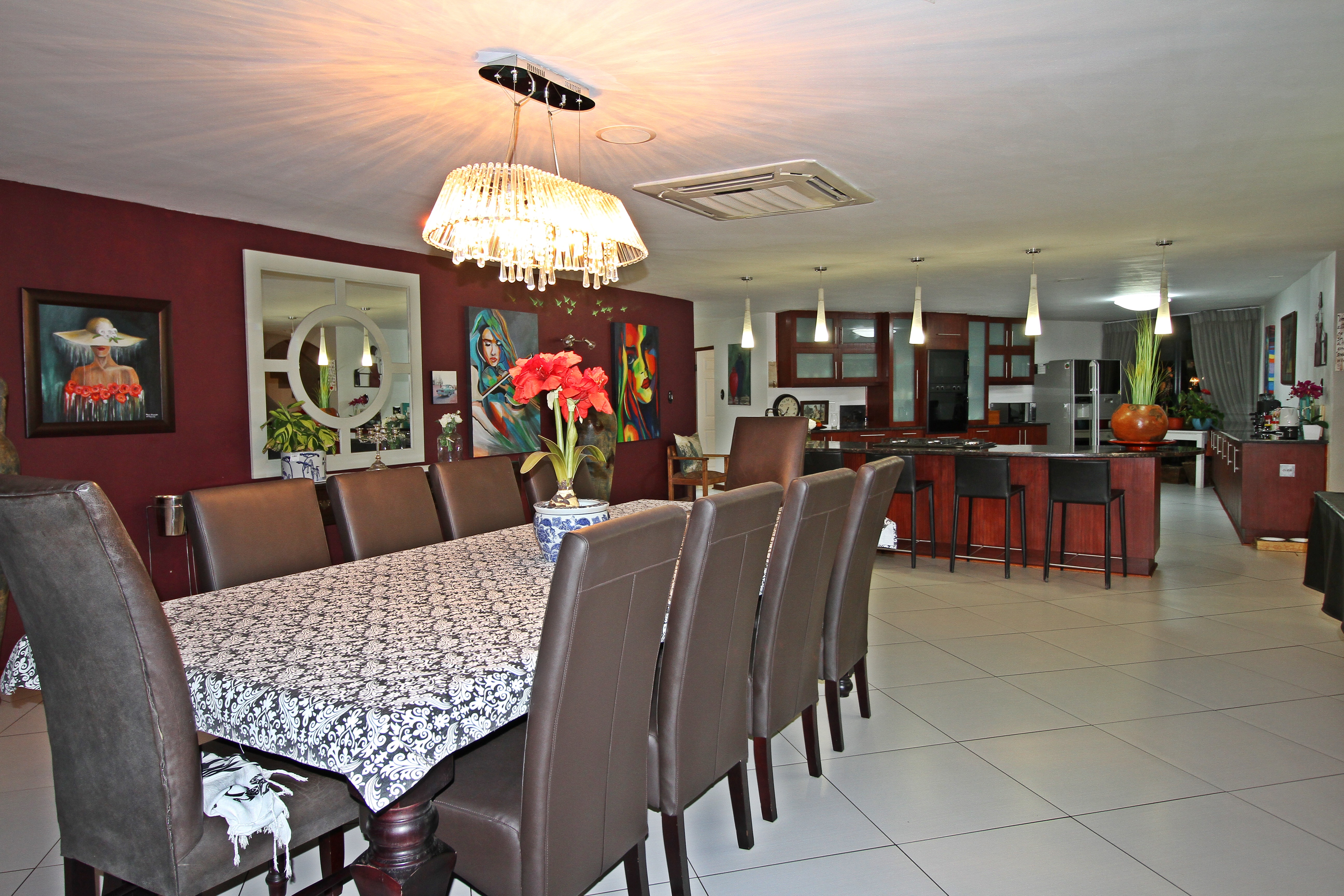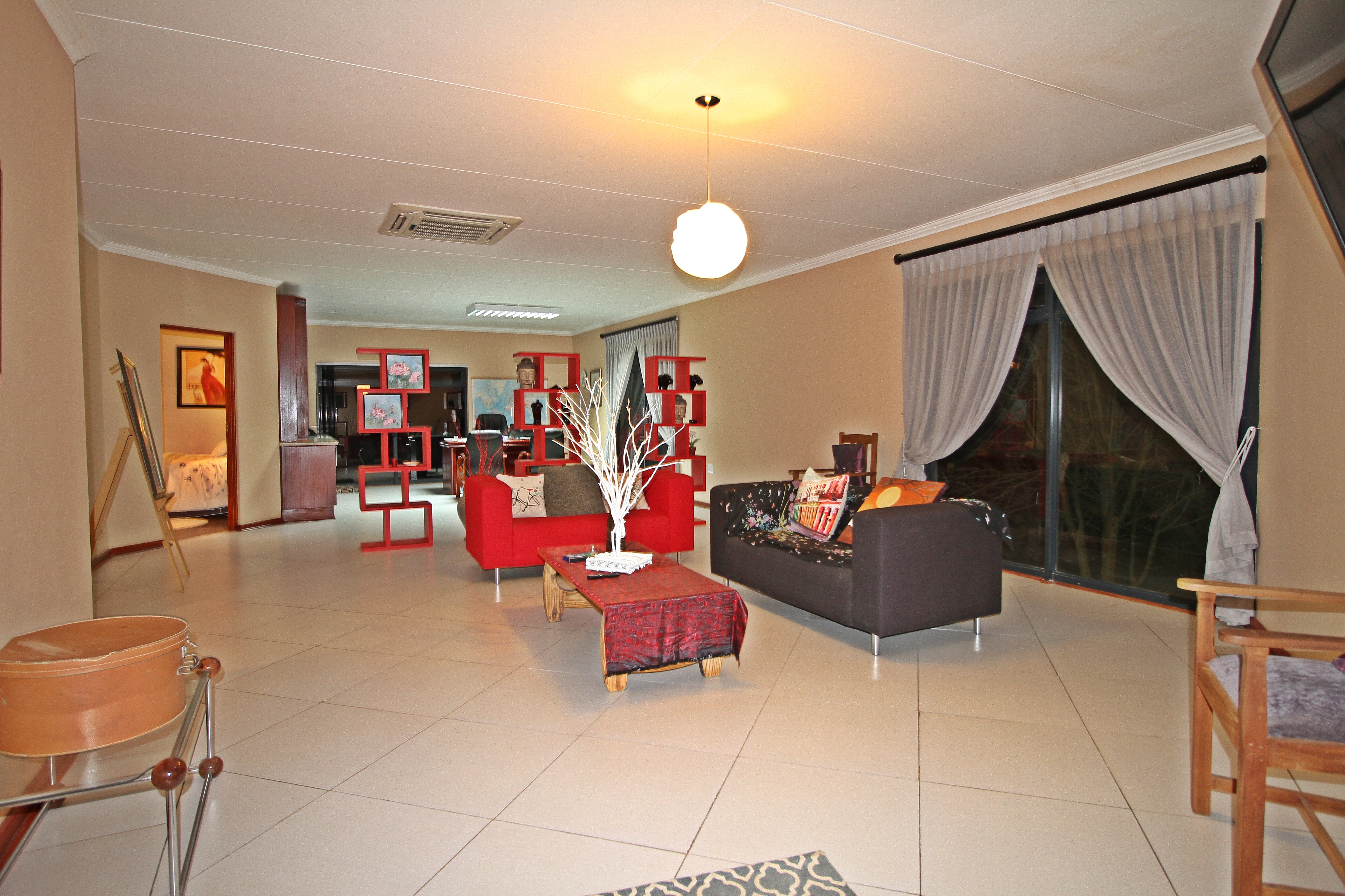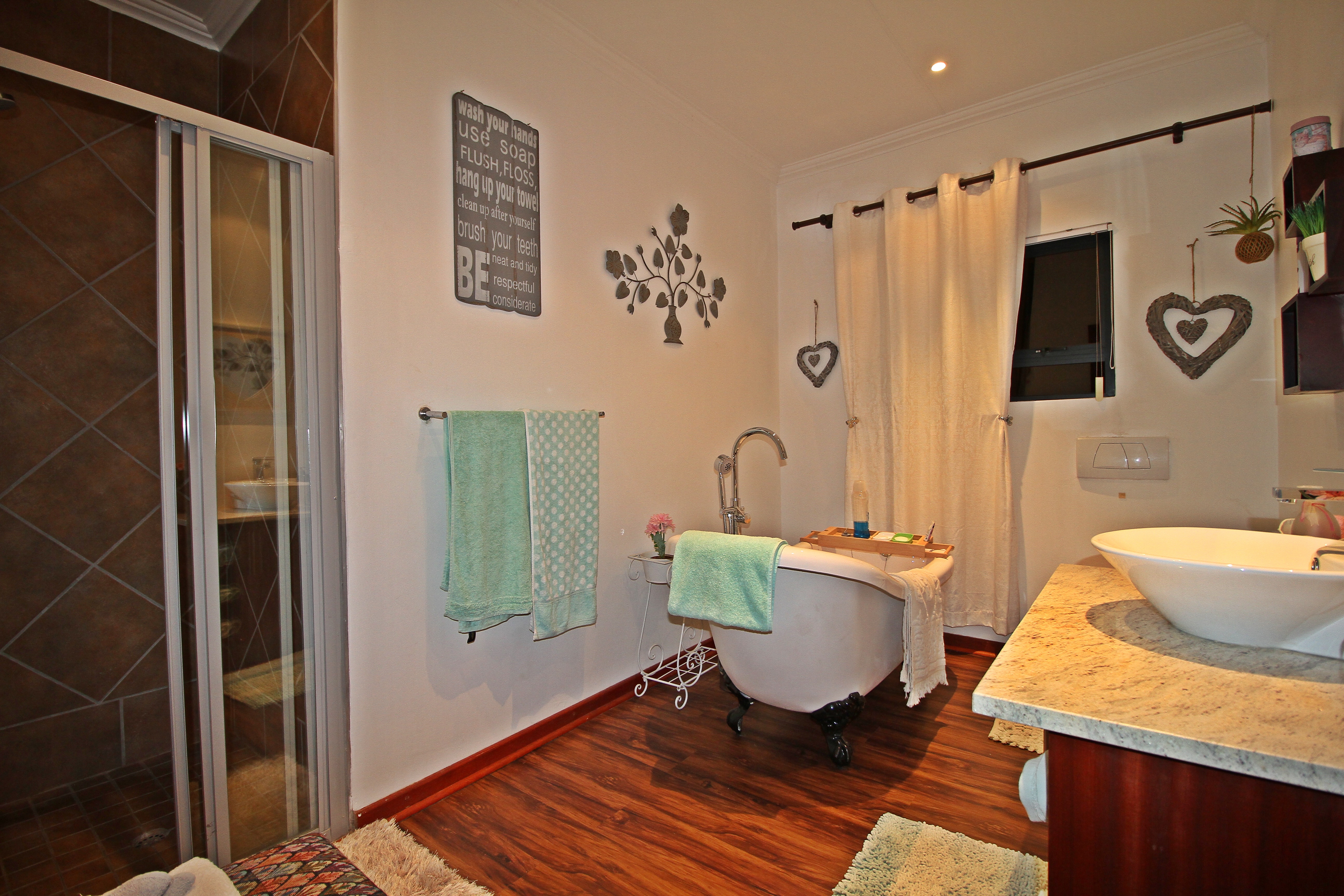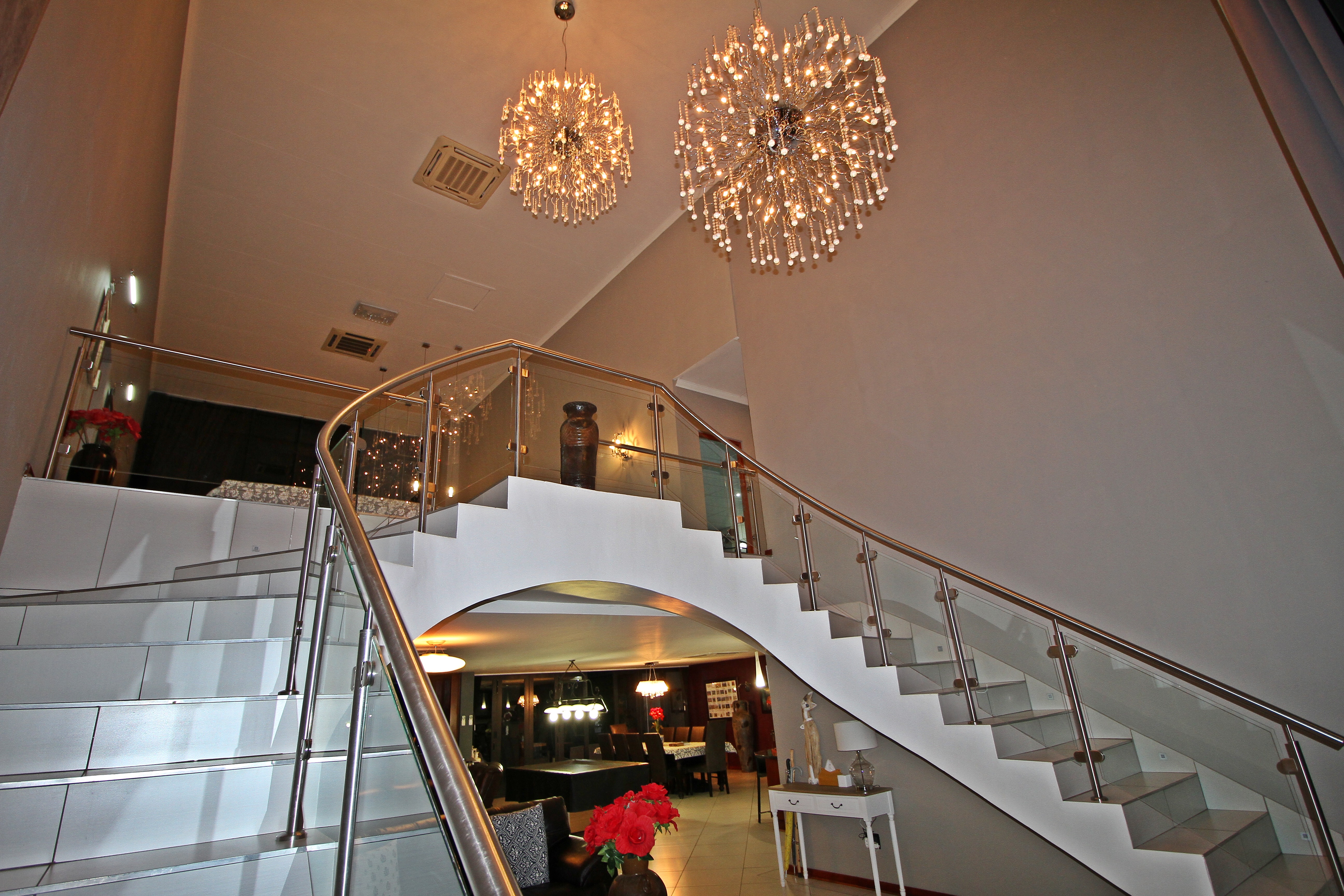This desirable 5-bedroom family home for sale it fit for a queen, surpasses all expectations of proportion and innovations and is ideally situated, boasting stunning panoramic views of a lush green area within the prestigious Woodland Hills Wildlife Estate. Nestled at the end of a serene street featuring only 9 residences, tranquility and privacy is guaranteed. Upon entering the property, you'll be greeted by a grandiose staircase with the most beautiful chandeliers, that sets the tone for the elegant and spacious interior, complete with contemporary finishes throughout. The open-plan layout effortlessly connects the various living spaces, creating a welcoming ambiance that's perfect for both family gatherings and entertaining friends. The residence offers an array of entertainment options, including a bar and jacuzzi area overlooking a veranda equipped with a built-in braai section, swimming pool, and louvre roof. The natural beauty of the area is enhanced by the presence of nearby wildlife roaming on your doorstep. The open plan kitchen is a Master chef’s dream with its generous cupboard space, granite countertops, gas hob, and even a water connection for your refrigerator. The convenience continues with a spacious pantry and a well-appointed laundry room featuring an external door for easy access. An additional highlight an added extra, is the attached staff accommodation with an en-suite bathroom. The house encompasses a total of 5 super spacious bedrooms, each boasting a luxurious en-suite bathroom and walk-in closet. The master suite has a huge walk in closet and can seat its own lounge suite for your convenience. Glass doors in each bedroom allow abundant natural light to illuminate the space. With 3 bedrooms located upstairs and 2 downstairs, the layout offers flexibility and privacy, making it perfect for accommodating guests. All the upstairs spaces, including the gym area (complete with gym equipment) and an office space and pyjama lounge, provide access to the sprawling balcony. Upstairs also features another bar with a guest toilet, serving as a great spot for intimate gatherings. Modern amenities are prevalent throughout the home, including air conditioning and surround sound systems in every room. Five flat-screen TVs are thoughtfully placed throughout the house. The property is equipped with both a solar geyser and an UPS system that powers essential lights and appliances. With three 5000-liter water tanks and an irrigation system in place, the house is well-prepared to handle water needs. The home's functionality extends to its four spacious garages, which include an additional work area. The sought after estate also offers a range of amenities such as a tennis court, horse stables, walking, cycling and dog trails, putt-putt course, as well as jungle gyms for a comprehensive lifestyle experience. Don’t hesitate a moment longer. Phone Annette now to schedule your private viewing appointment.