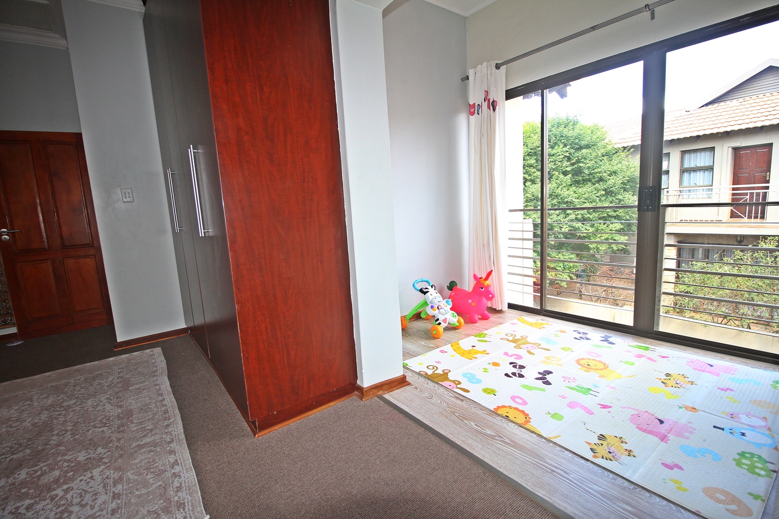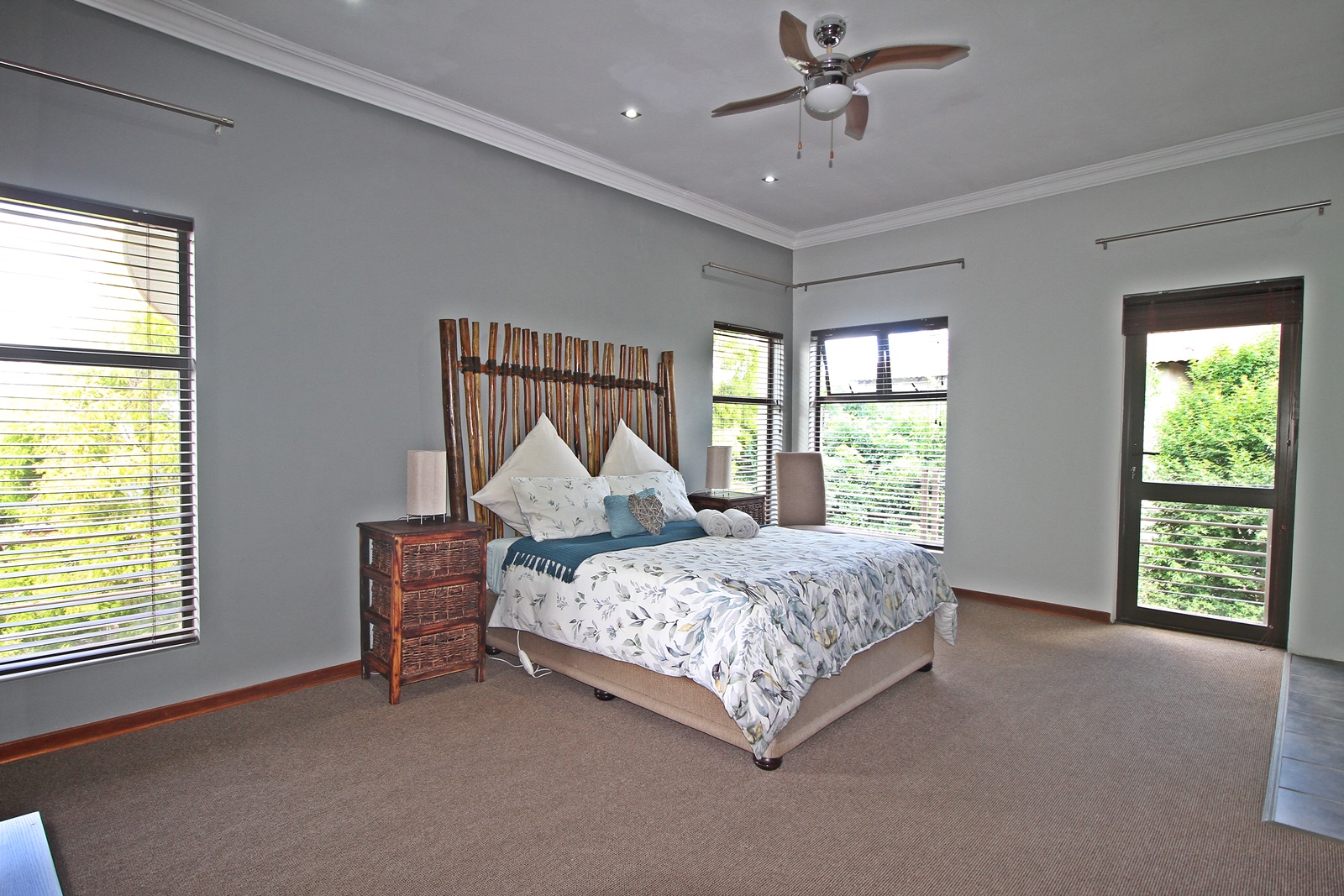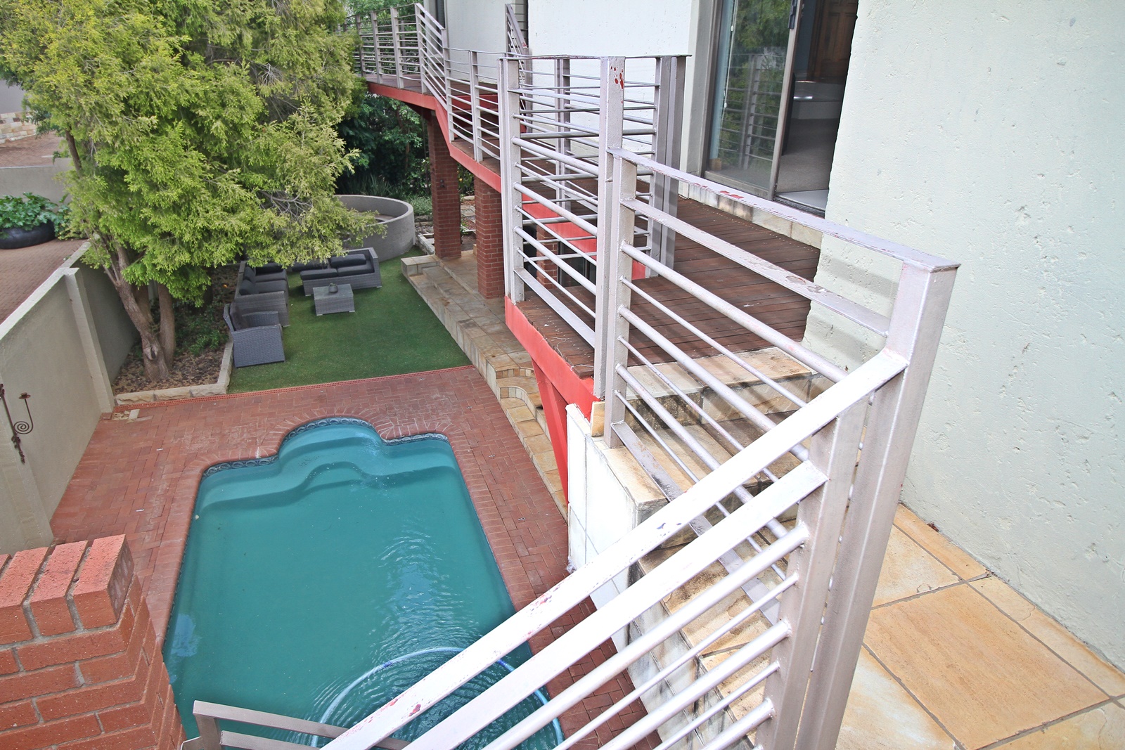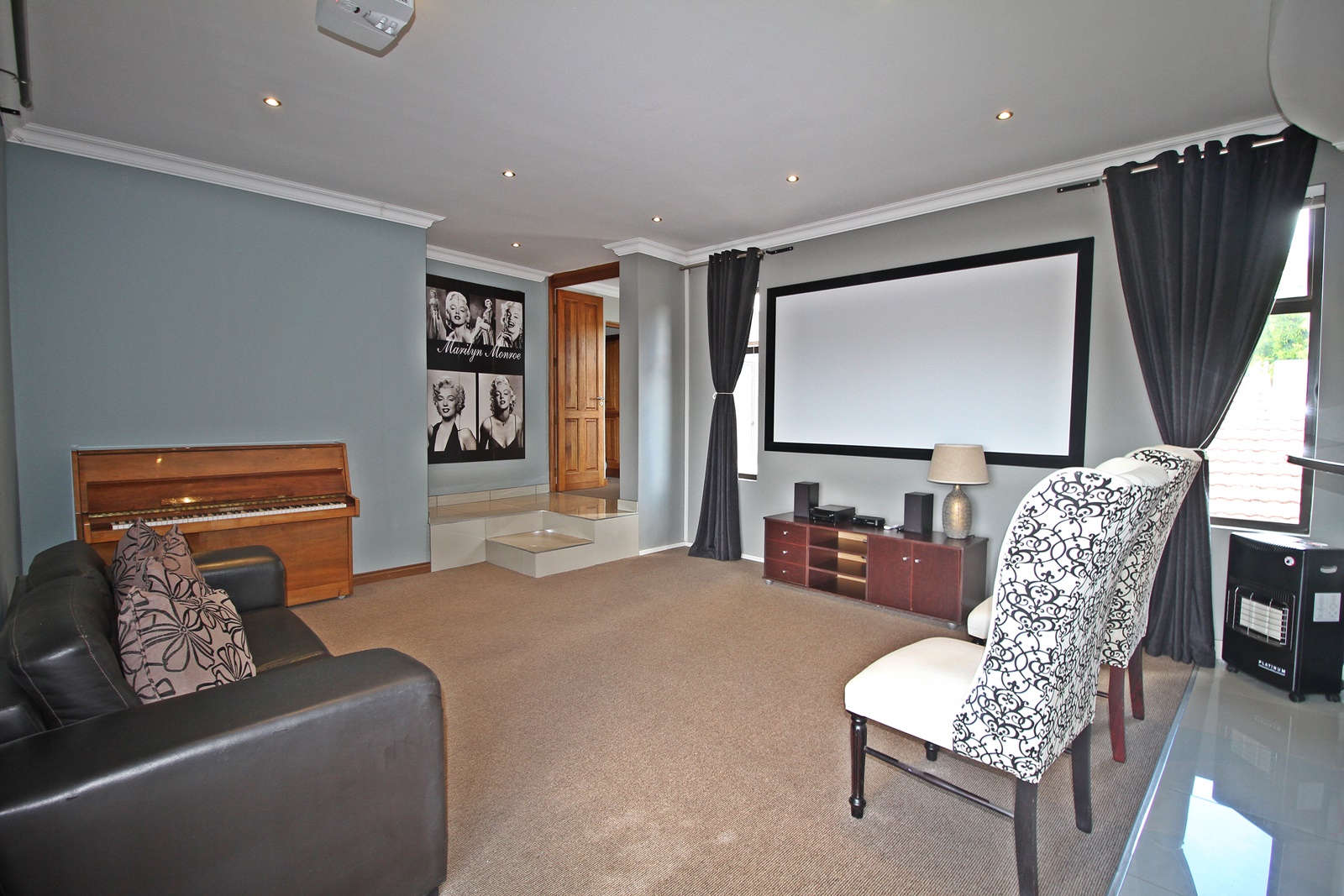 This stunning north-facing double-storey home offers an exceptional lifestyle in the sought-after Woodland Hills Wildlife Estate. With its thoughtful design, generous proportions, and seamless indoor-outdoor flow, this 4-bedroom property provides the ideal setting for modern family living. From the moment you step inside, you're greeted with a sense of privacy and space. The entrance hall leads into a beautifully planned open-plan living area featuring an air-conditioned lounge, dining room, and a gourmet kitchen complete with a scullery — perfect for the aspiring home chef. The living areas radiate a calm and inviting atmosphere, ideal for both relaxed evenings and entertaining. Also on the ground floor is a guest suite with an open-plan en-suite bathroom, plus a separate guest toilet for added convenience. The indoor braai room, fitted with its own basin and TV port, flows out to a sparkling pool and boma area — the perfect backdrop for summer gatherings and storytelling under the stars. Upstairs, the main bedroom is a true sanctuary. Enjoy breathtaking views from your private balcony, and unwind in the spacious walk-in closet and luxurious full en-suite bathroom. Adjacent to the main suite is a fully equipped cinema room with a snack bar and basin — perfect for movie nights at home. The third bedroom offers a walk-in closet, open-plan bathroom, and private balcony, while the fourth bedroom includes a dedicated study area and a bathroom with a double shower. A cozy pajama lounge provides additional space for kids to play or relax with friends. Additional features include: Three neat garages with electric doors Full staff accommodation and an outdoor bathroom Lush, irrigated, and fully walled garden for easy maintenance Prime location opposite the communal tennis court and outdoor gym Walking distance to a nearby shopping center This immaculate property truly combines luxury, practicality, and location — making it an outstanding choice for any family. Contact Annette today to schedule your private viewing. Don’t miss out on this exceptional opportunity!
