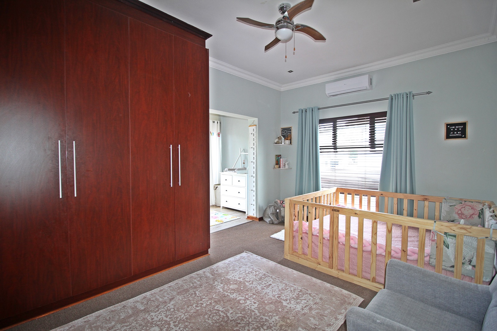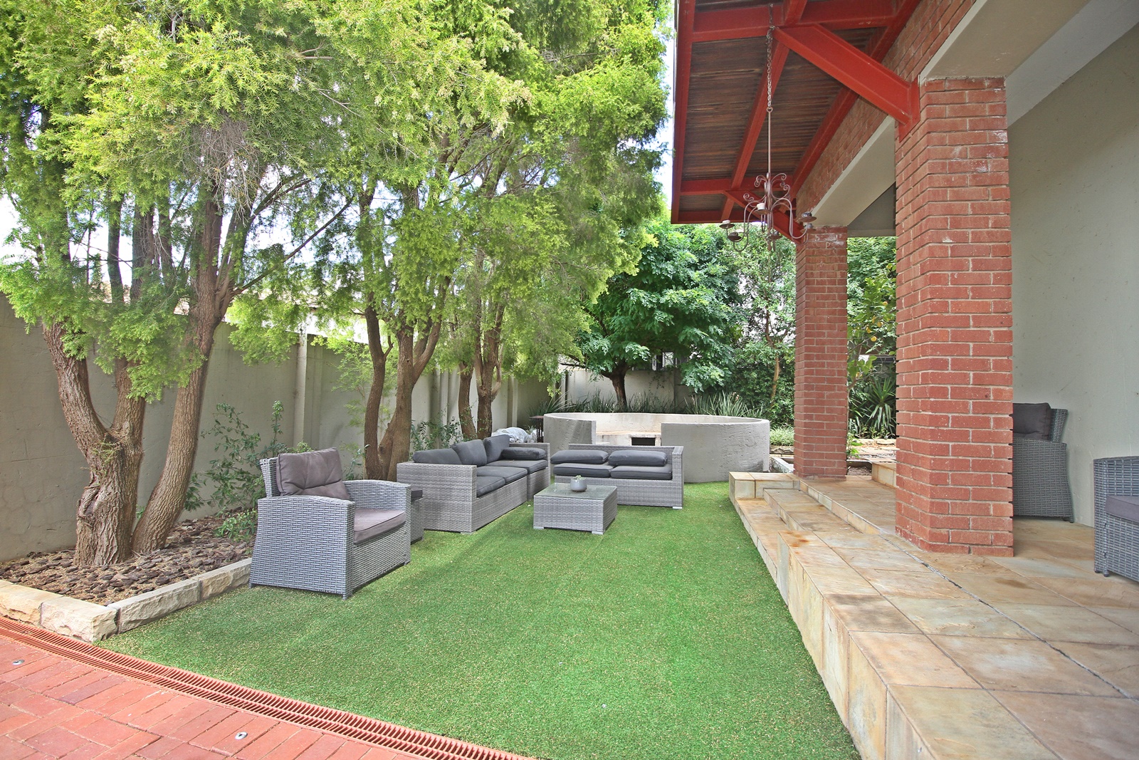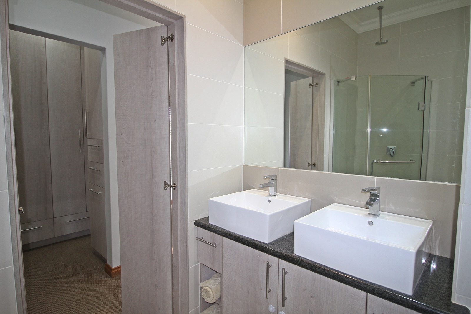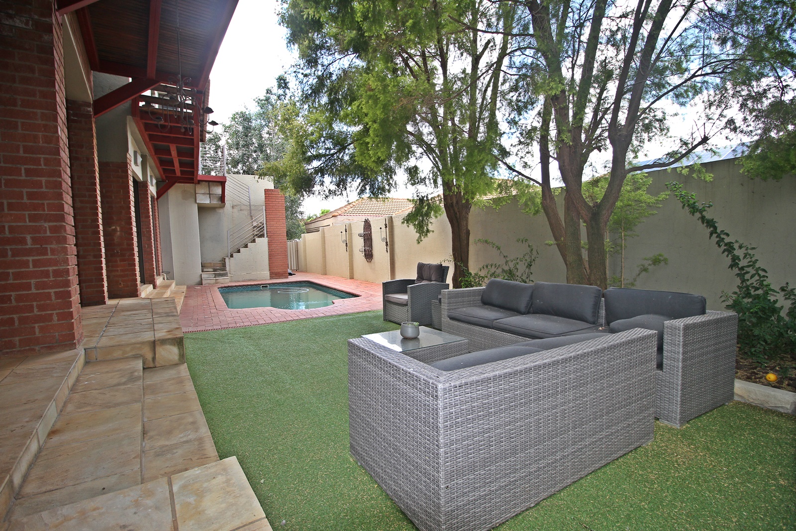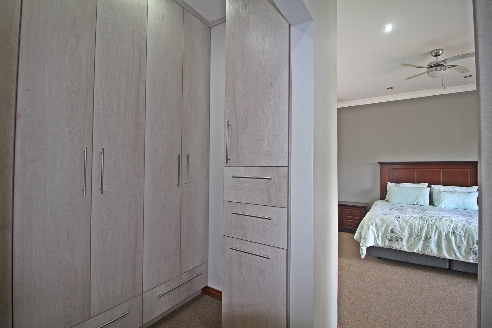 This stunning north-facing double-storey home offers an exceptional lifestyle in the sought-after Woodland Hills Wildlife Estate. With its thoughtful design, generous proportions, and seamless indoor-outdoor flow, this 4-bedroom property provides the ideal setting for modern family living. From the moment you step inside, you're greeted with a sense of privacy and space. The entrance hall leads into a beautifully planned open-plan living area featuring an air-conditioned lounge, dining room, and a gourmet kitchen complete with a scullery — perfect for the aspiring home chef. The living areas radiate a calm and inviting atmosphere, ideal for both relaxed evenings and entertaining. Also on the ground floor is a guest suite with an open-plan en-suite bathroom, plus a separate guest toilet for added convenience. The indoor braai room, fitted with its own basin and TV port, flows out to a sparkling pool and boma area — the perfect backdrop for summer gatherings and storytelling under the stars. Upstairs, the main bedroom is a true sanctuary. Enjoy breathtaking views from your private balcony, and unwind in the spacious walk-in closet and luxurious full en-suite bathroom. Adjacent to the main suite is a fully equipped cinema room with a snack bar and basin — perfect for movie nights at home. The third bedroom offers a walk-in closet, open-plan bathroom, and private balcony, while the fourth bedroom includes a dedicated study area and a bathroom with a double shower. A cozy pajama lounge provides additional space for kids to play or relax with friends. Additional features include: Three neat garages with electric doors Full staff accommodation and an outdoor bathroom Lush, irrigated, and fully walled garden for easy maintenance Prime location opposite the communal tennis court and outdoor gym Walking distance to a nearby shopping center This immaculate property truly combines luxury, practicality, and location — making it an outstanding choice for any family. Contact Annette today to schedule your private viewing. Don’t miss out on this exceptional opportunity!