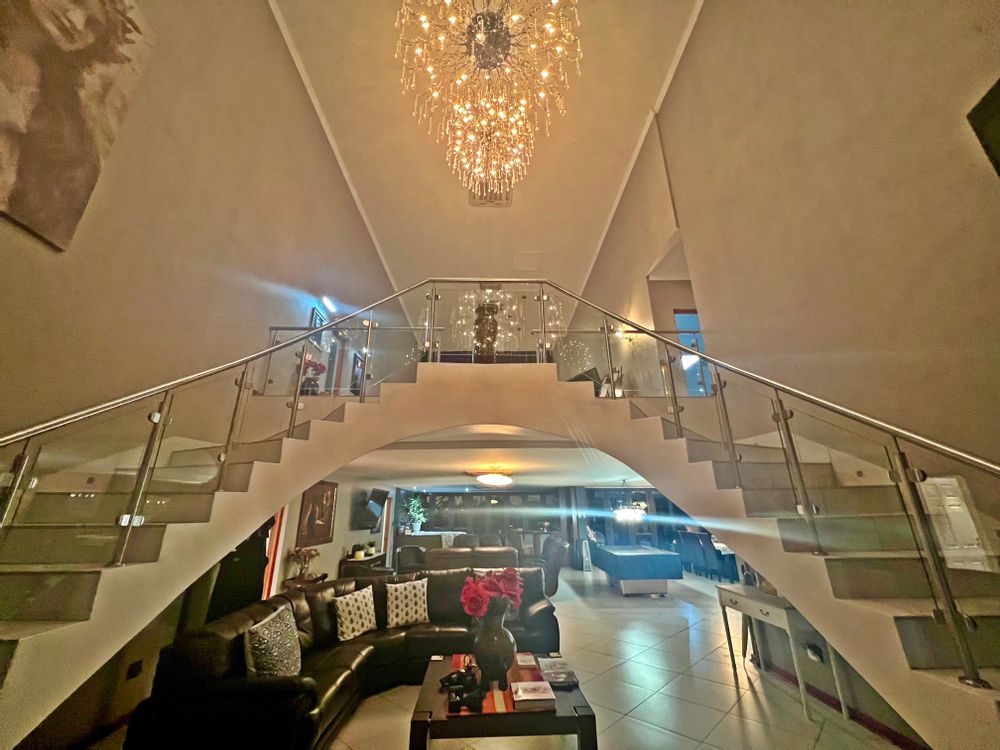 Upon entering the property, you'll be greeted by a grandiose staircase with the most beautiful chandeliers, that sets the tone for the elegant and spacious interior, complete with contemporary finishes throughout. The open-plan layout effortlessly connects the various living spaces, creating a welcoming ambiance that's perfect for both family gatherings and entertaining friends.