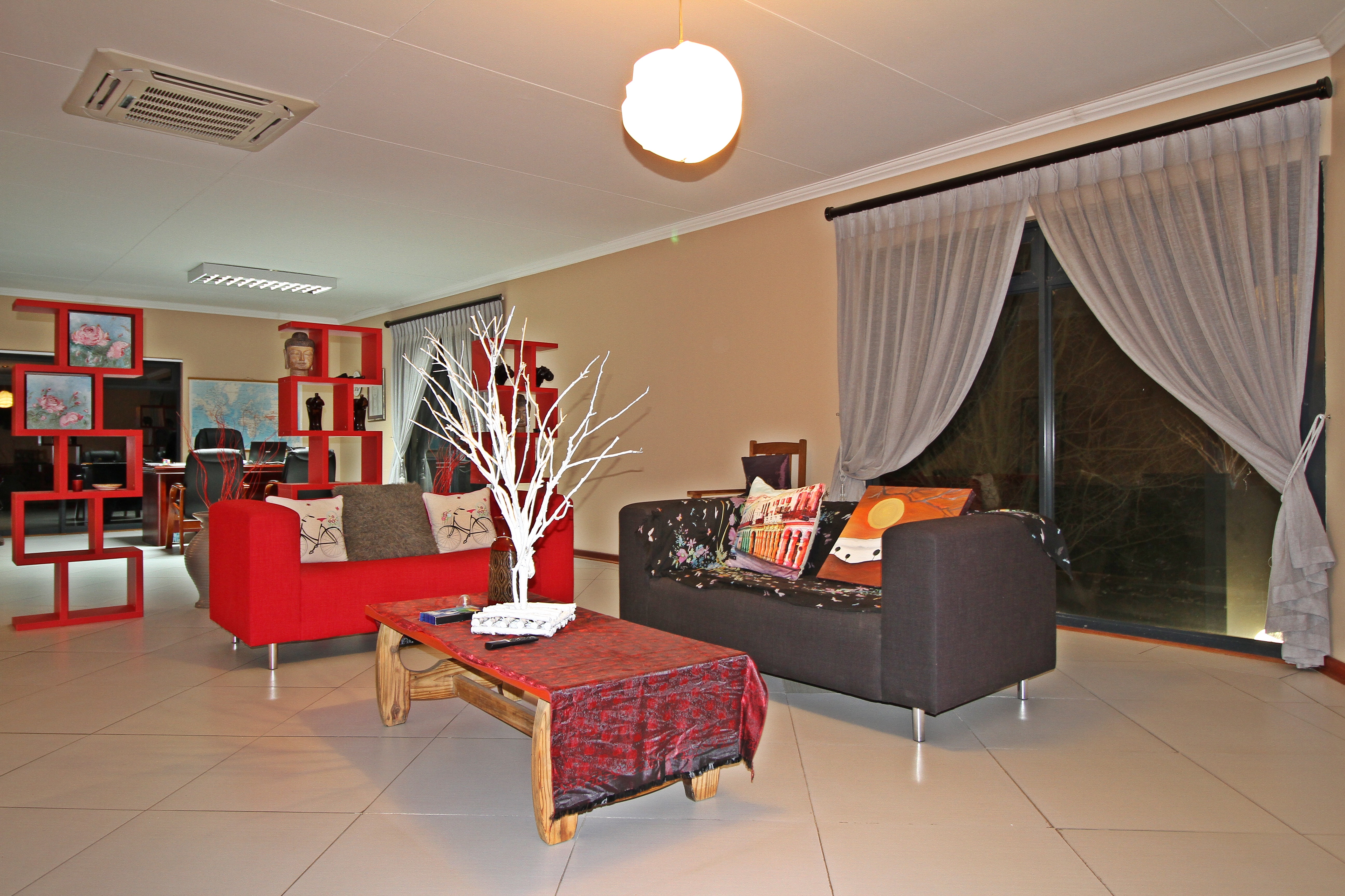 The residence offers an array of entertainment options, including a bar and jacuzzi area overlooking a veranda equipped with a built-in braai section, swimming pool, and louvre roof. The natural beauty of the area is enhanced by the presence of nearby wildlife roaming on your doorstep.