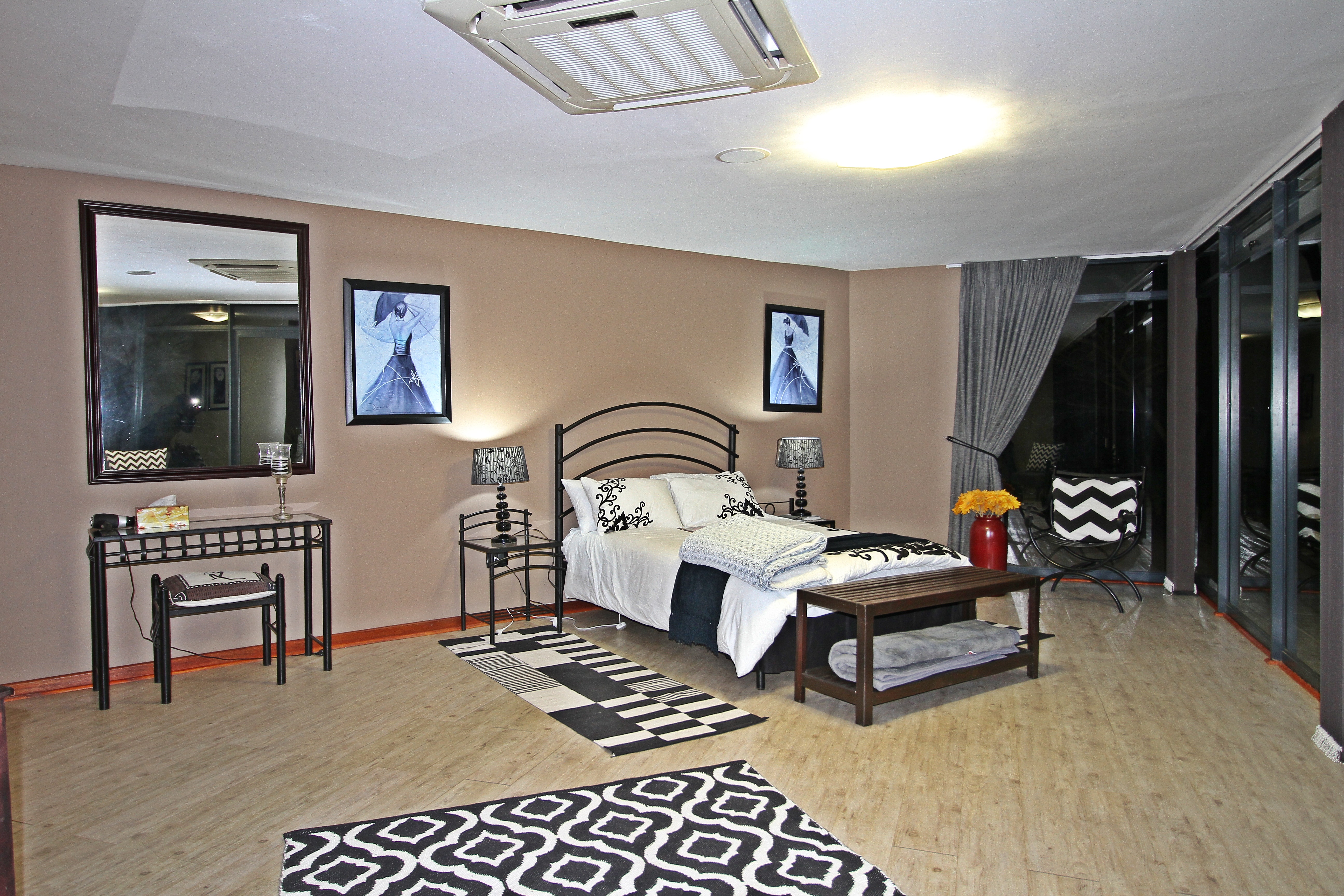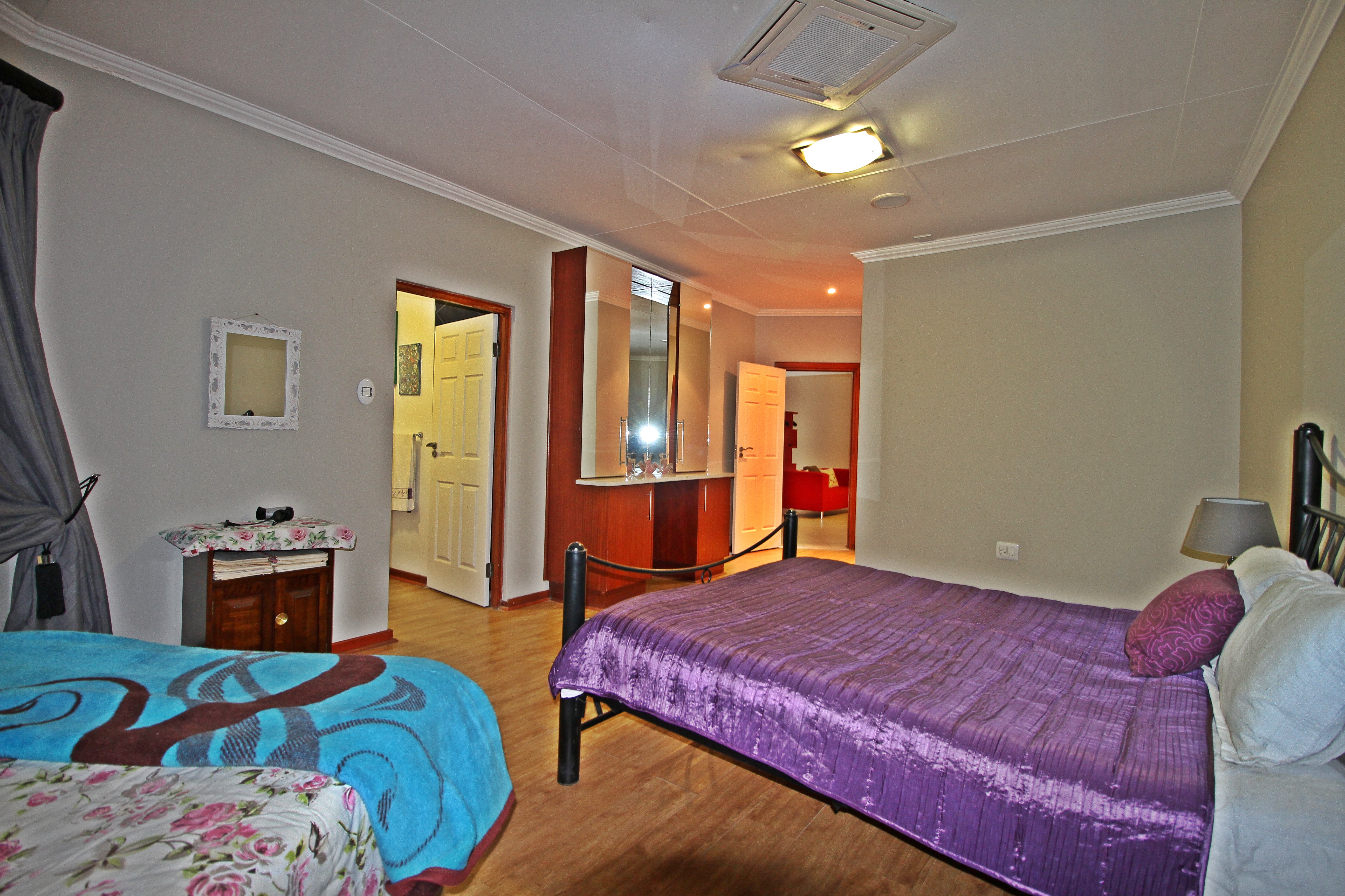 The house encompasses a total of 5 super spacious bedrooms, each boasting a luxurious en-suite bathroom and walk-in closet. The master suite has a huge walk in closet and can seat its own lounge suite for your convenience. Glass doors in each bedroom allow abundant natural light to illuminate the space. With 3 bedrooms located upstairs and 2 downstairs, the layout offers flexibility and privacy, making it perfect for accommodating guests.