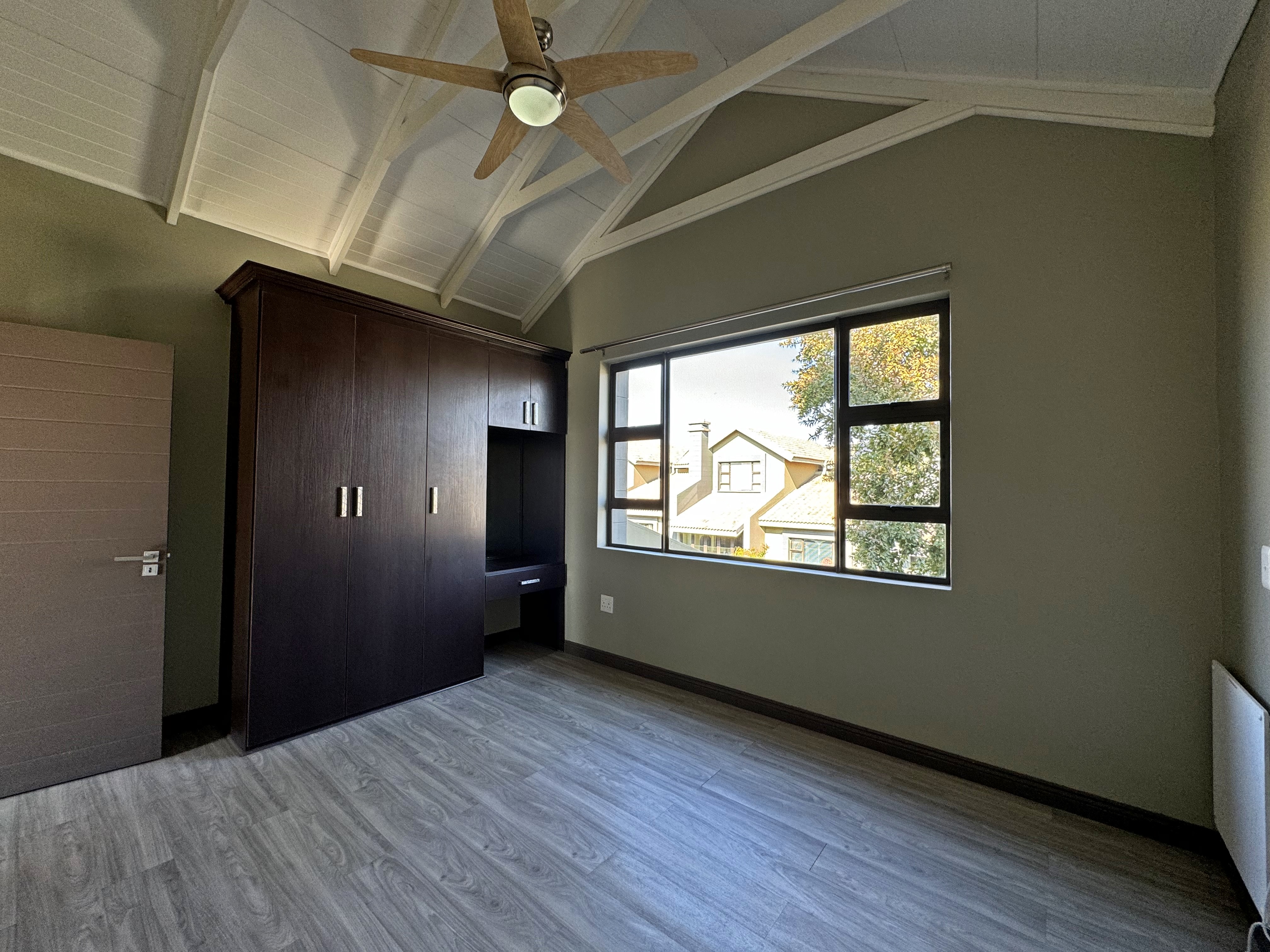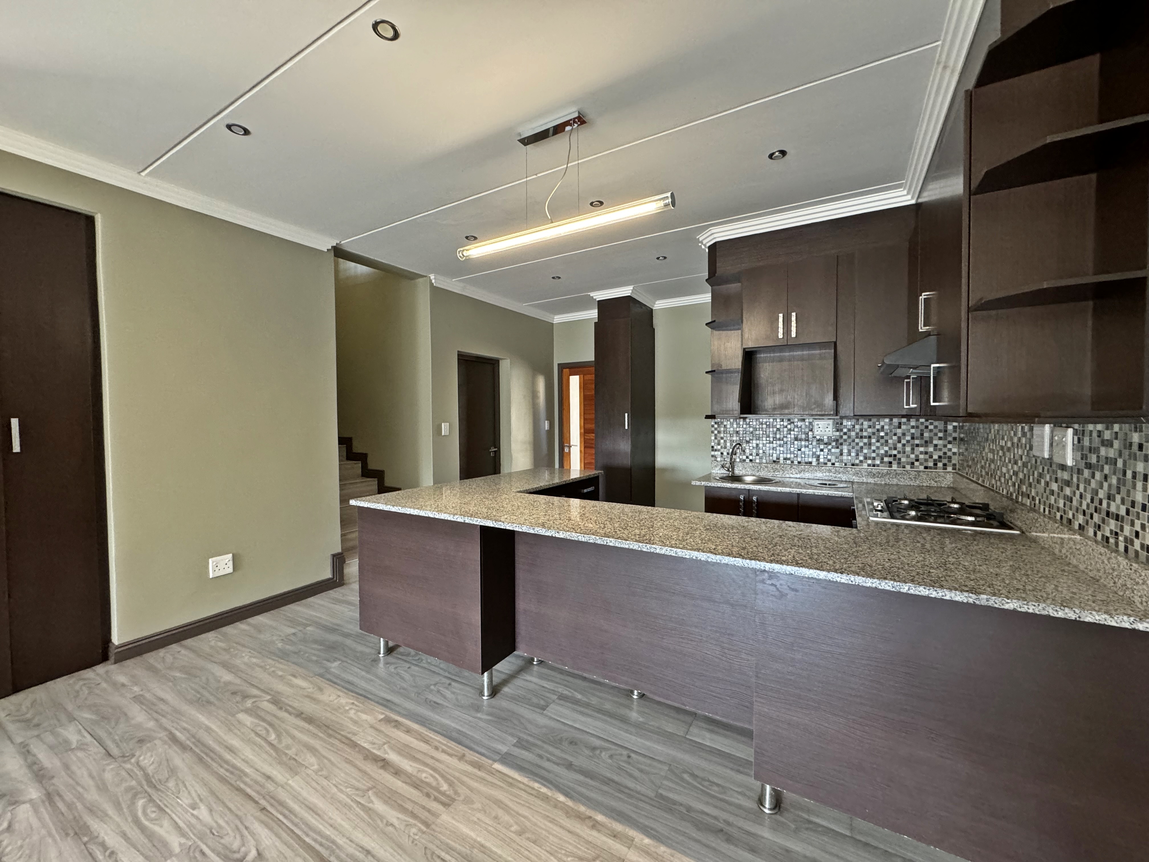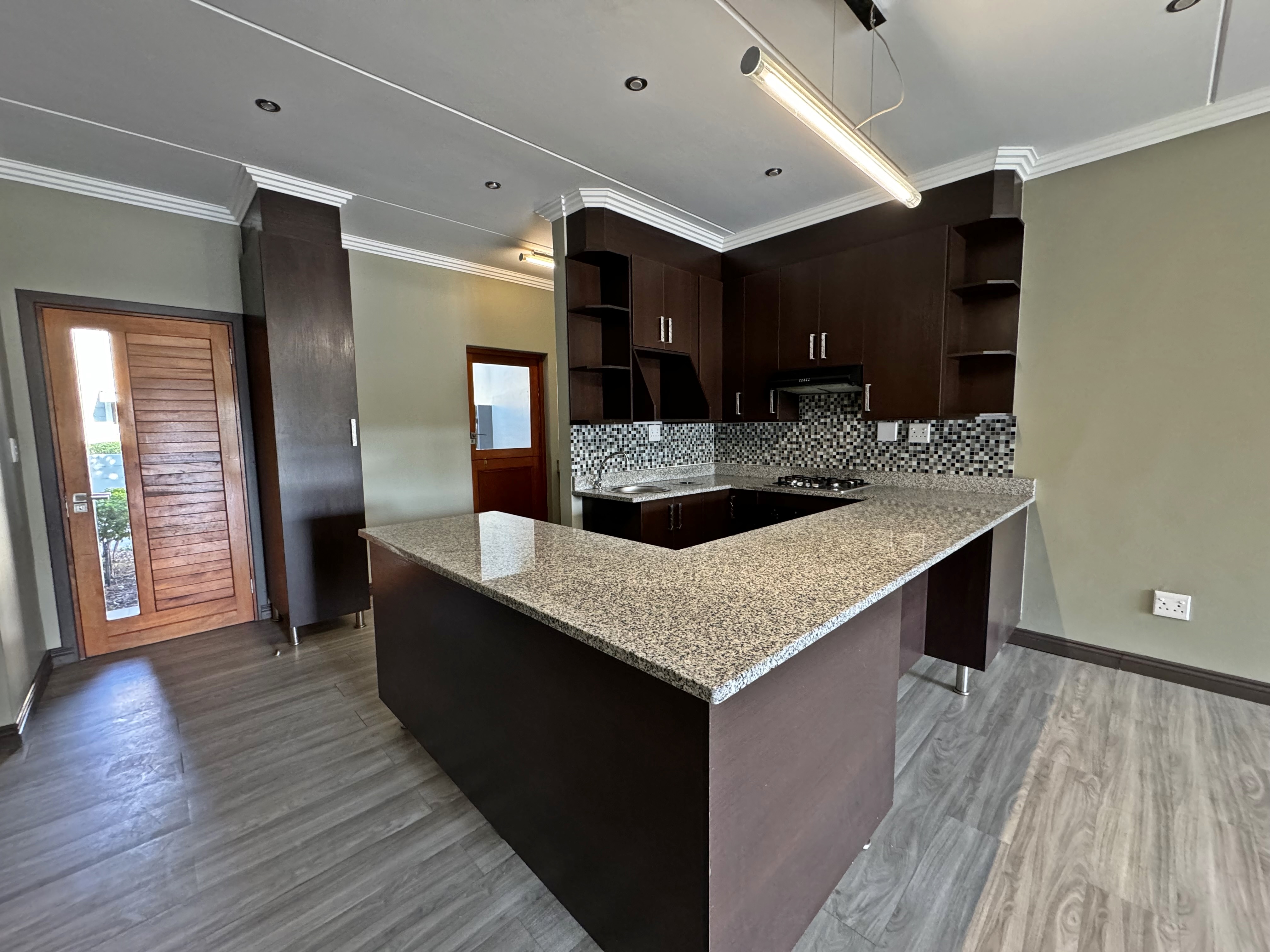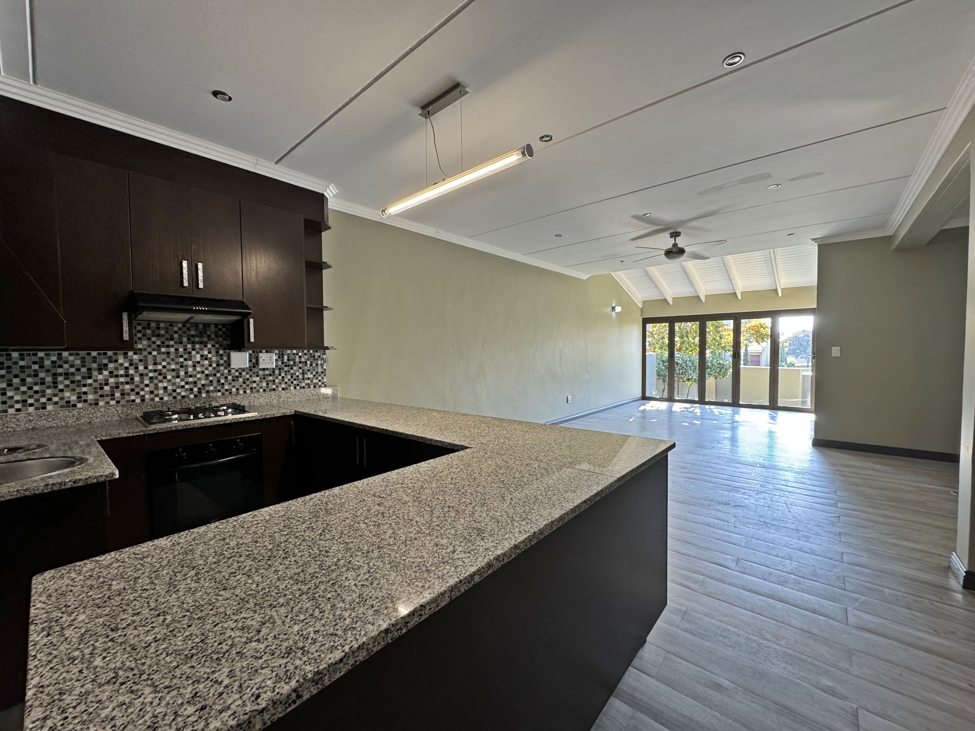 Discover the perfect blend of style, comfort, and functionality in this immaculate double-storey townhouse, ideally situated in a sought-after complex. The spacious open-plan living and dining area sets the tone for modern living, seamlessly connecting to an entertainment room with a built-in braai and large stacking doors that lead to a beautifully landscaped garden. Designed for both relaxation and entertaining, this indoor-outdoor space is a true highlight. The sleek kitchen is a chef’s dream, featuring granite countertops, a gas hob, and a practical scullery for added convenience. A guest bathroom on the main floor ensures comfort for both residents and visitors. The downstairs master suite provides a private retreat with its own en-suite bathroom, while upstairs you’ll find two generously sized bedrooms sharing a stylish full bathroom. Ample storage throughout the home makes organizing a breeze. Contemporary finishes such as vinyl flooring and modern blinds enhance the property’s sophisticated aesthetic. A double automated garage with direct access to the home includes a dedicated laundry area and additional storage. This townhouse offers a perfect balance of elegance and practicality – an ideal choice for discerning buyers seeking a secure and stylish lifestyle. Contact Annette Kasselman today to arrange a private viewing.