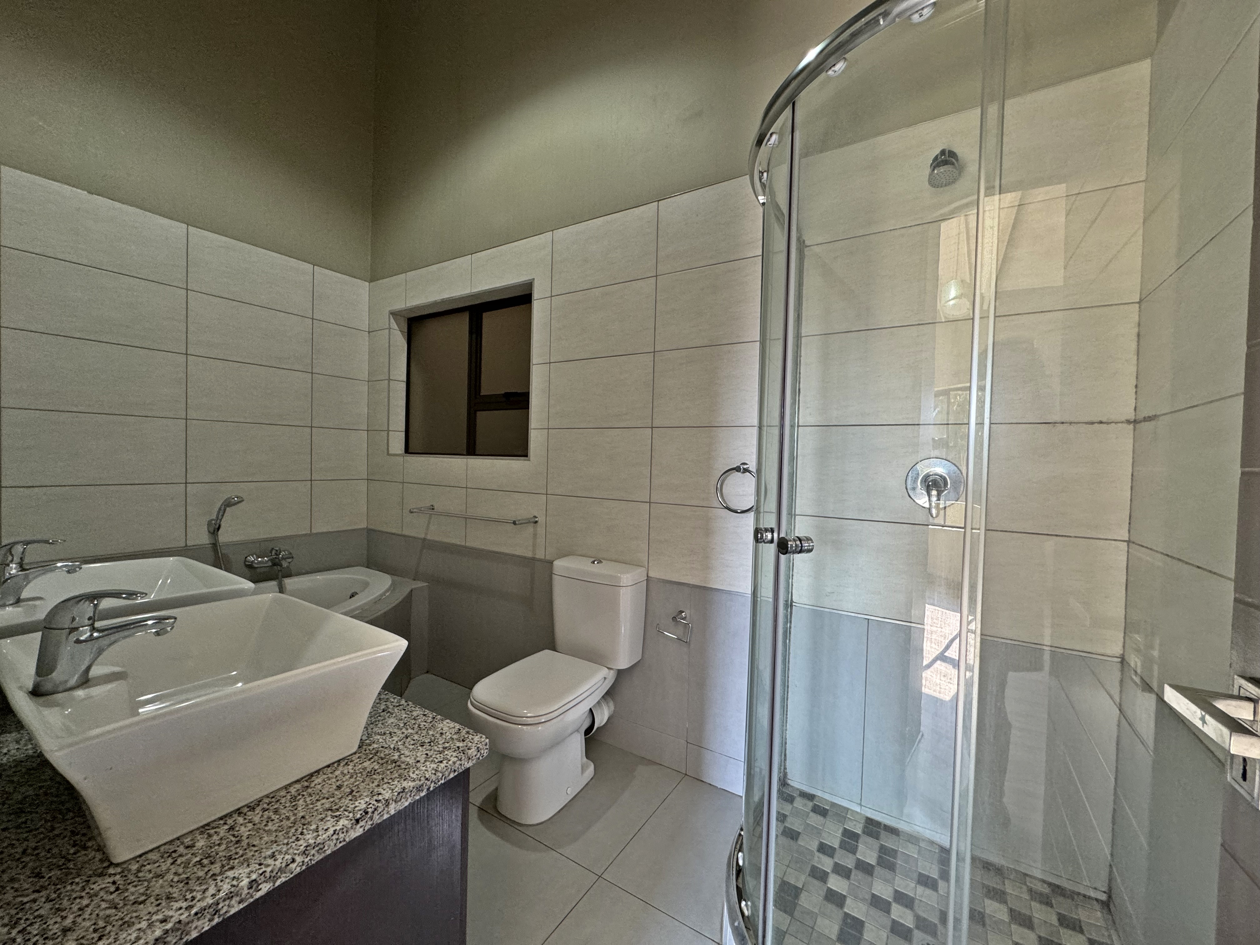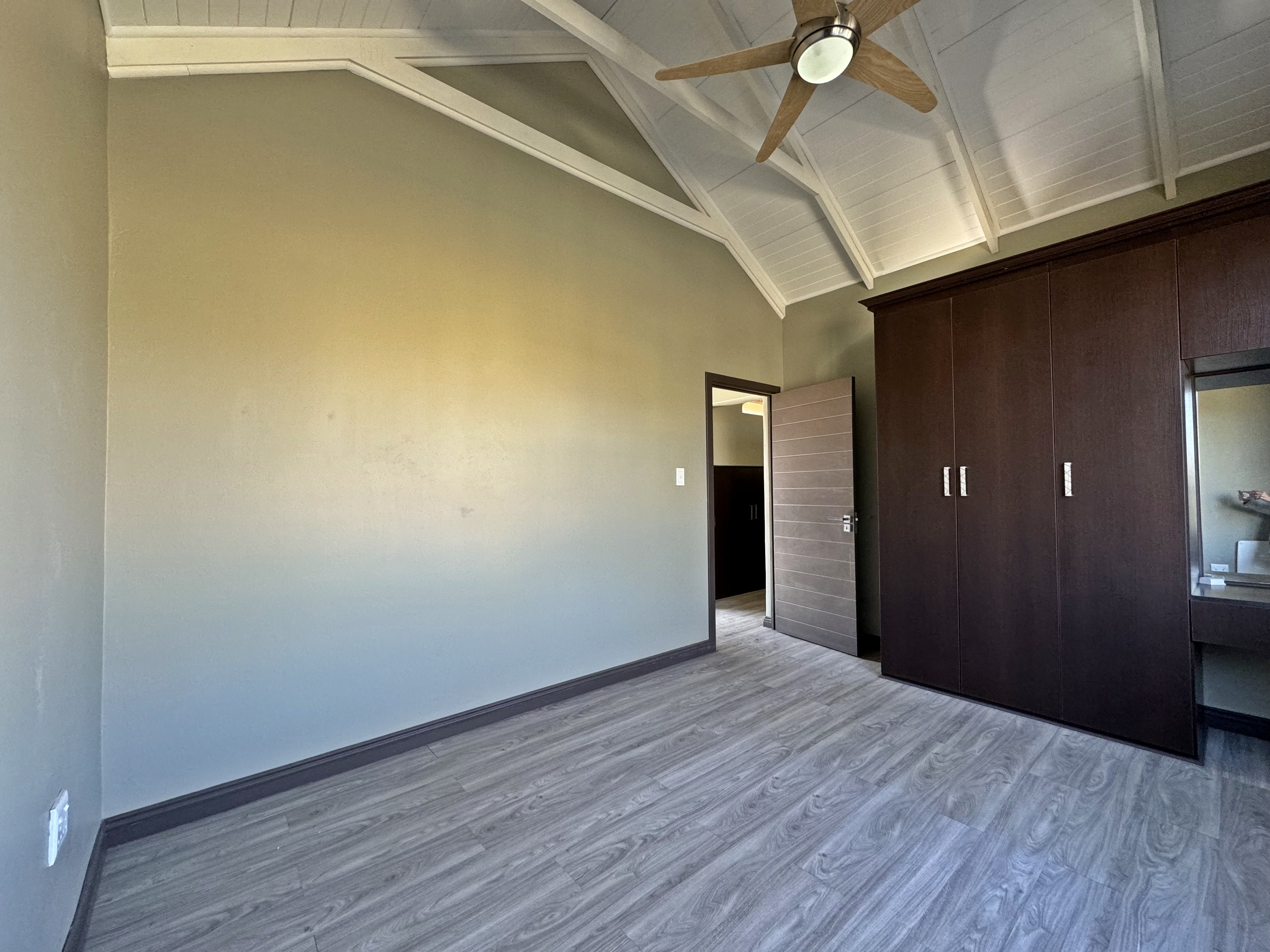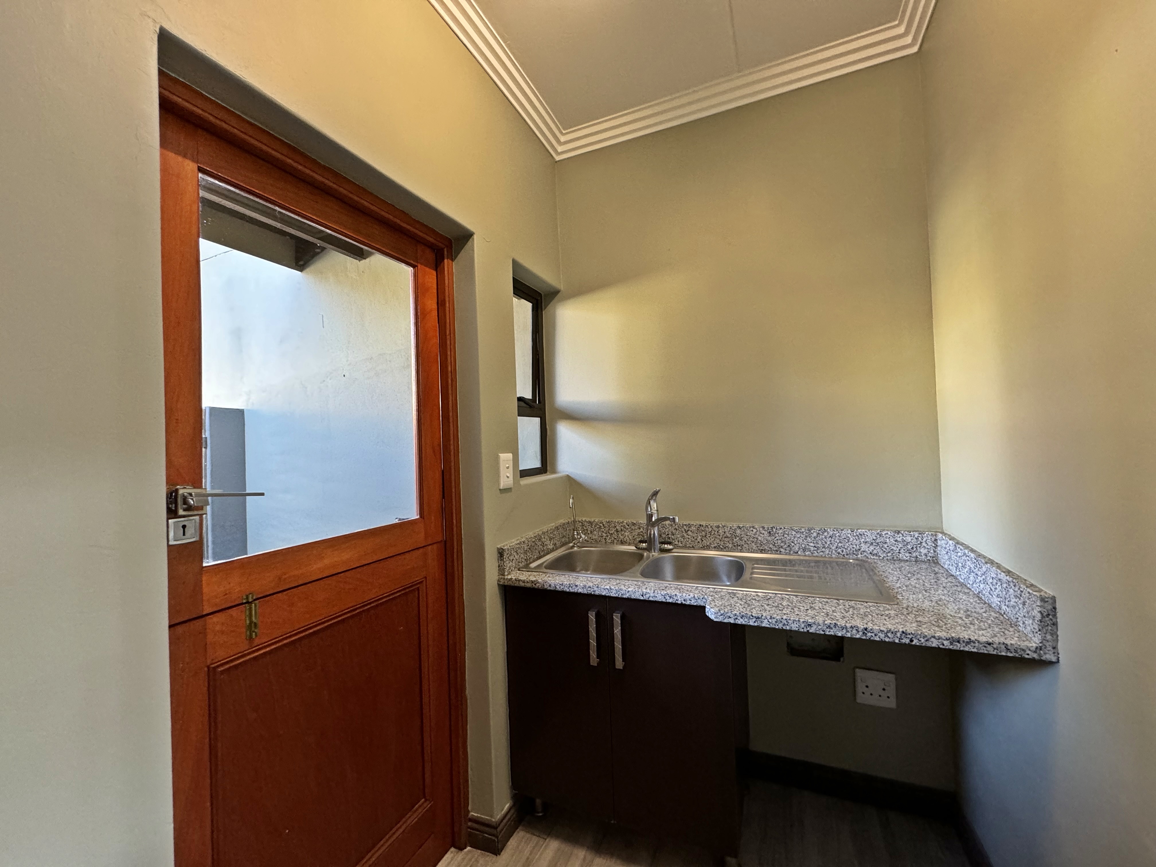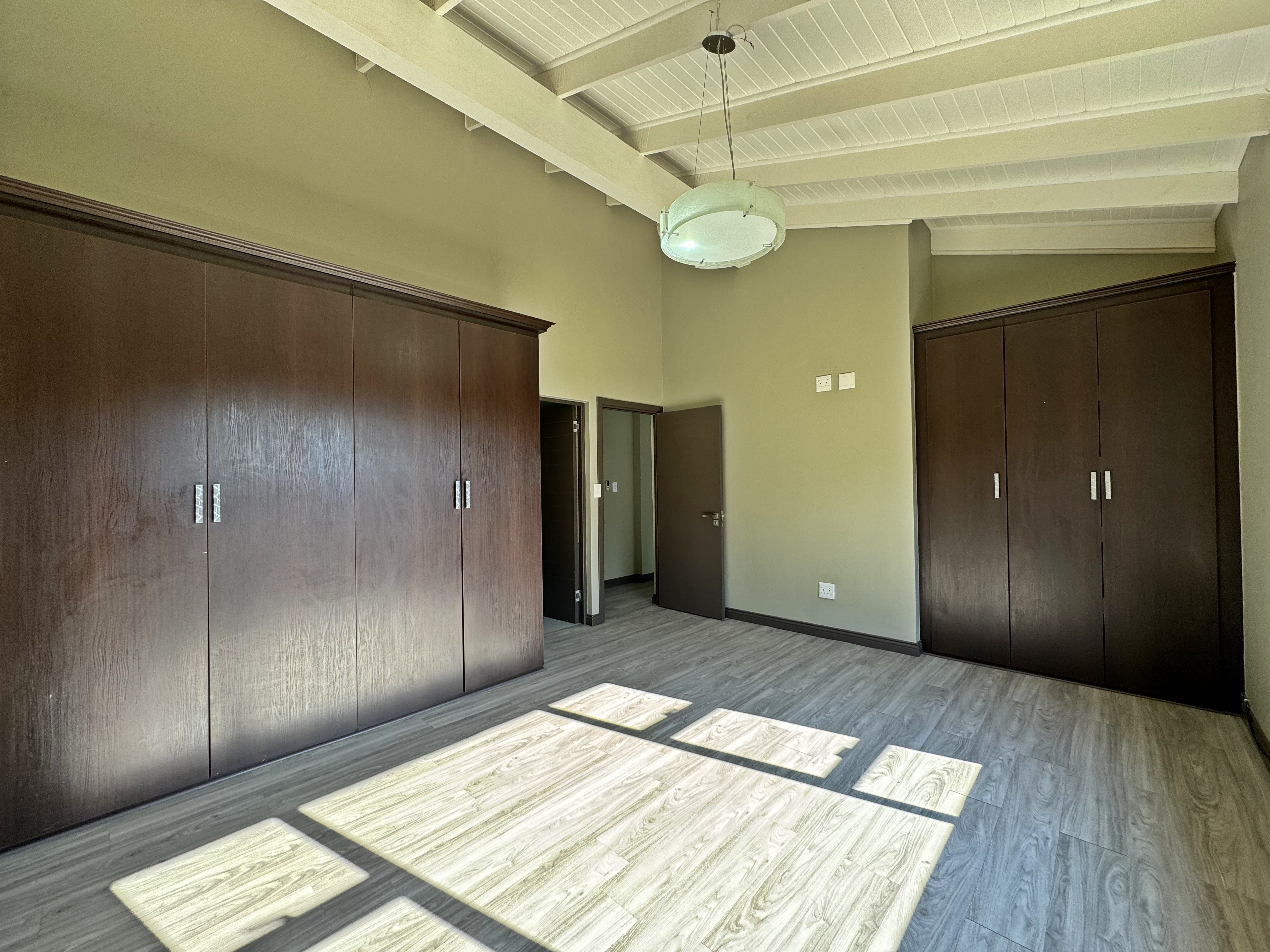 Discover the perfect blend of style, comfort, and functionality in this immaculate double-storey townhouse, ideally situated in a sought-after complex. The spacious open-plan living and dining area sets the tone for modern living, seamlessly connecting to an entertainment room with a built-in braai and large stacking doors that lead to a beautifully landscaped garden. Designed for both relaxation and entertaining, this indoor-outdoor space is a true highlight. The sleek kitchen is a chef’s dream, featuring granite countertops, a gas hob, and a practical scullery for added convenience. A guest bathroom on the main floor ensures comfort for both residents and visitors. The downstairs master suite provides a private retreat with its own en-suite bathroom, while upstairs you’ll find two generously sized bedrooms sharing a stylish full bathroom. Ample storage throughout the home makes organizing a breeze. Contemporary finishes such as vinyl flooring and modern blinds enhance the property’s sophisticated aesthetic. A double automated garage with direct access to the home includes a dedicated laundry area and additional storage. This townhouse offers a perfect balance of elegance and practicality – an ideal choice for discerning buyers seeking a secure and stylish lifestyle. Contact Annette Kasselman today to arrange a private viewing.