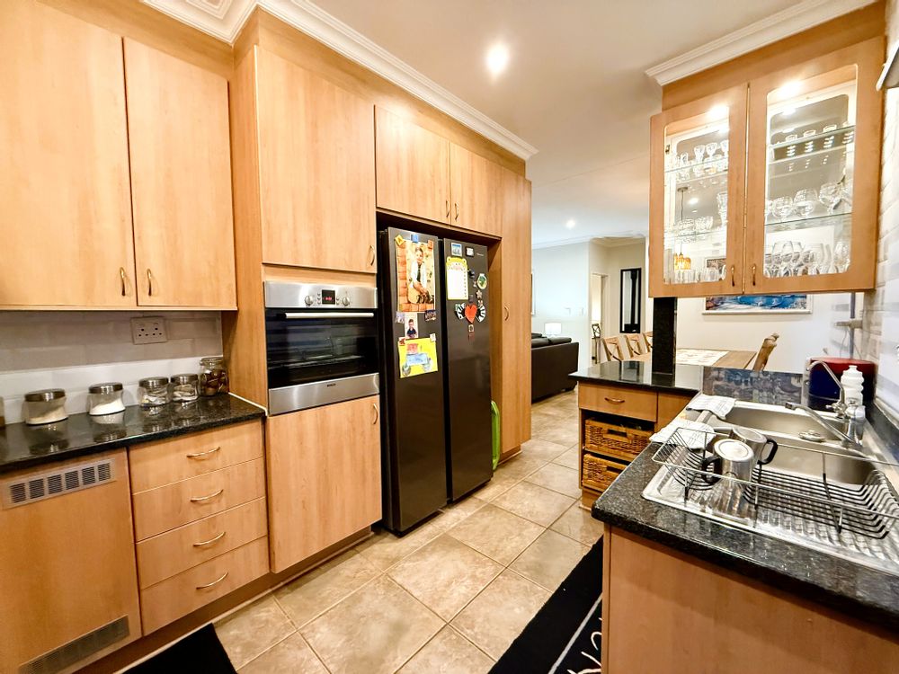 Step into a home that has been tastefully renovated with care and attention to detail — all improvements are backed by a full summary of invoices. This stunning townhouse allows you to simply move in and enjoy every modern luxury it has to offer. The home features two spacious bedrooms with ample cupboard space and two full bathrooms, including a main en-suite, both bedrooms now feature new carpets.. The lounge and family room flow seamlessly into a modern open-plan kitchen, creating a warm and inviting living area that’s perfect for entertaining or relaxing.