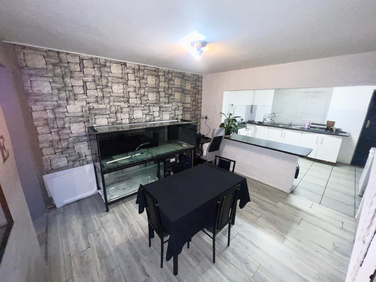 This fully enclosed property comes with a garage with parking for 2 cars, upon entering the home you are welcomed with a spacious fully fitted kitchen and open plan dining room over looking into the large lounging area that can be turned into an additional living space or entertainment area, the property also offers two rooms that has built in cupboards and tiled throughout.