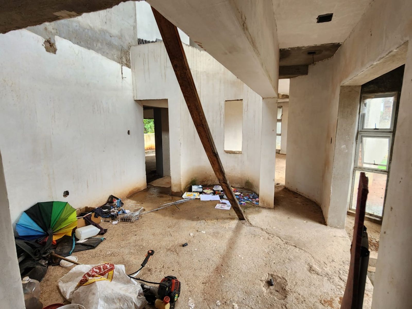 Set on a generous stand, the planned layout includes four bedrooms and two double garages, providing plenty of space for family living, vehicles, or a workshop setup. The existing structure already reflects a modern, open design with excellent potential for spacious interiors once completed.