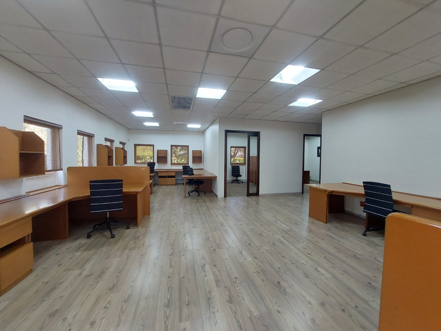 Furnished move in ready office in Woodmead Office Park with 4 management offices, furnished open plan for 10 staff, boardroom to seat 12, kitchen, store room, reception, ablutions, entertainment patio. Impressive reception area with views onto the koi pond and water feature. A tranquil environment surrounded by beautifully landscaped gardens in a secure office park a short distance from the highway and opposite the Woodmead shopping precinct.