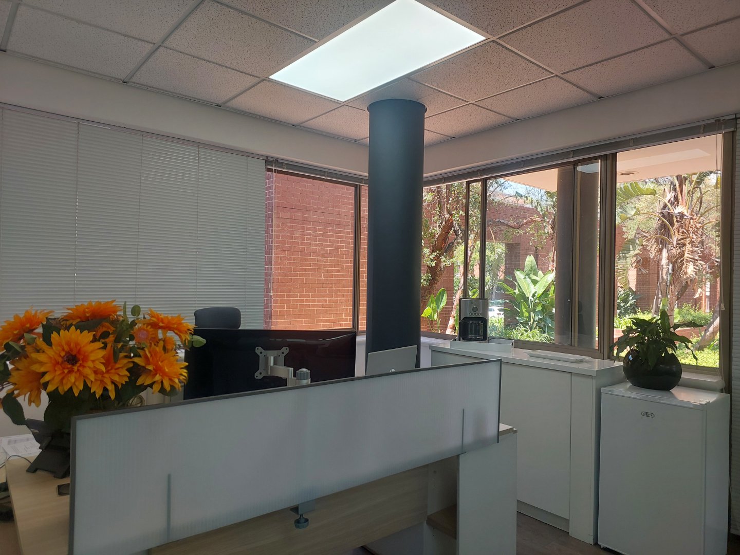 Within The Woodlands Office Park, tenants benefit from a wide range of amenities and lifestyle conveniences. The park features backup power and water, high-speed fibre connectivity, and wheelchair-friendly access with lifts and ample parking. 24-hour security, CCTV monitoring, and controlled access points ensure a safe and secure working environment. The estate also offers a variety of on-site facilities, including a Mugg & Bean restaurant and coffee shop, a gym, biokinetics, optometrist, dentist, and physiotherapist. Additional conveniences include a dry cleaner, print shop (Minuteman Press), mobile car wash, and a nursery/creche for working parents.