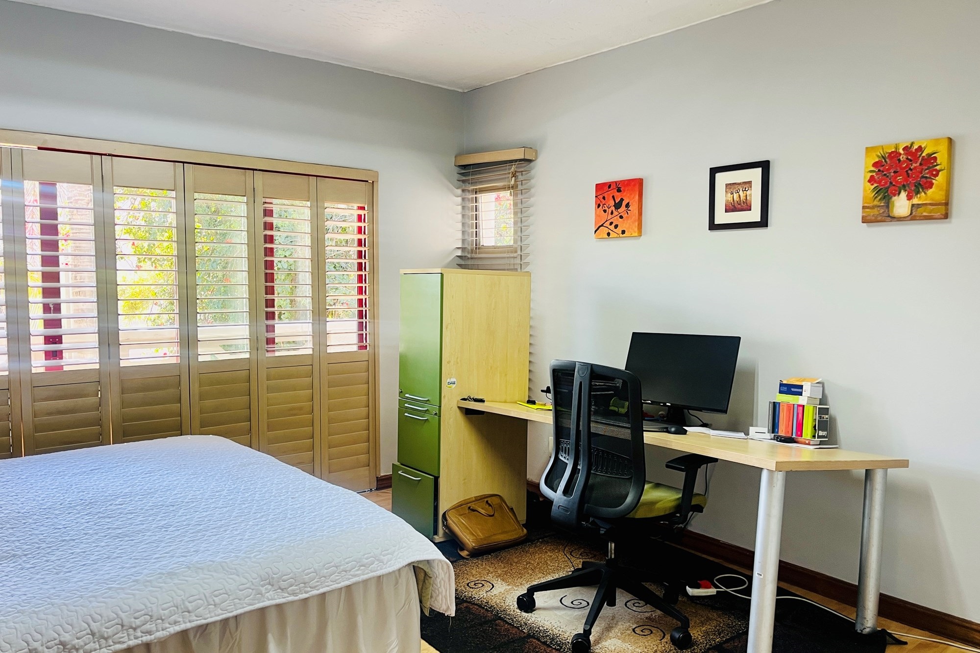 Upstairs:Study/Home Office ideal for remote workFull En-suite Bedroom with access to a charming courtyardTwo Additional Bedrooms with ample cupboard spaceFull Family Bathroom featuring both shower and bathtubMain Bedroom with full en-suite bathroom, walk-in closet, and private balcony overlooking the garden