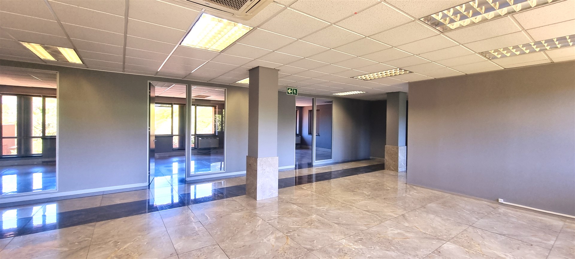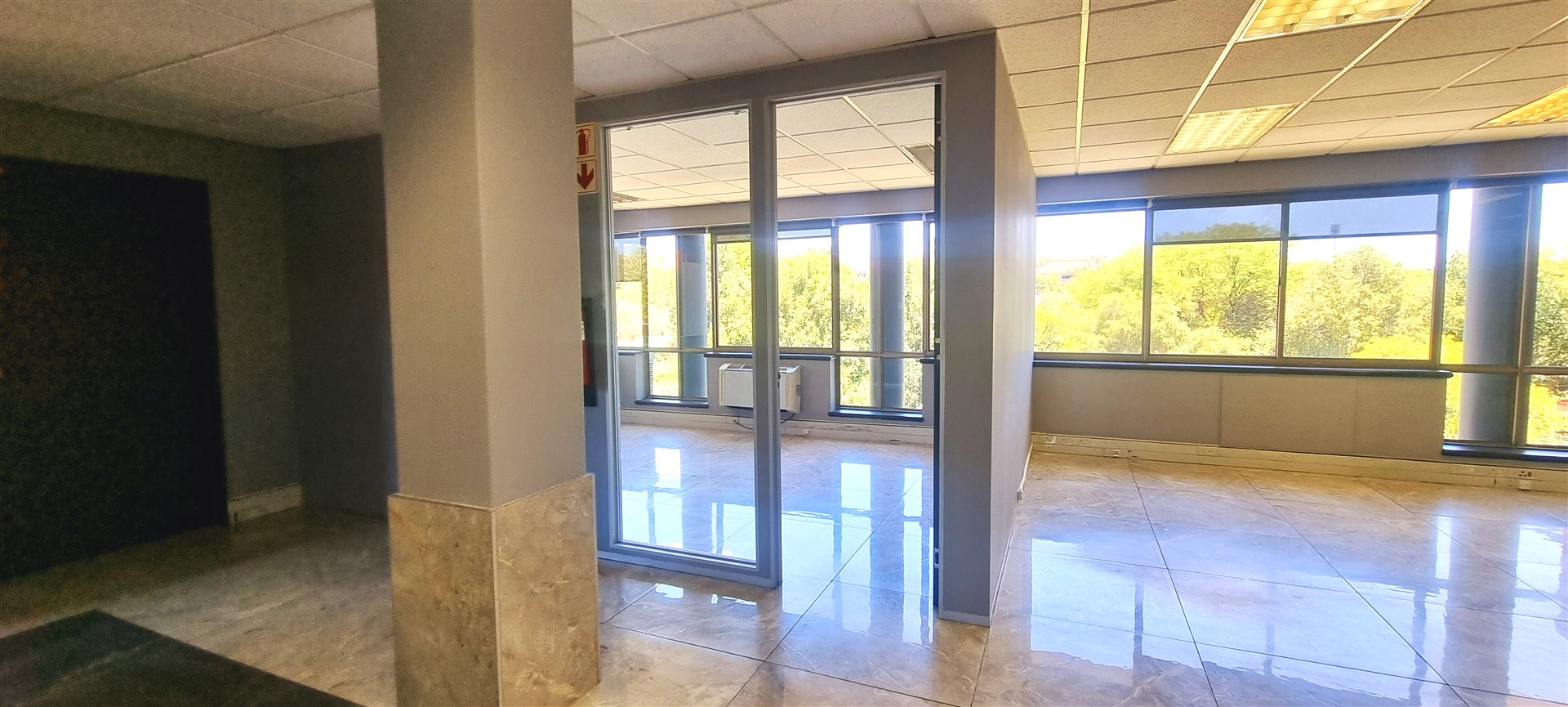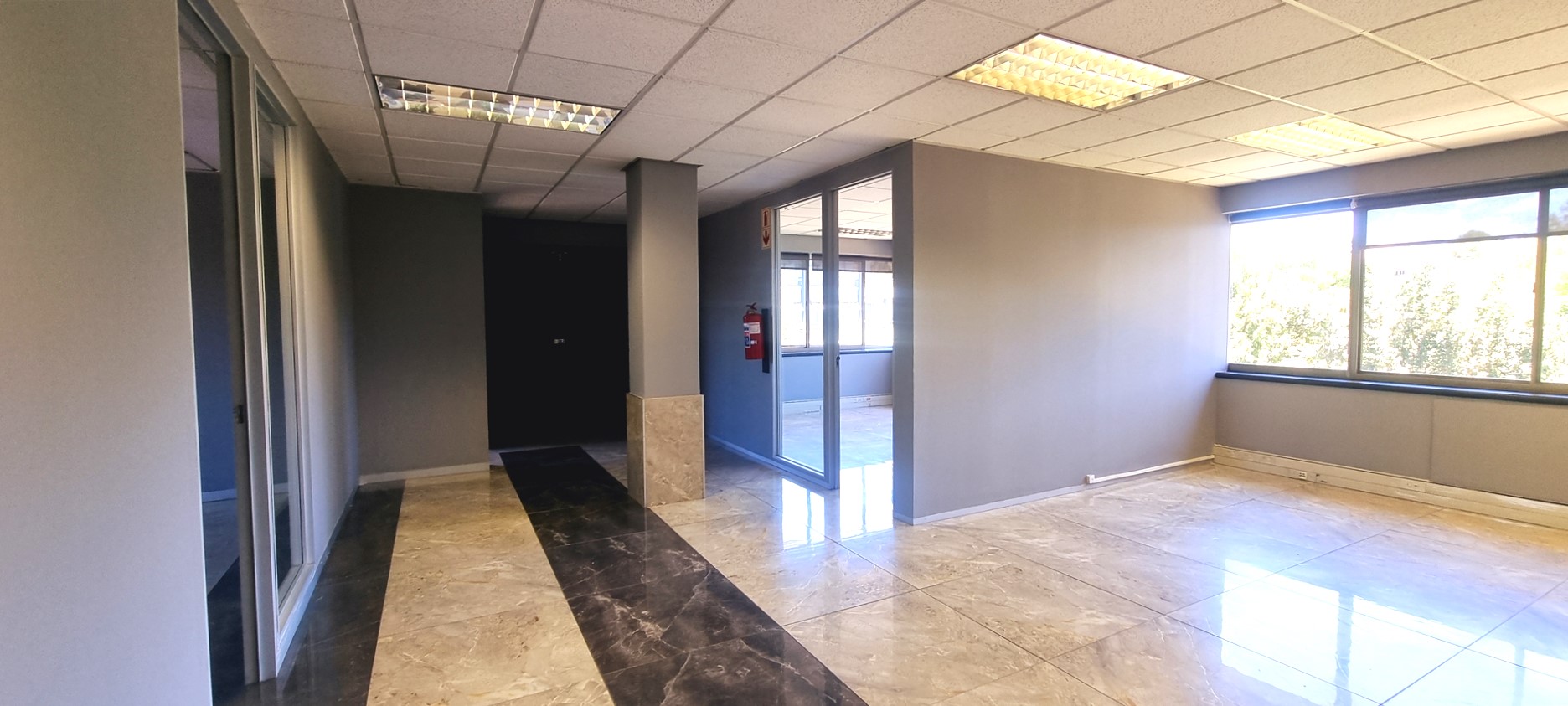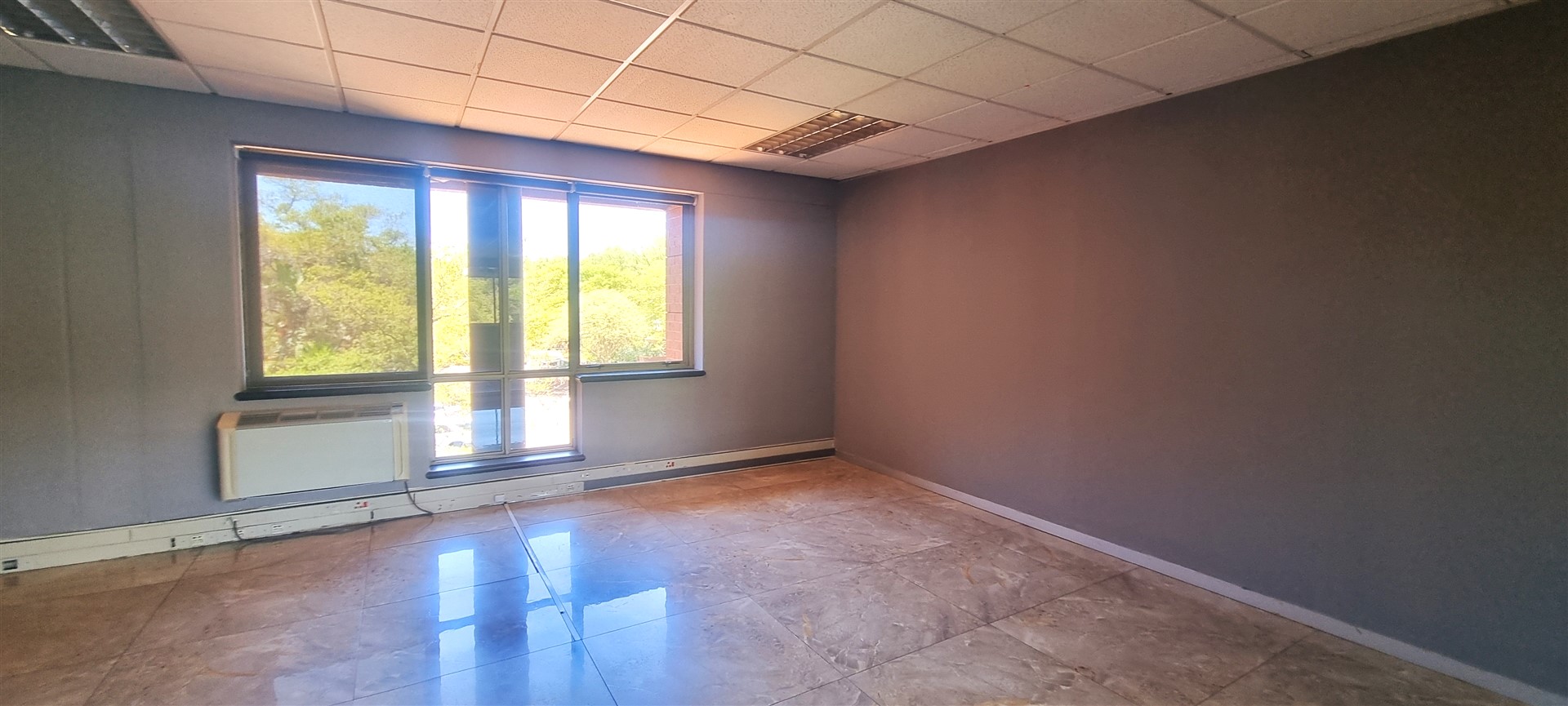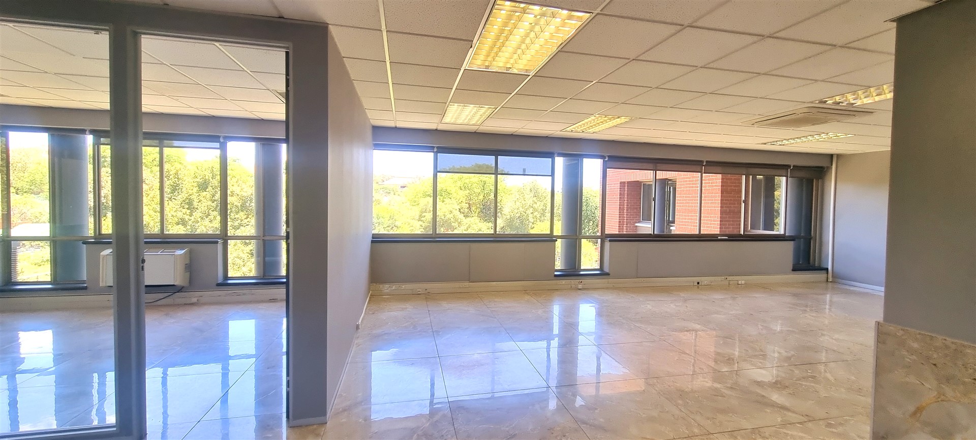 The office space is fully tiled.