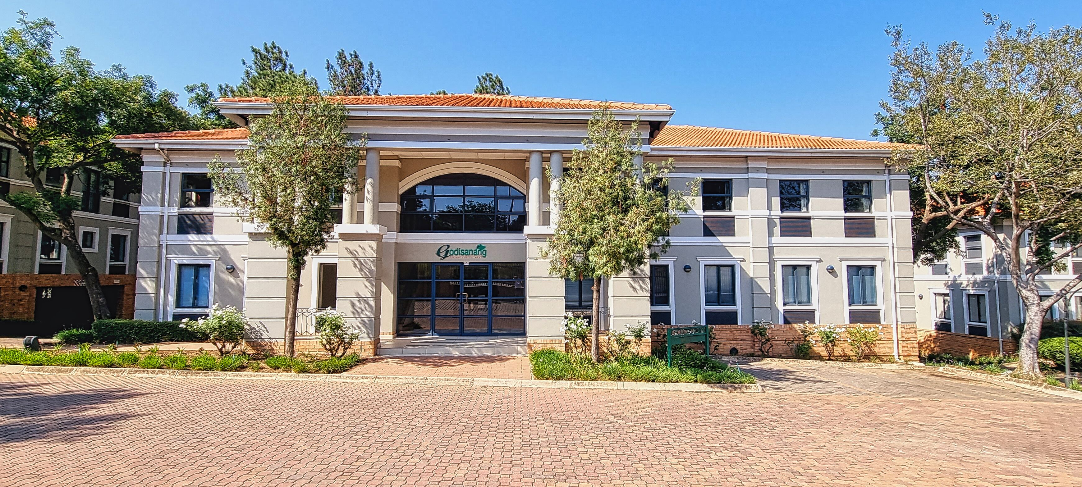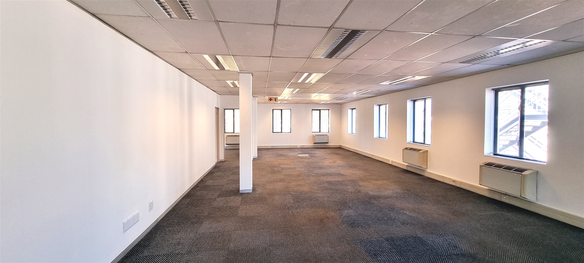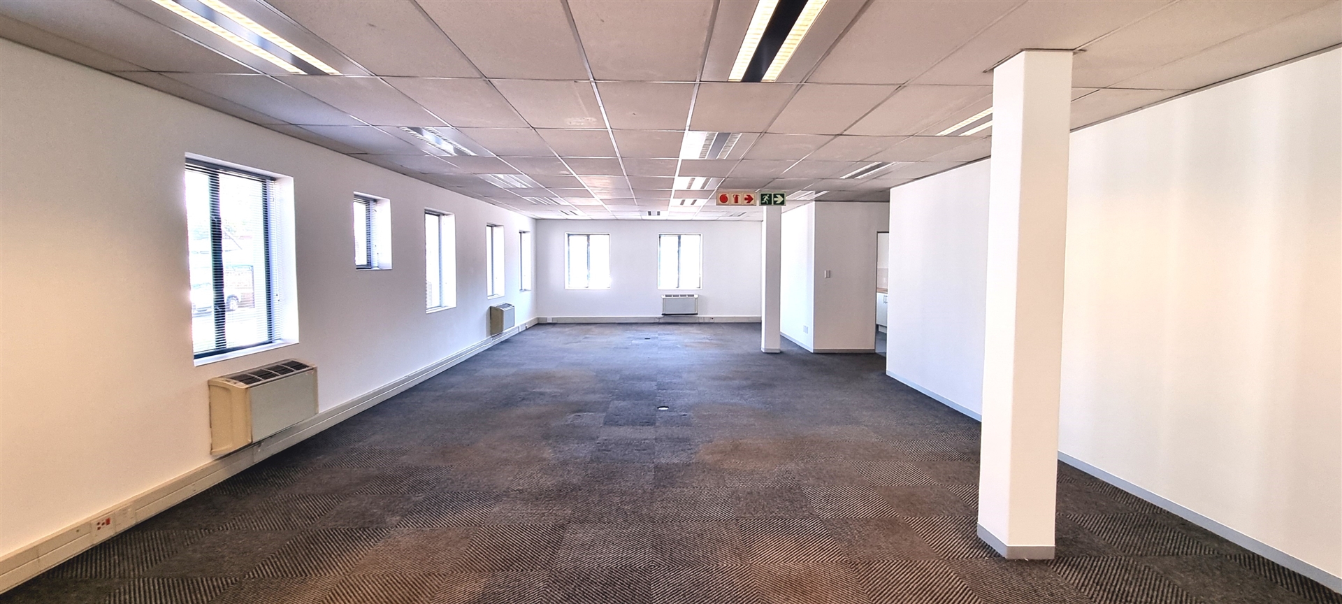 The secure office park is surrounded by well-established gardens, enhancing the professional yet tranquil atmosphere.