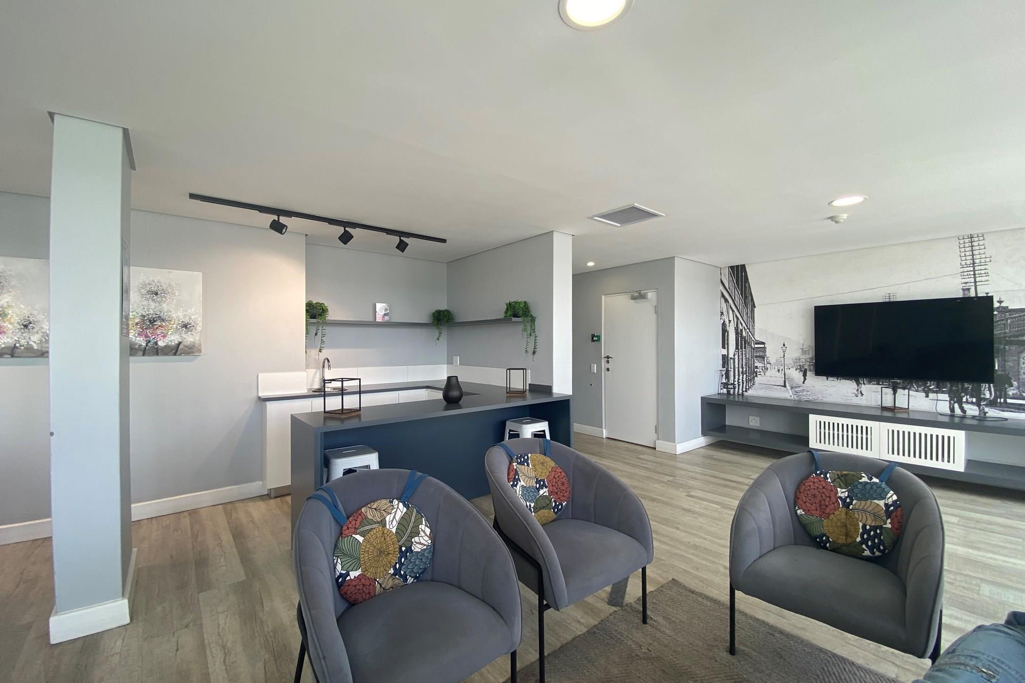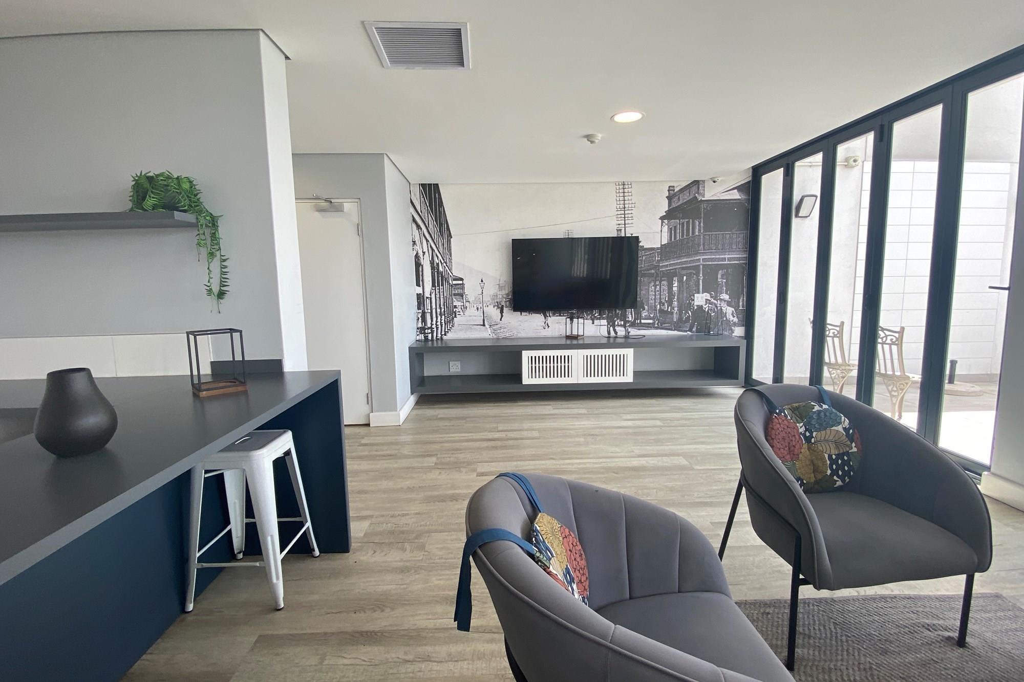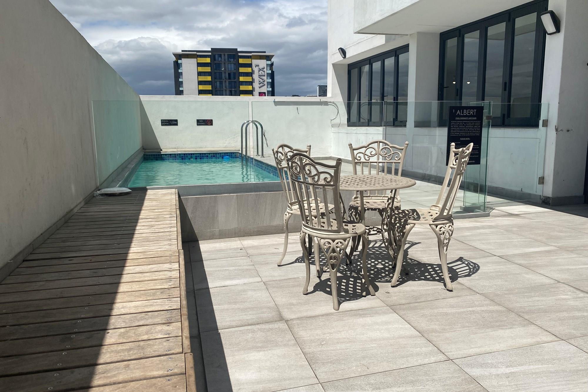 These high-end furnished 2 bedroom units with the latest in space-savvy appliances have a modern feel and lovely views of Table Mountain and parts of Cape Town harbour. It is fitted with fiber and TV/Netflix and is Tenant Ready. The complex has a lovely communal lounge with TV, and a outside pool and gym. Parking is not included in the purchase price but can be made available for purchase at an extra cost.