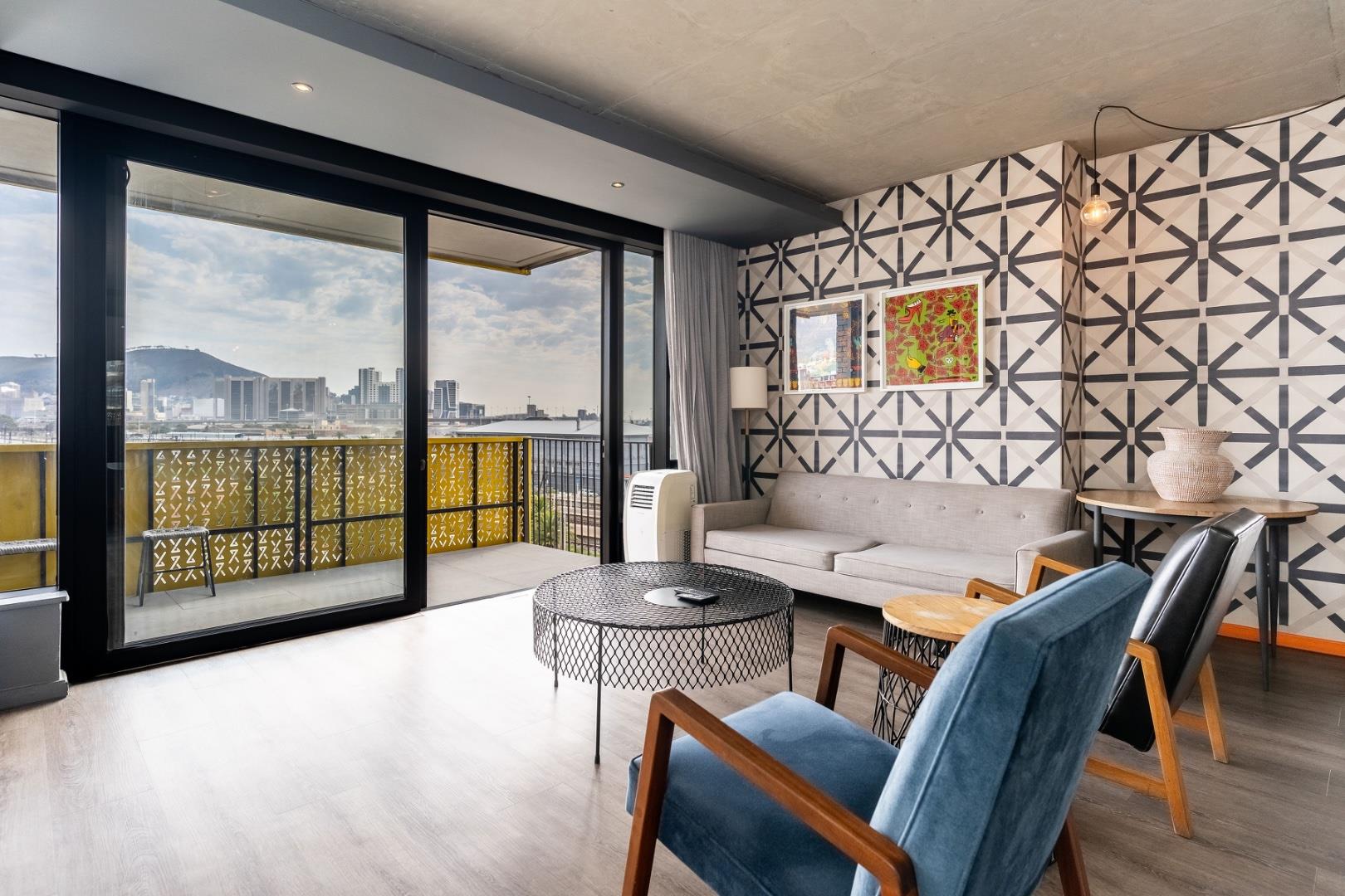 The apartment features a sleek open-plan kitchen and dining area, a spacious lounge, and a private balcony with uninterrupted views of the harbour, Table Mountain, Lion’s Head, and Signal Hill—a rare and highly sought-after combination.