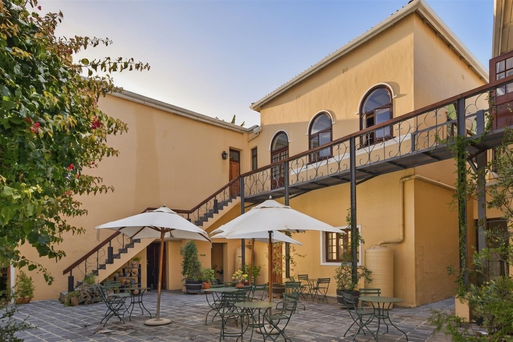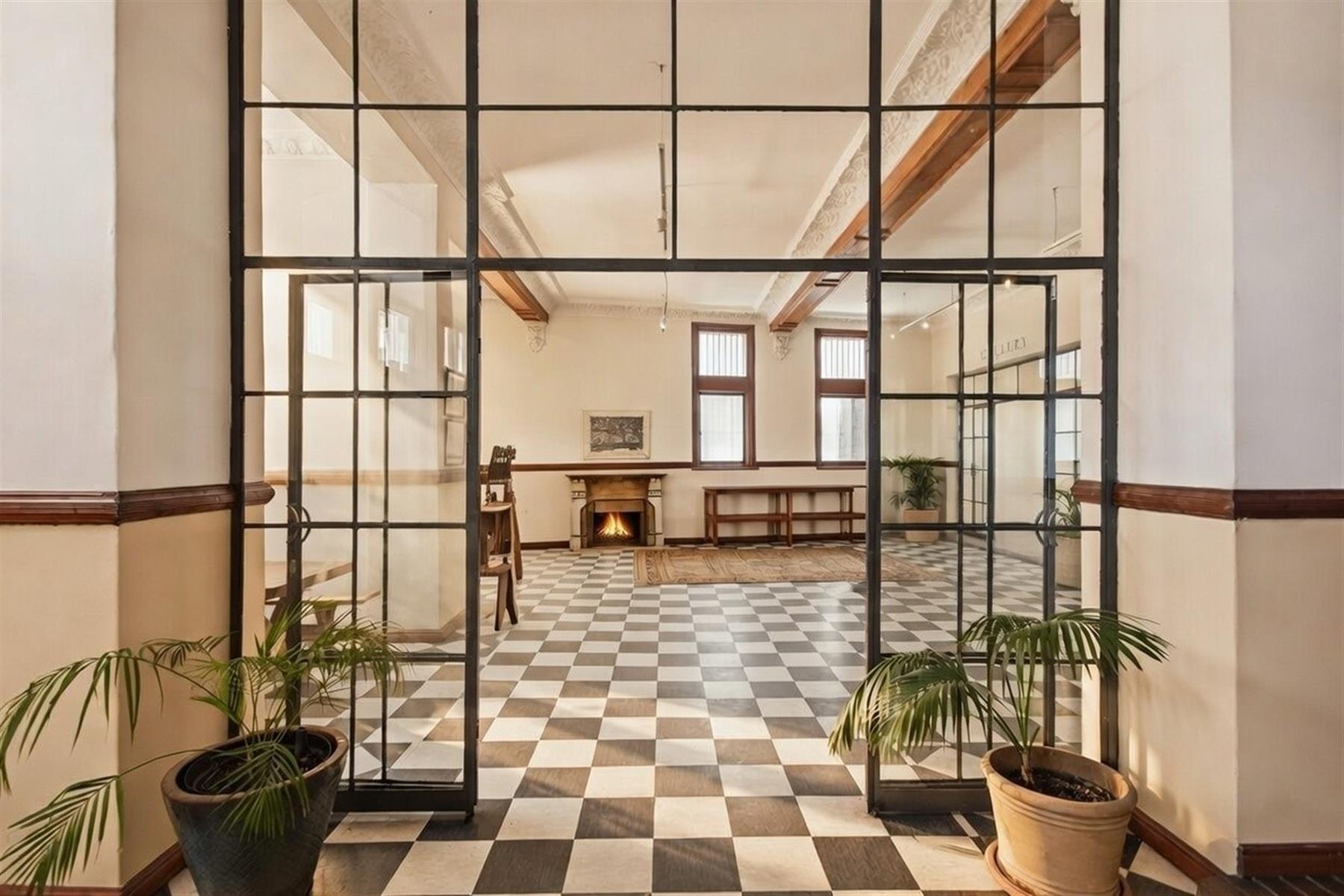 High ceilings, arched windows, original fireplaces, yellowwood floors, and period features remain intact, complemented by discreet modern upgrades that allow the property to function seamlessly as a contemporary mixed-use space.