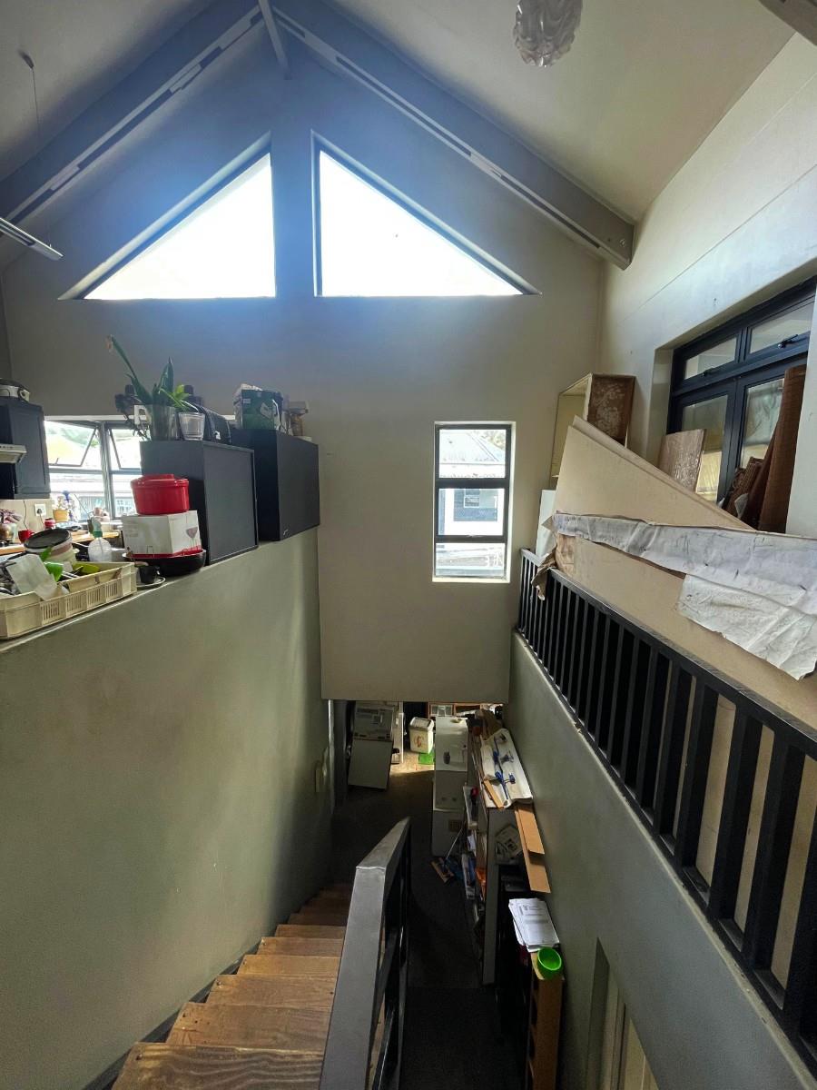 Perched higher up in Woodstock, the property enjoys sweeping views of Table Mountain and the working harbour, creating a striking backdrop for both daily living and entertaining.
