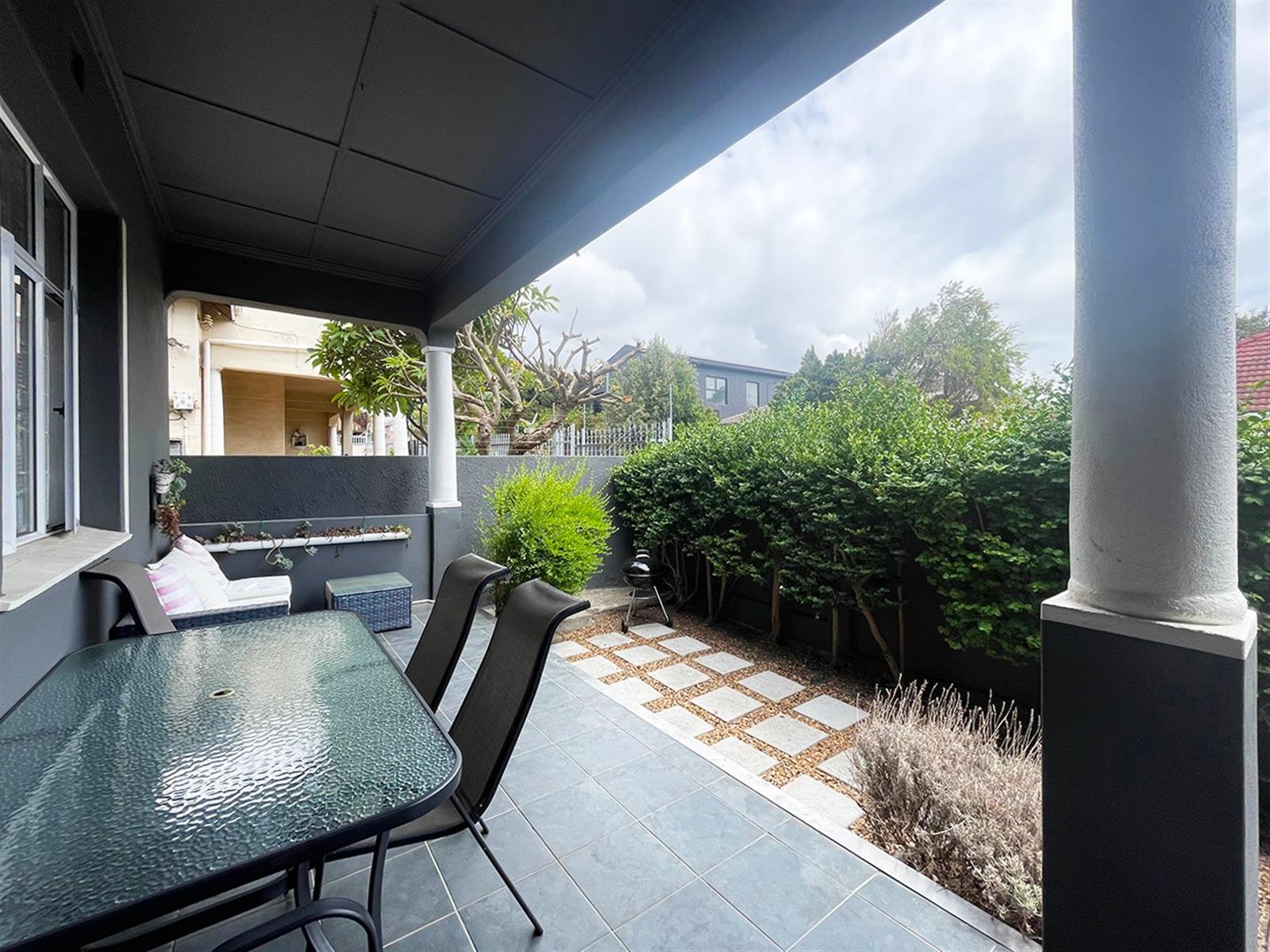 Outside, a private entertainment area offers the perfect setting for relaxed Cape Town evenings, while the double tandem garage stands out as a rare and highly sought-after feature in Woodstock — providing secure parking that adds both lifestyle ease and long-term value.