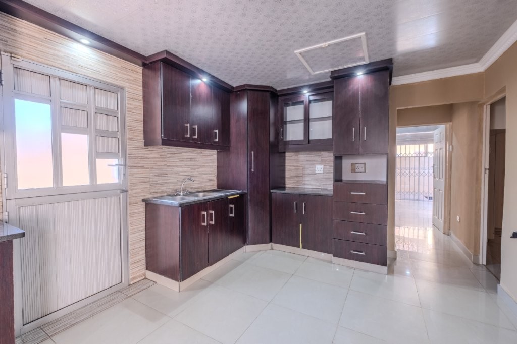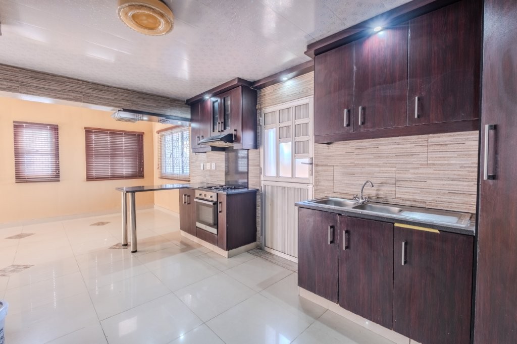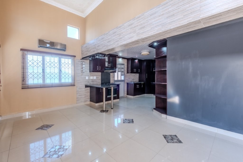 The modern kitchen features sleek granite countertops, ample cupboard space, and an electric stove—ideal for home-cooked meals and entertaining guests.