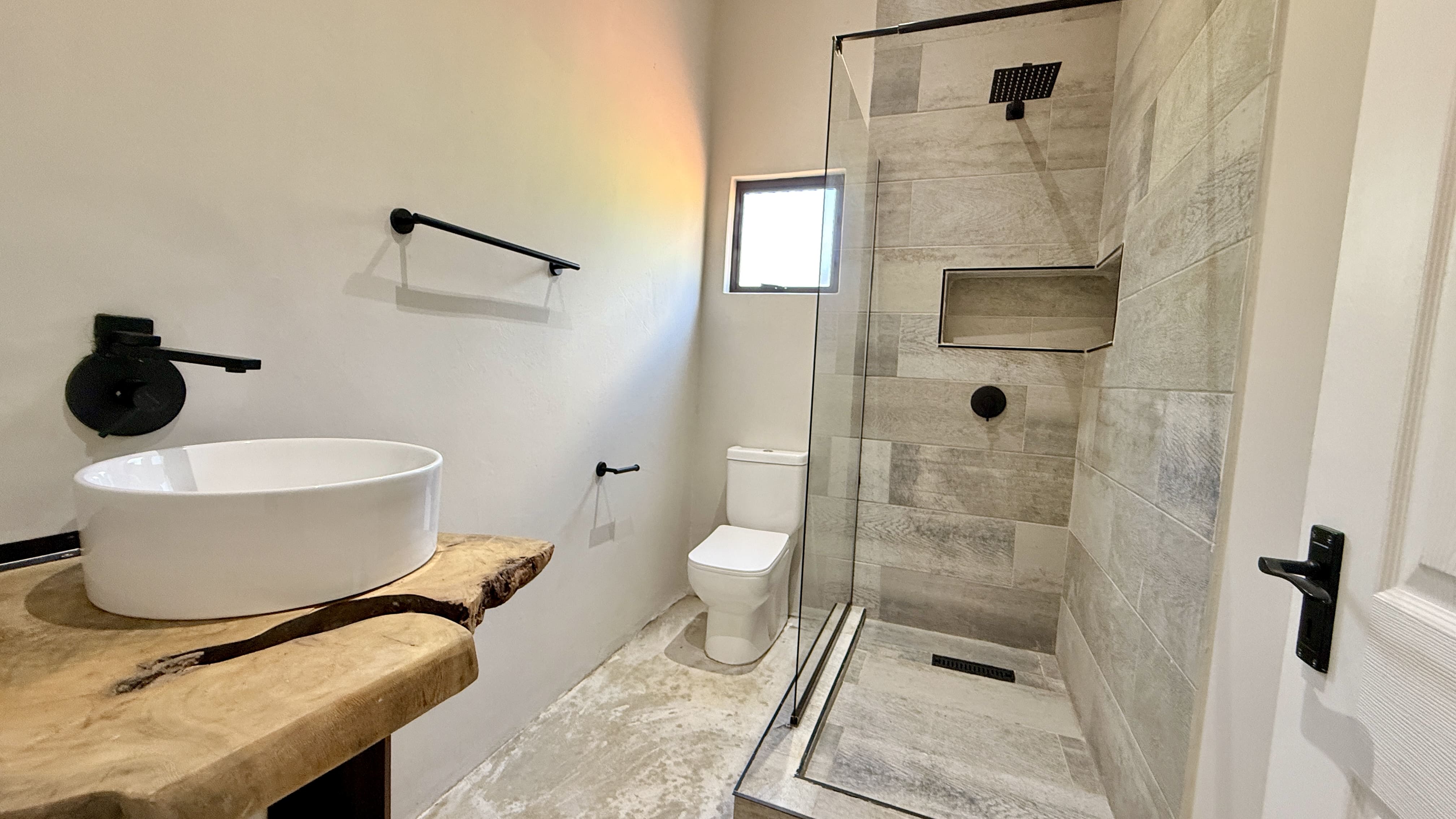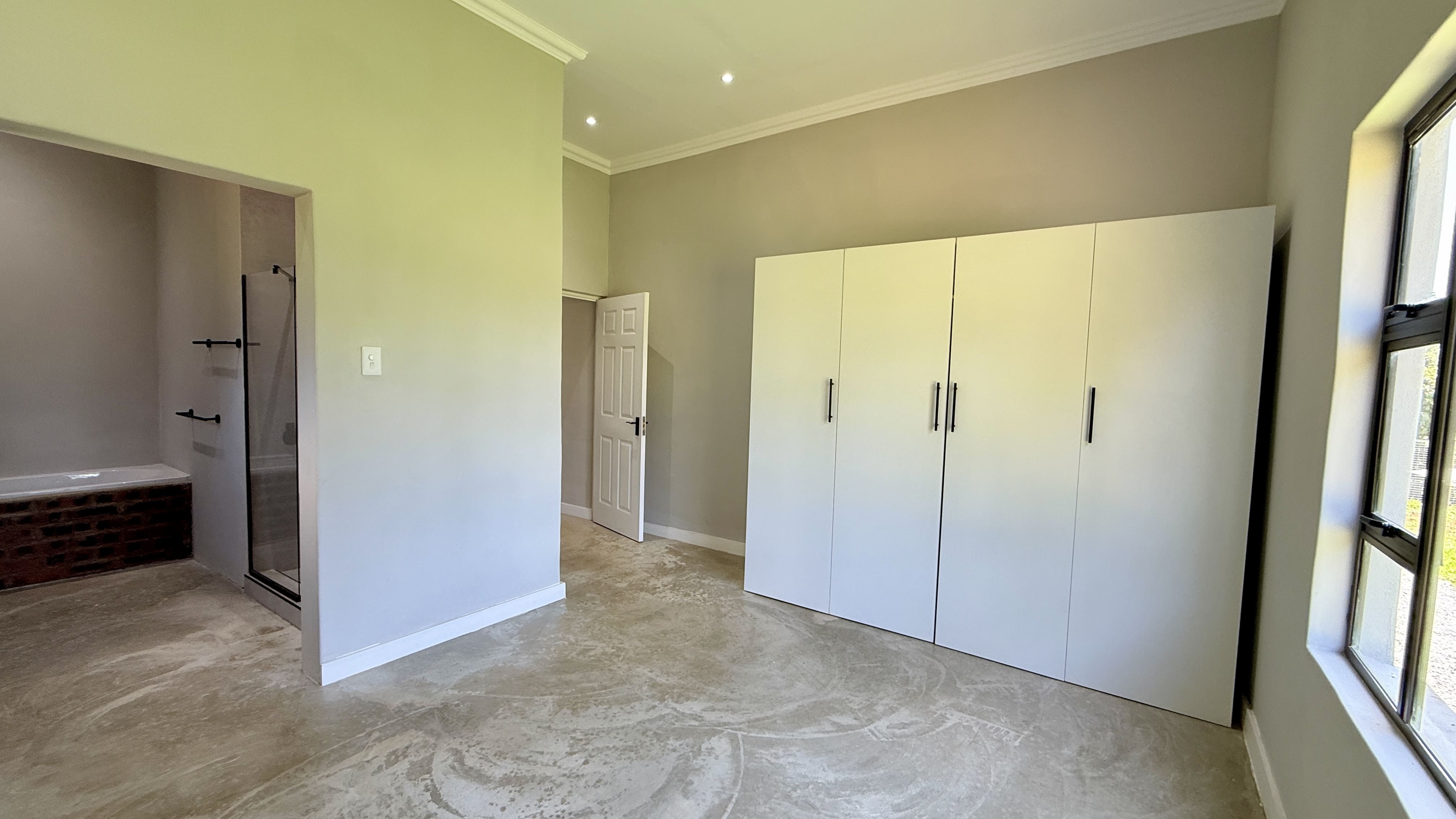 The main bedroom features a chic en-suite bathroom, while the additional two bedrooms offer versatility, ideal for family, guests, or a home office. Both bathrooms are elegantly finished, completing the home’s clean and modern aesthetic.
