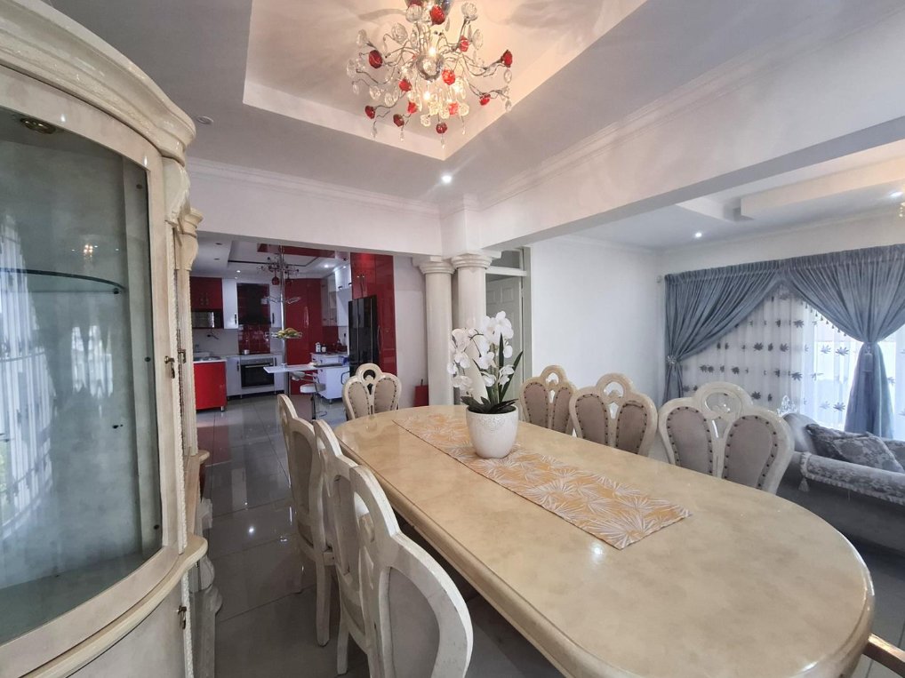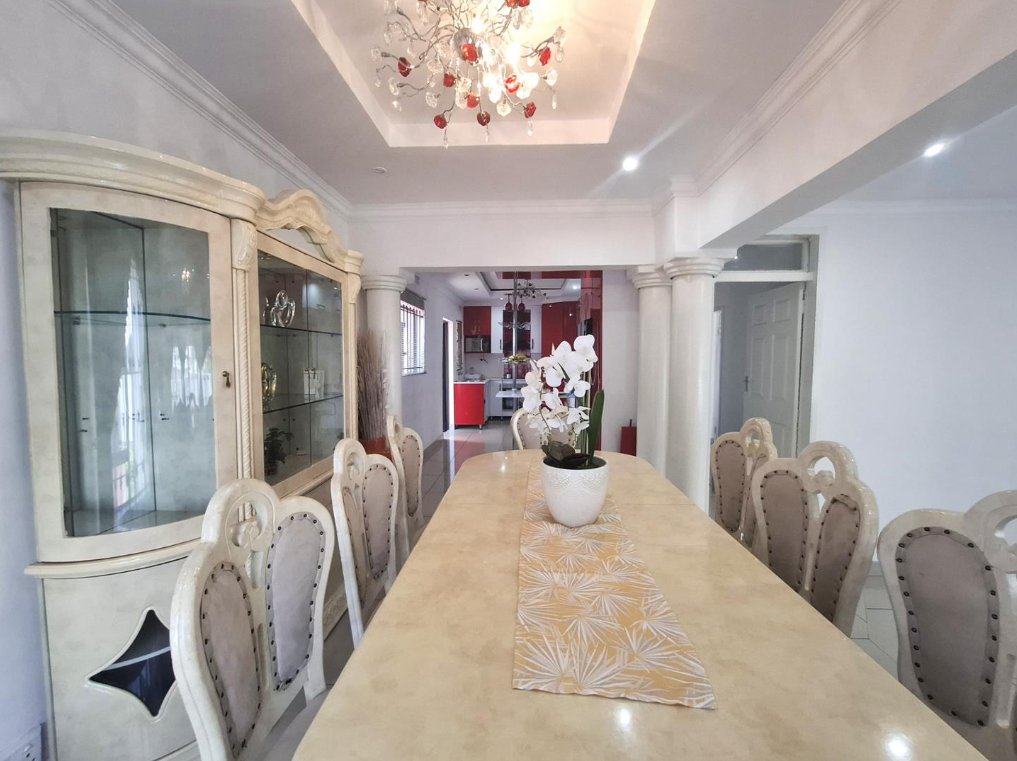 Carport accommodates 2 vehicles and there is ample space/parking for further vehicles. Beautiful entertainment area includes a built in braai. Pool in the privacy of the backyard includes a pool cover. Garden is lush and green and has been carefully planned and laid out.