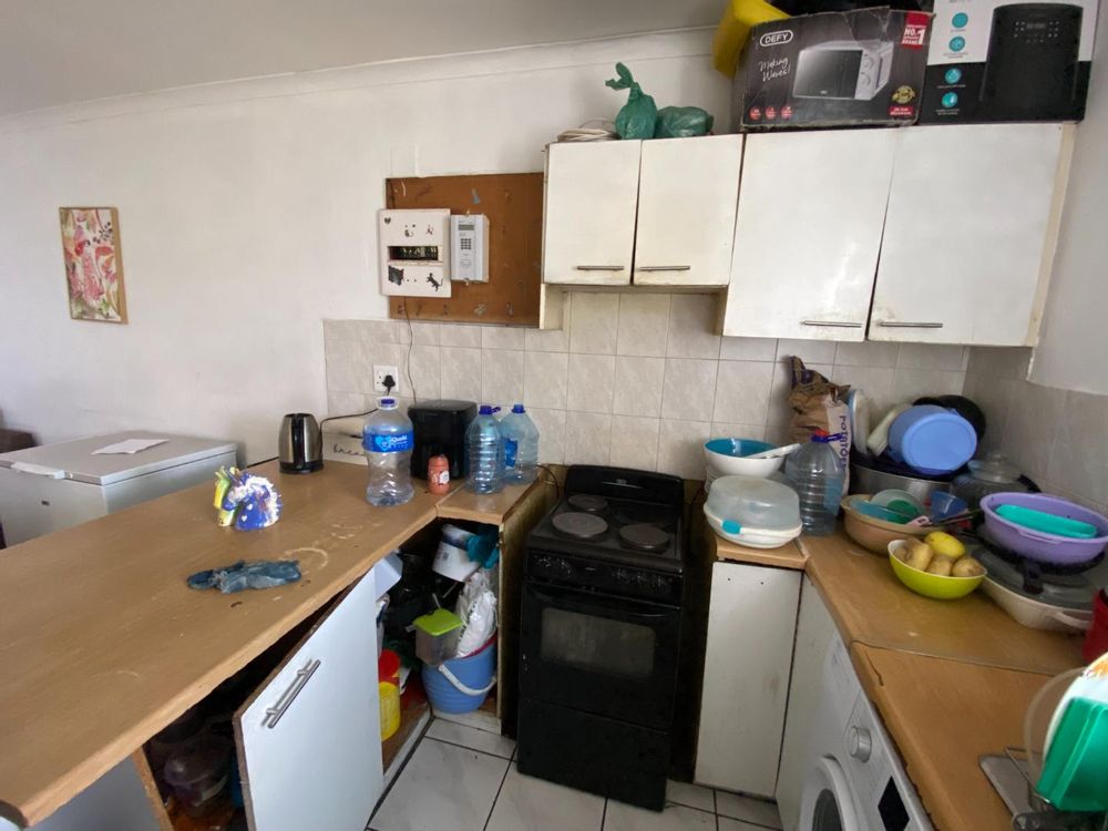 Kitchen: The open-plan kitchen, although functional, requires renovation. It features built-in cupboards for storage and offers the potential to redesign the space to suit modern needs.