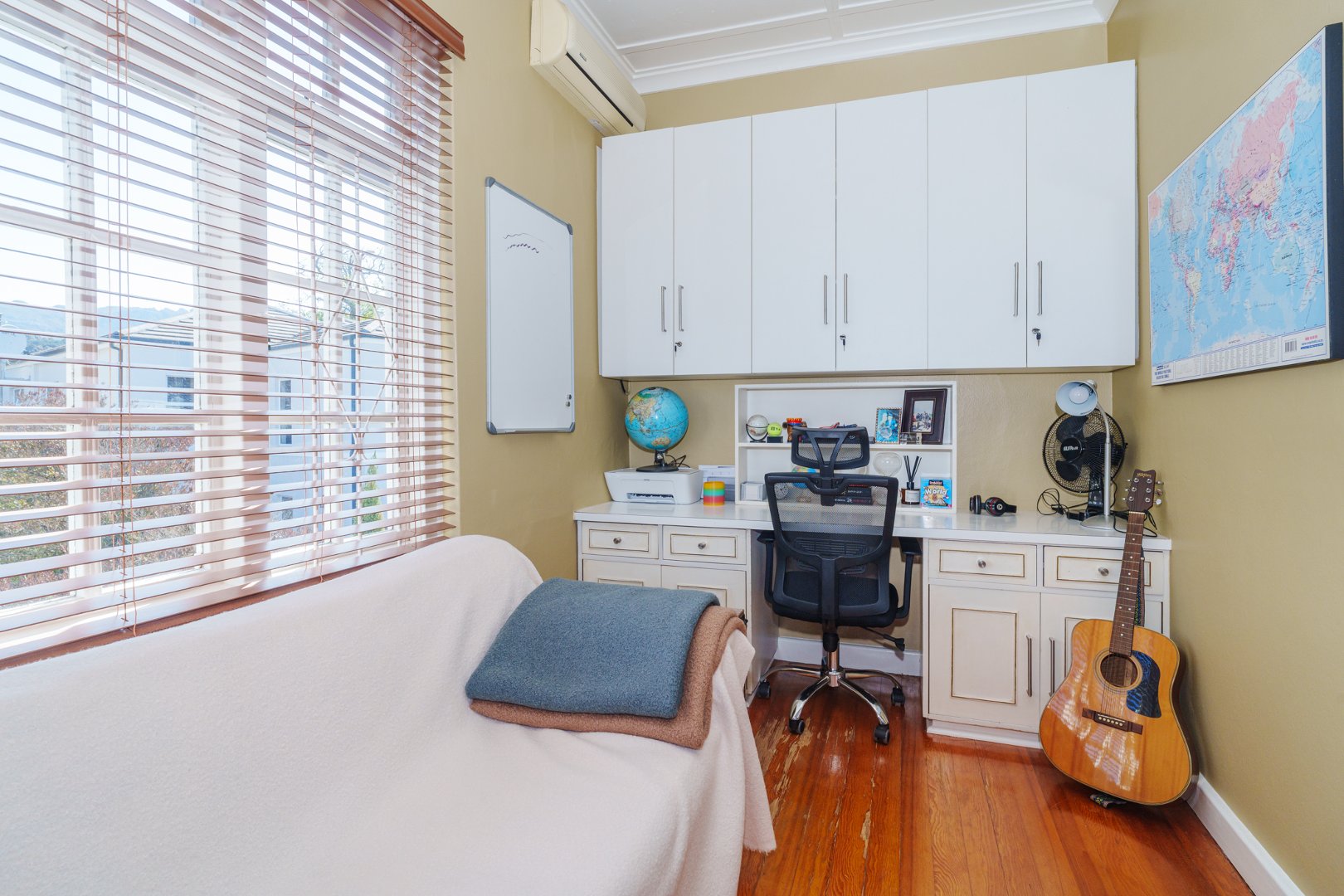- Bedroom 2 with North and East facing aspect with superb Table Mountain views overlooking Wynberg Boys' High school rugby fields