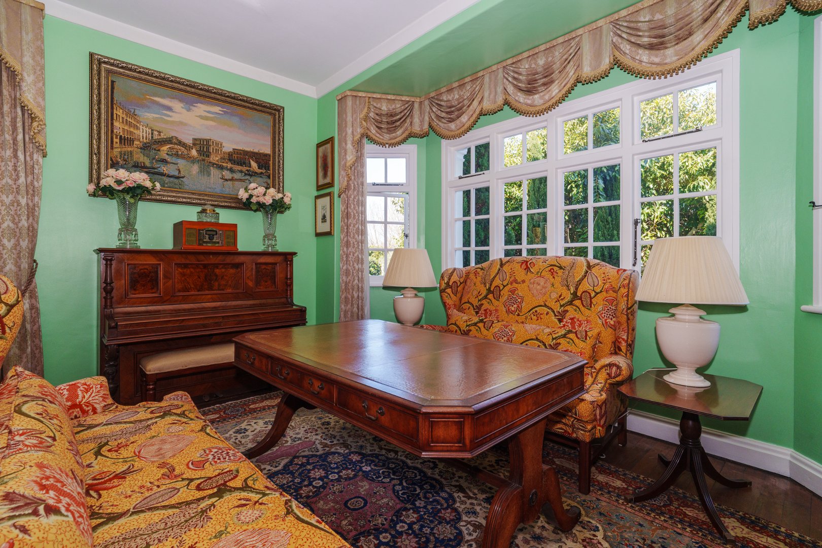 - Formal Lounge with built in fireplace and stack back doors to North-facing terrace overlooking large pool;
