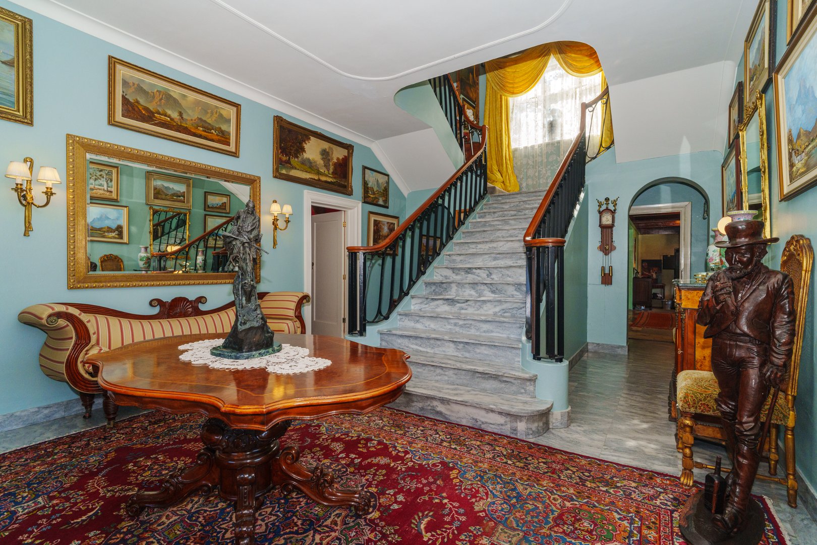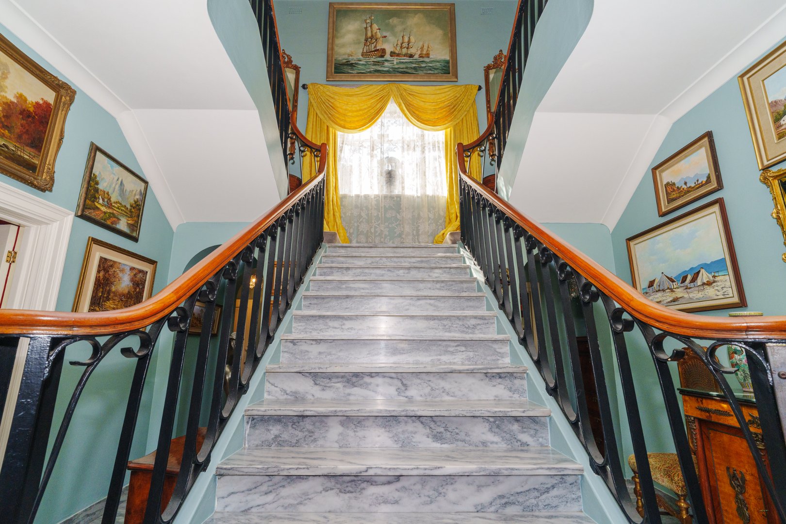 - Grand entrance hall with bi-fold staircase tiled in imported Italian Marble;