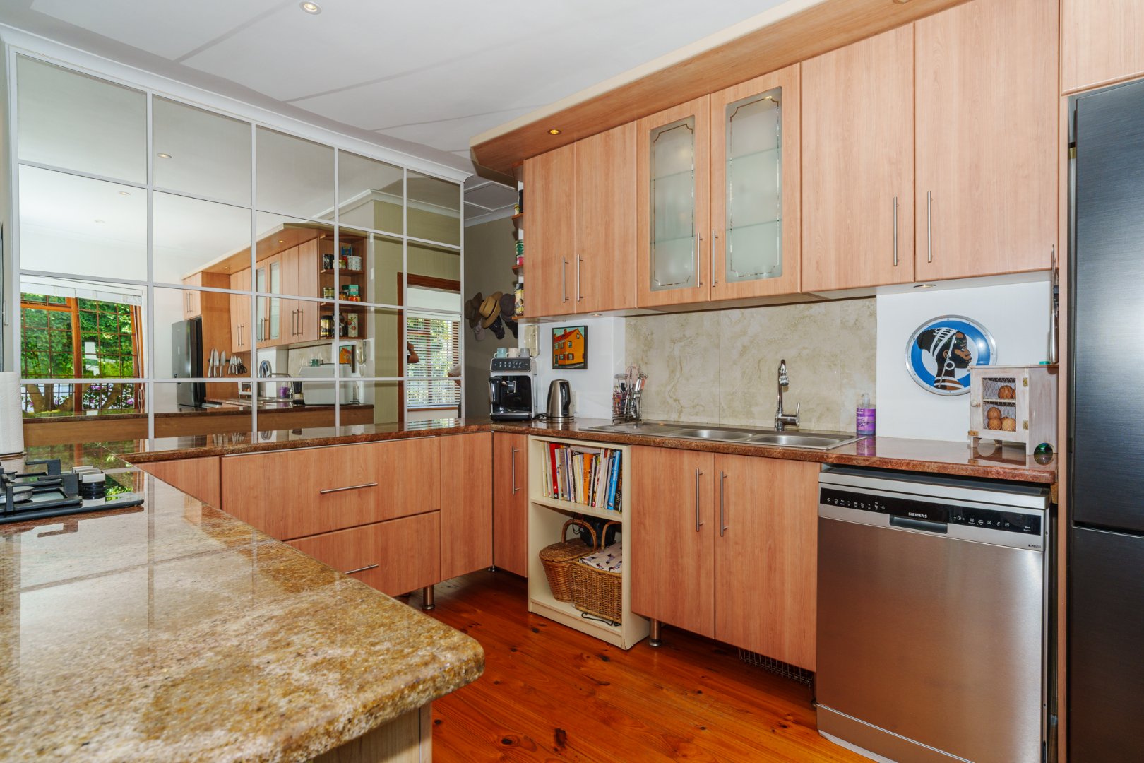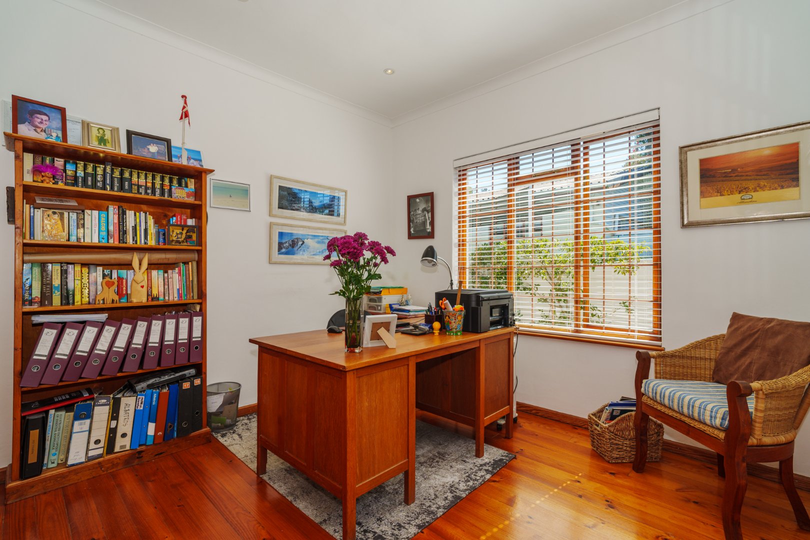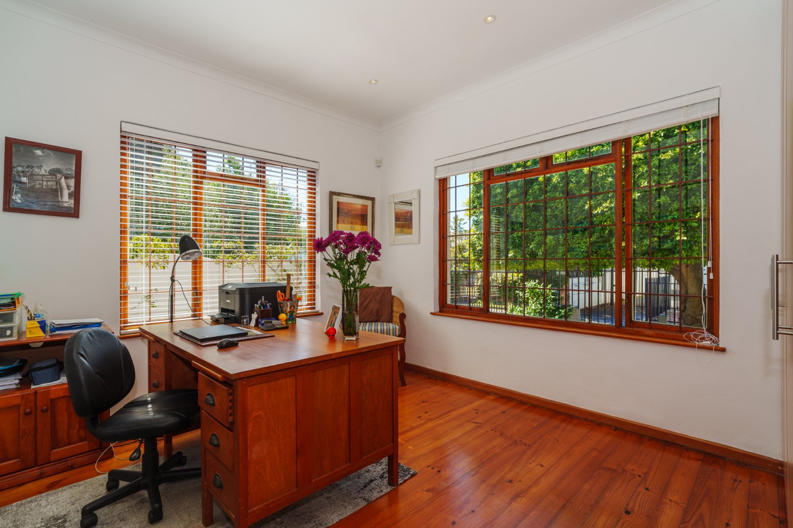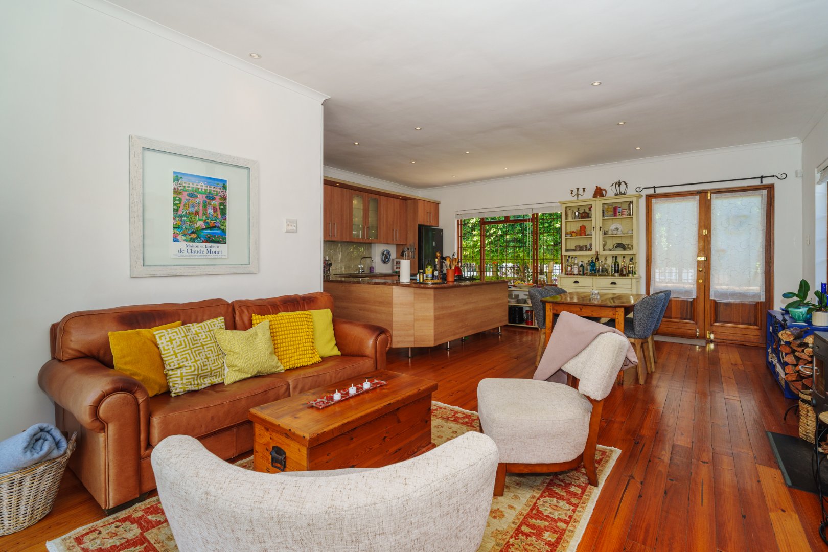 Set on a generous 446 sqm erf, the home welcomes you with rich Oregon Pine floors underfoot and an open-plan kitchen, dining, and lounge that flows with ease—perfect for visual connection and communal living. Every space is thoughtfully laid out, echoing the clarity and warmth we value in every home.