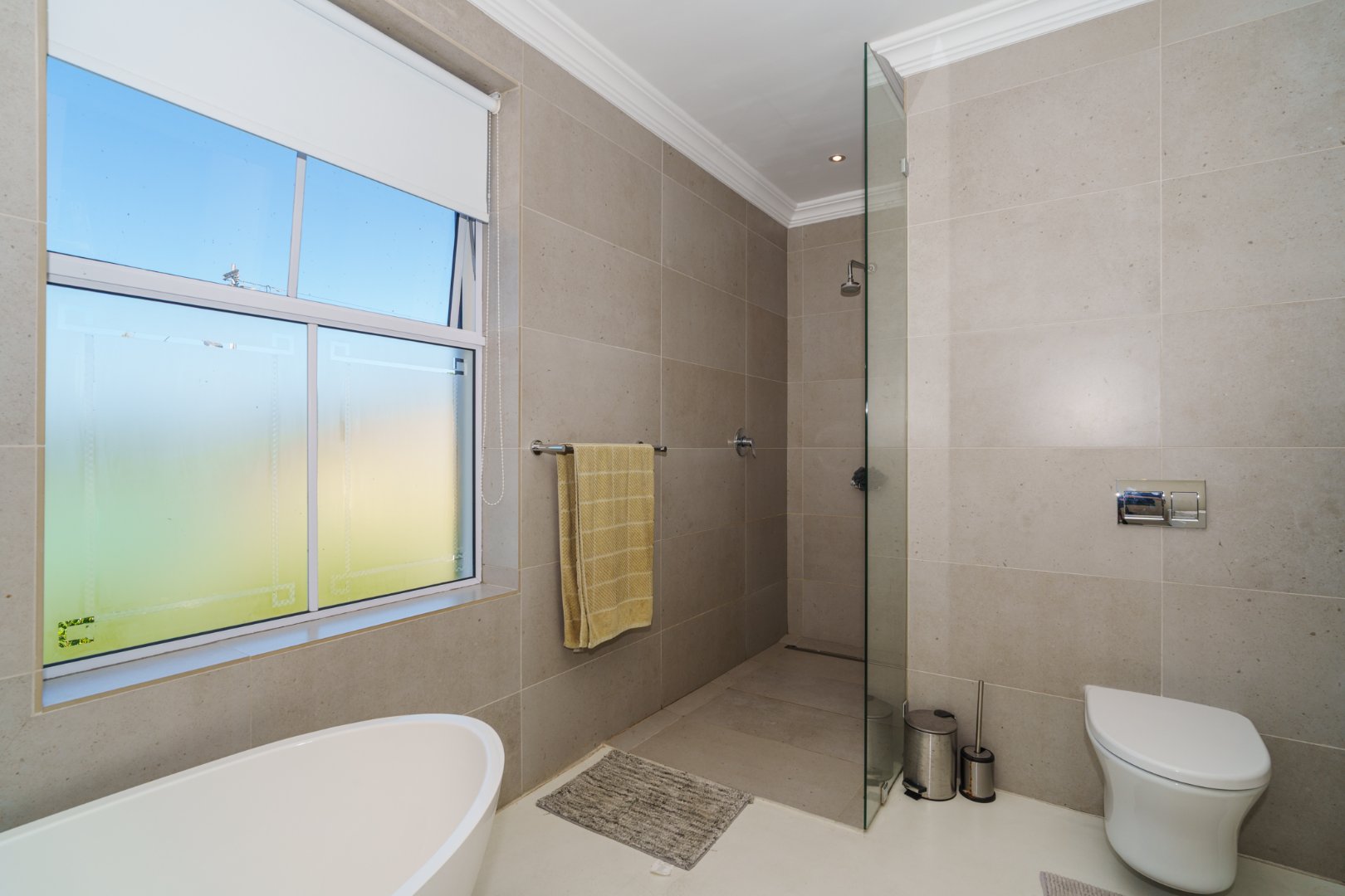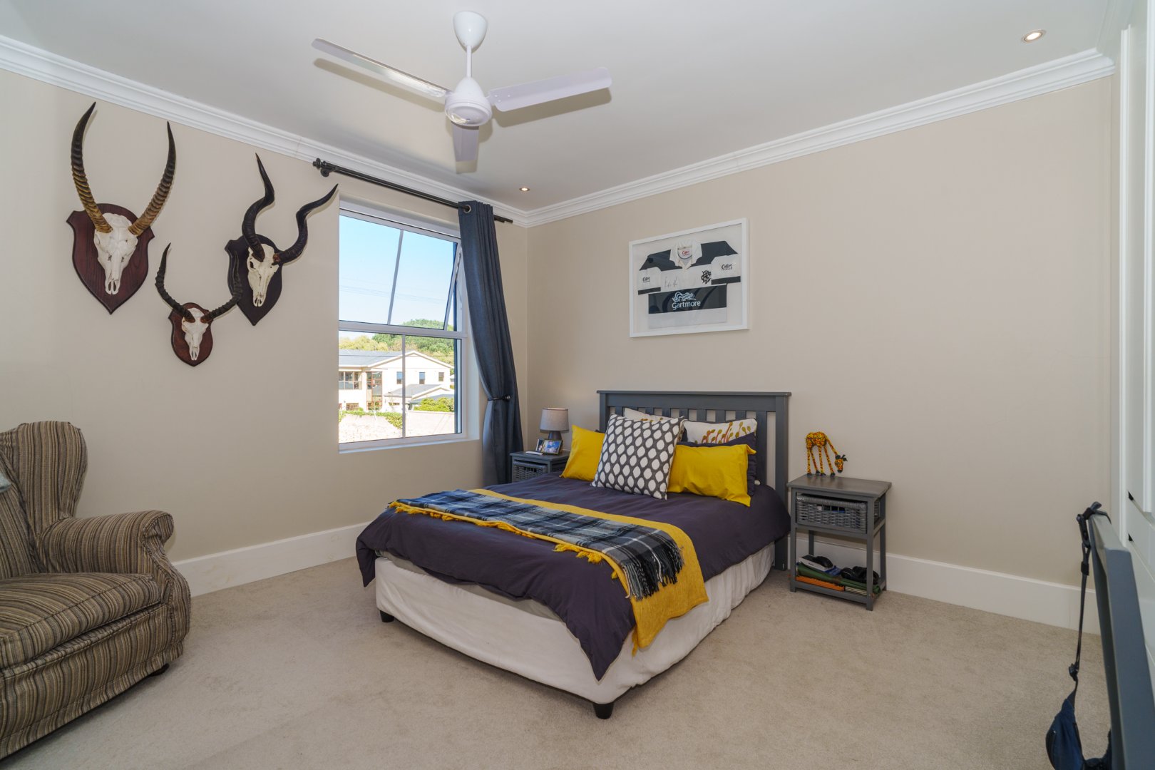 Practical and energy-efficient, the home includes a 5KVA inverter and 2 x 5KVA lithium-ion batteries, a heat pump-fed geyser, and a double garage with two visitor bays for added convenience.