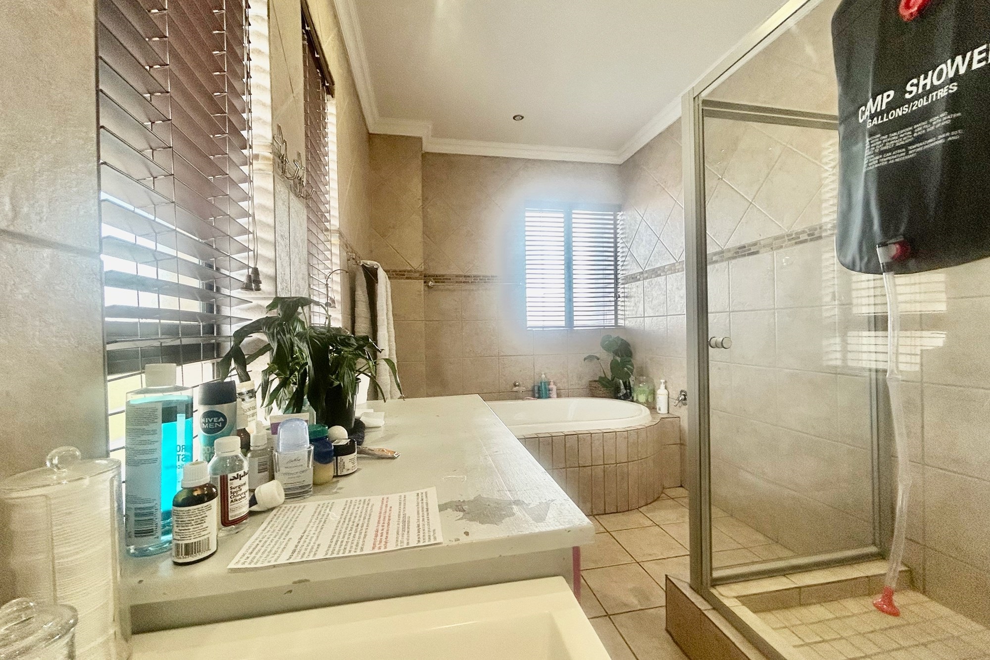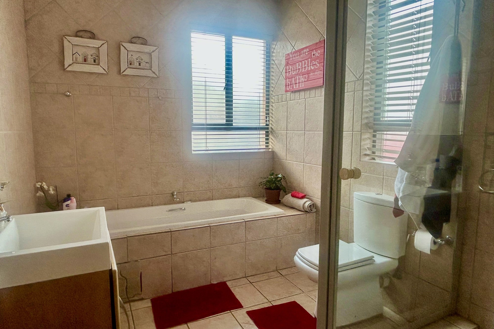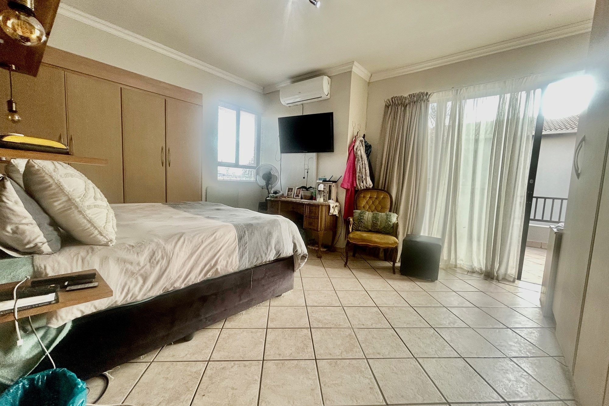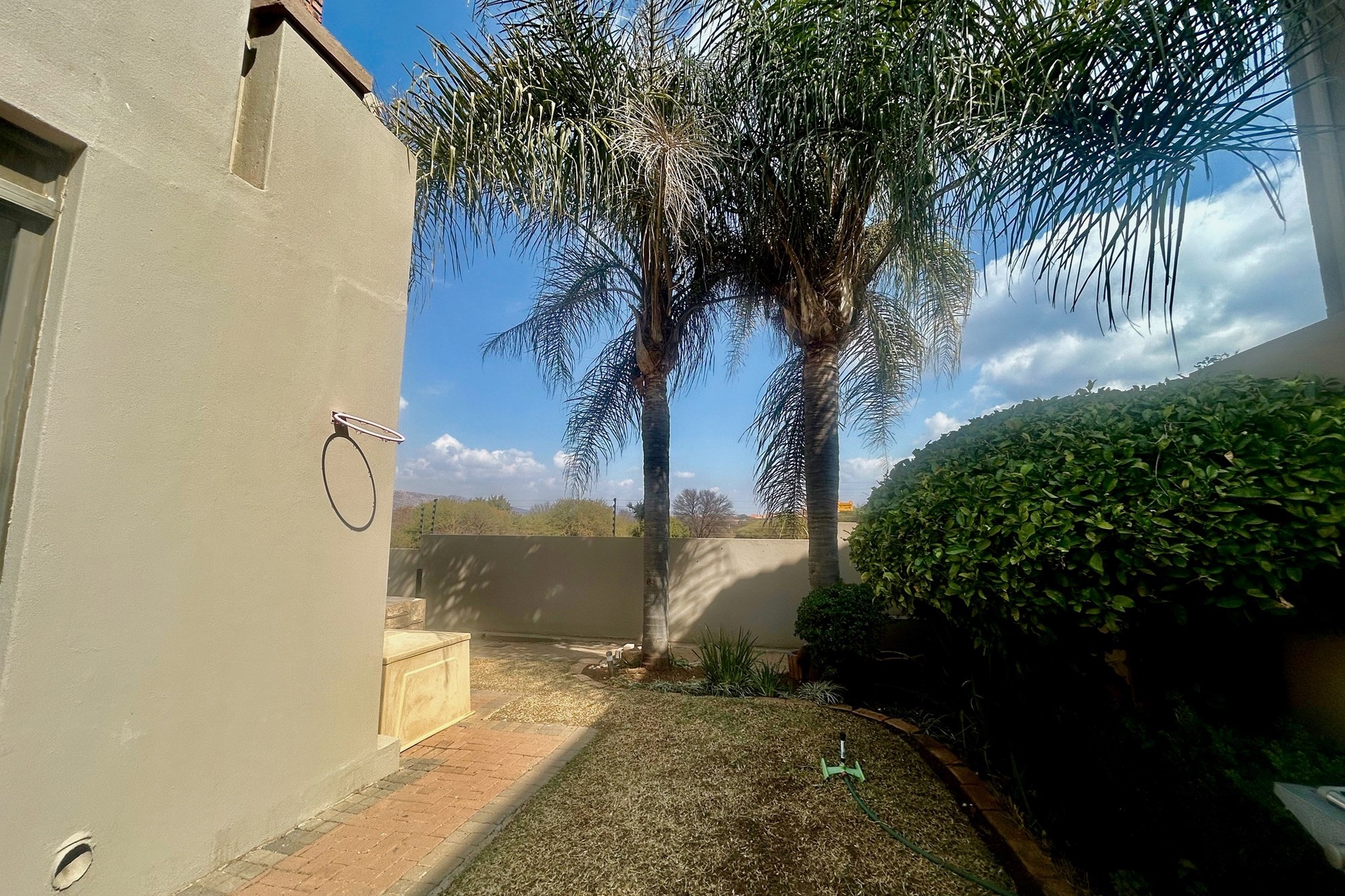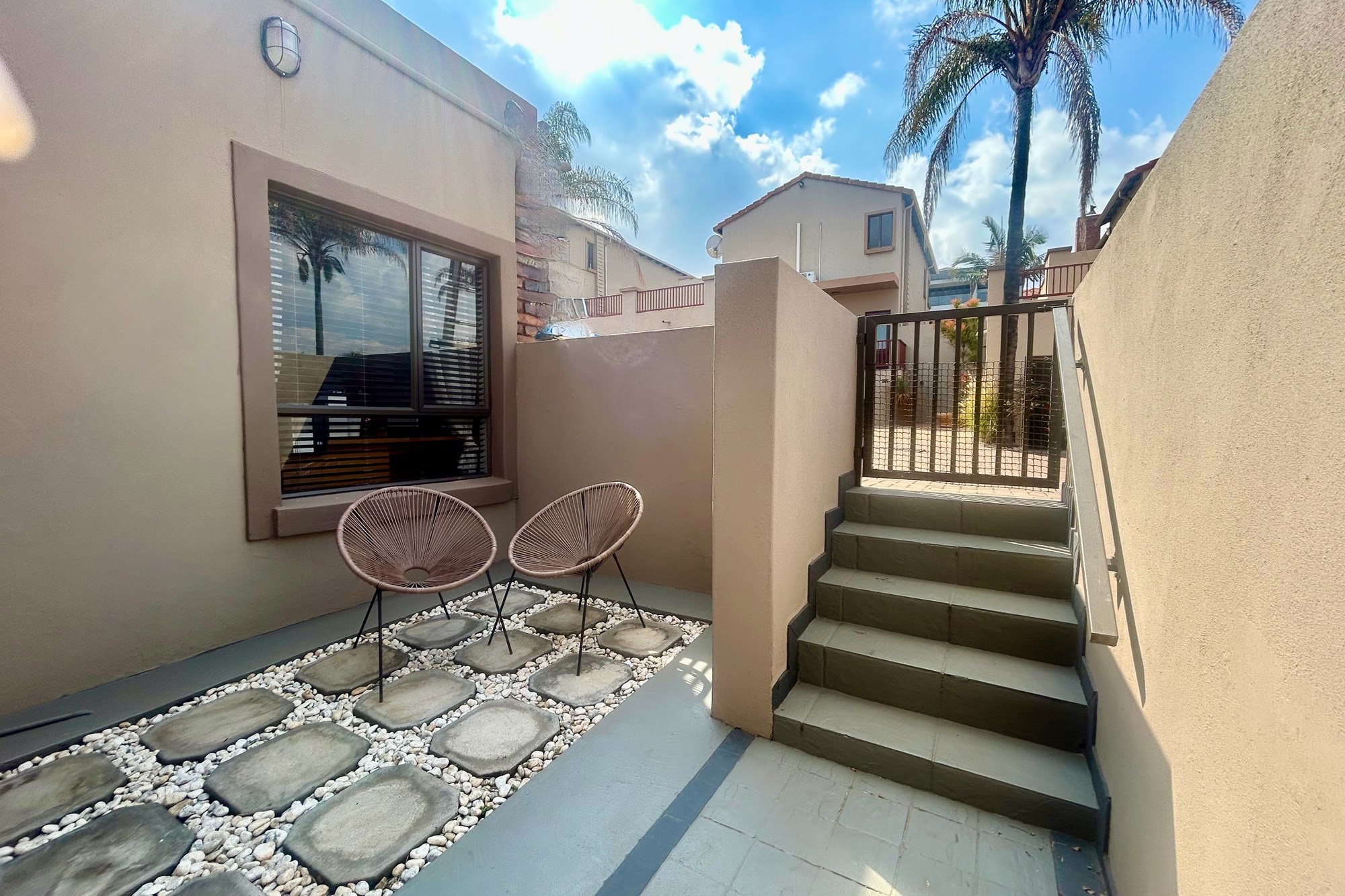 All three bedrooms walks out on a lovely big balcony overlooking the private garden with splash pool and braai-areas.