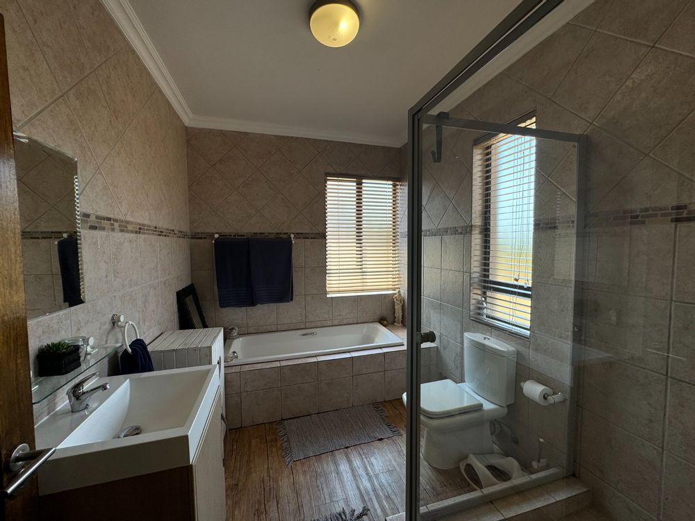 Interior Highlights: As you step inside, you'll be greeted by a spacious open-plan living area that seamlessly integrates a cozy braai area, perfect for family gatherings and entertaining friends. The contemporary kitchen features an efficient scullery, providing ample storage and workspace. A convenient guest toilet and under-stair storage enhance the functionality of the ground floor.