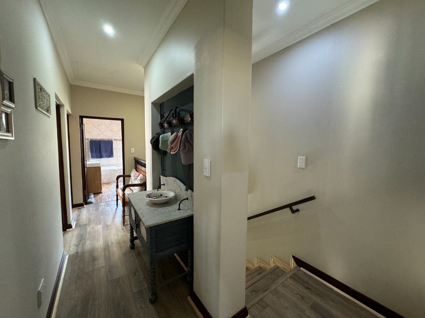 Interior Highlights: As you step inside, you'll be greeted by a spacious open-plan living area that seamlessly integrates a cozy braai area, perfect for family gatherings and entertaining friends. The contemporary kitchen features an efficient scullery, providing ample storage and workspace. A convenient guest toilet and under-stair storage enhance the functionality of the ground floor.