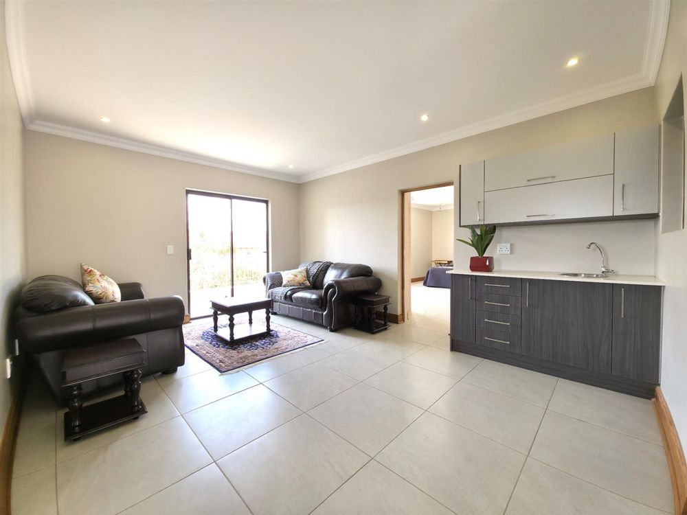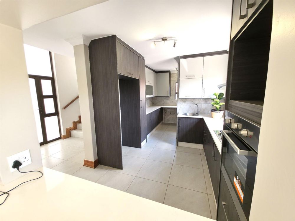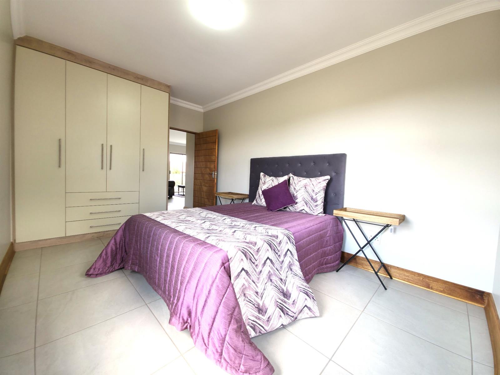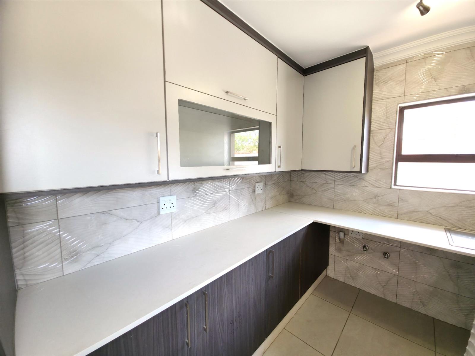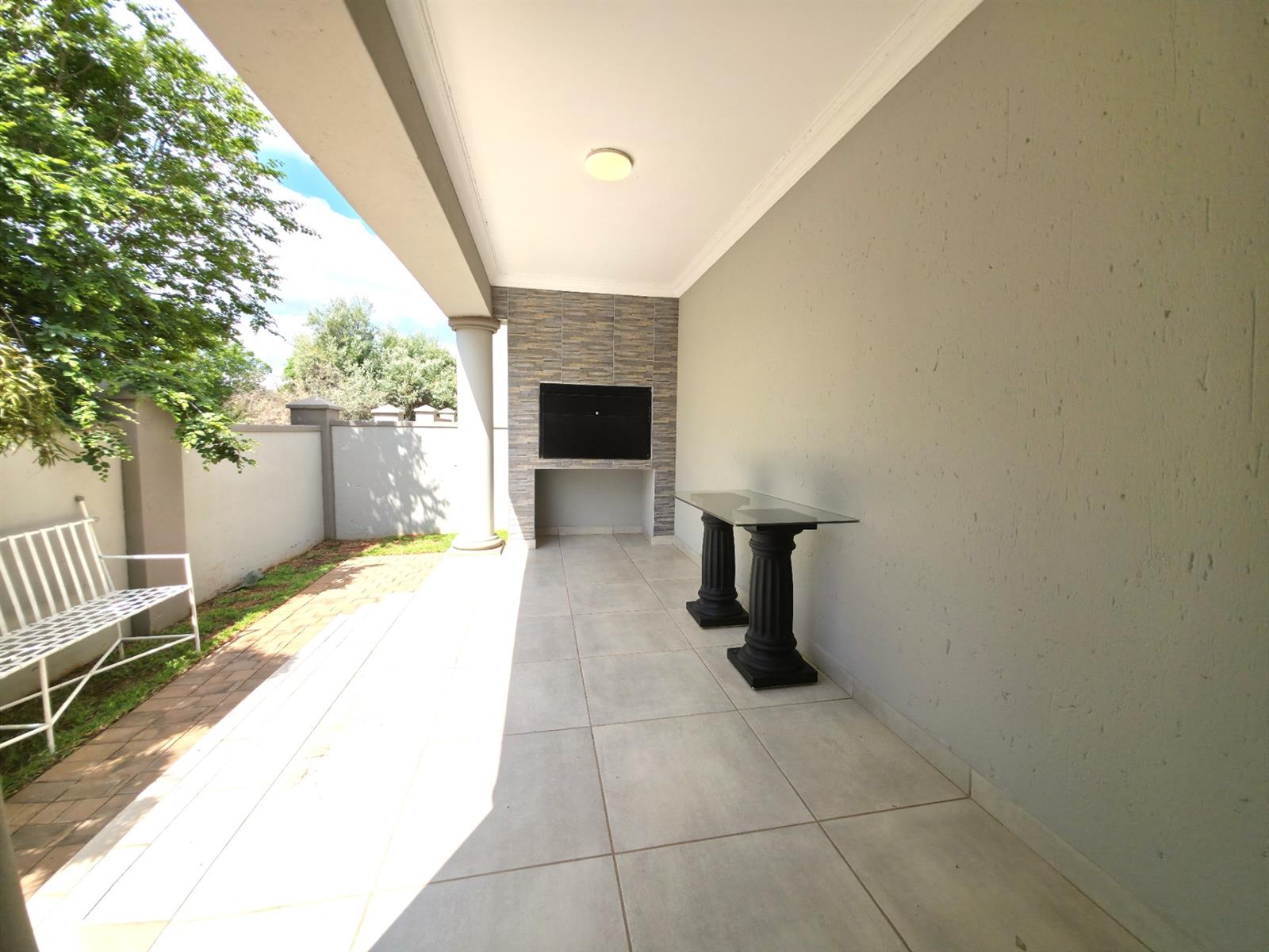 Step inside and be welcomed by sun-filled, open-plan living spaces that flow seamlessly from the sleek, modern kitchen – complete with a separate scullery/laundry – into the dining and living areas. Stacking doors open onto a covered patio with a built-in braai, ideal for year-round entertaining against the serene backdrop of the estate. A guest toilet completes the ground floor, while direct access from the double garage ensures convenience.