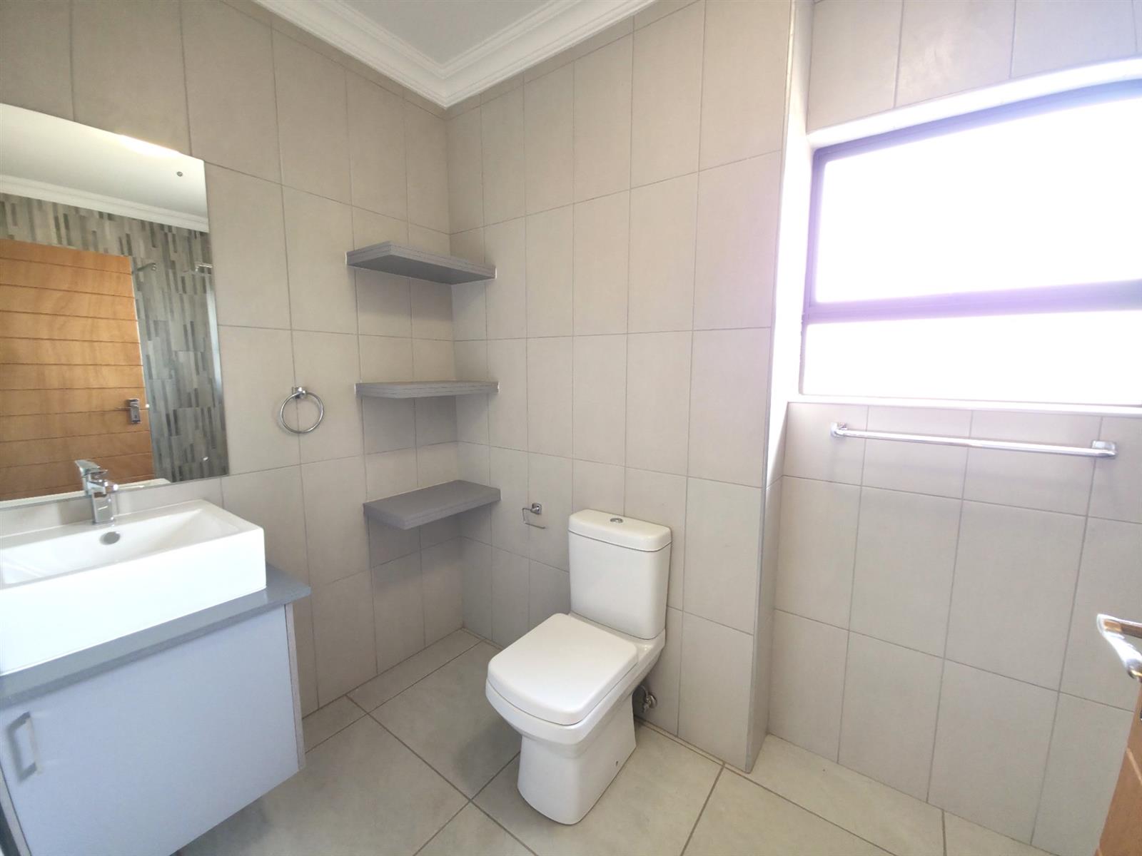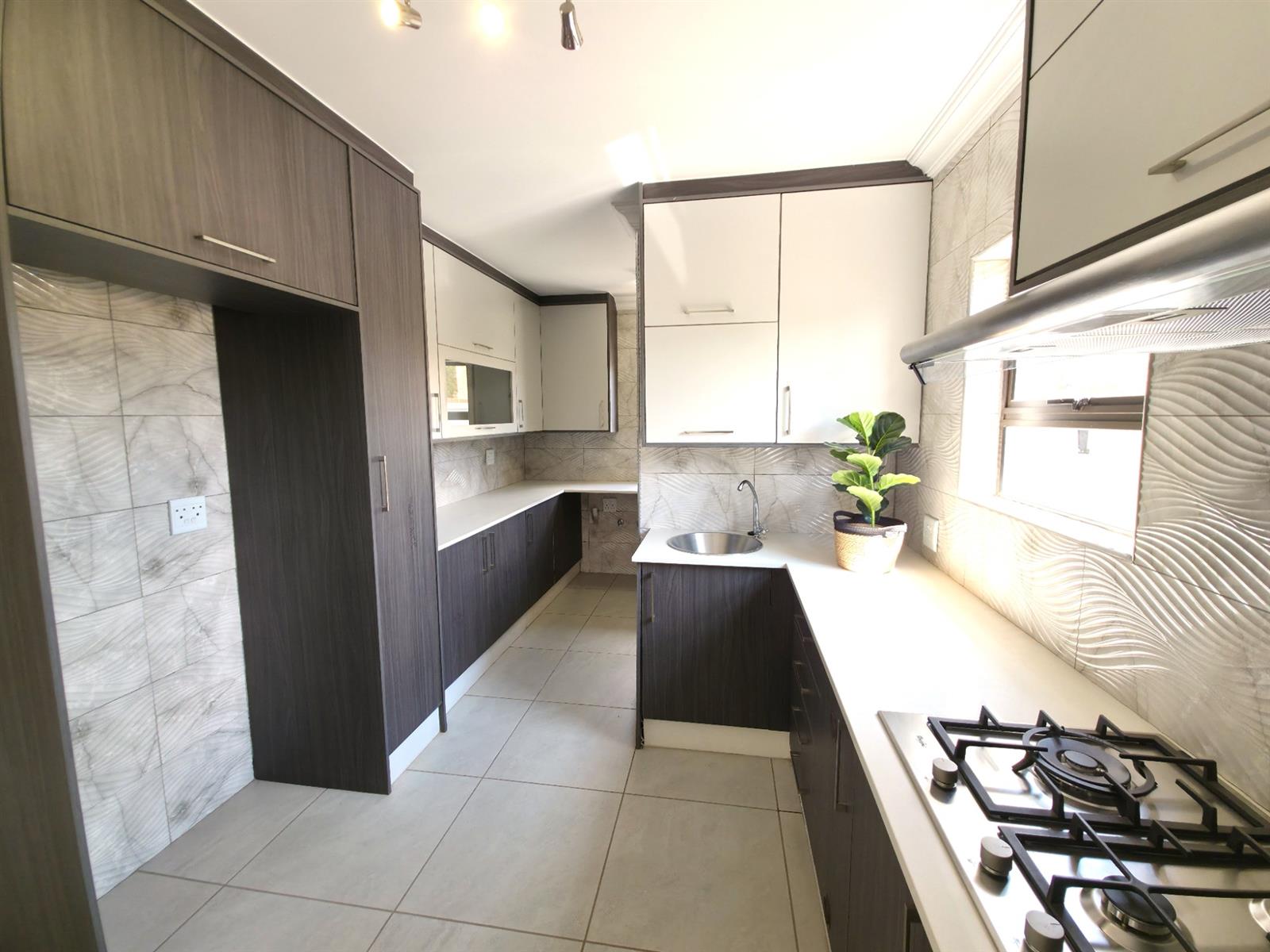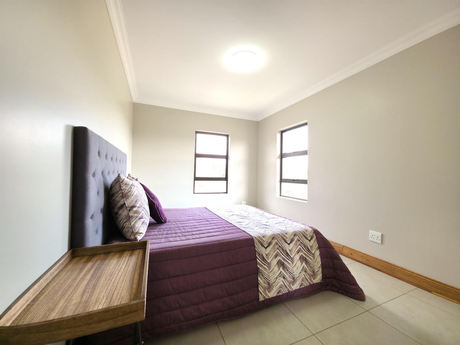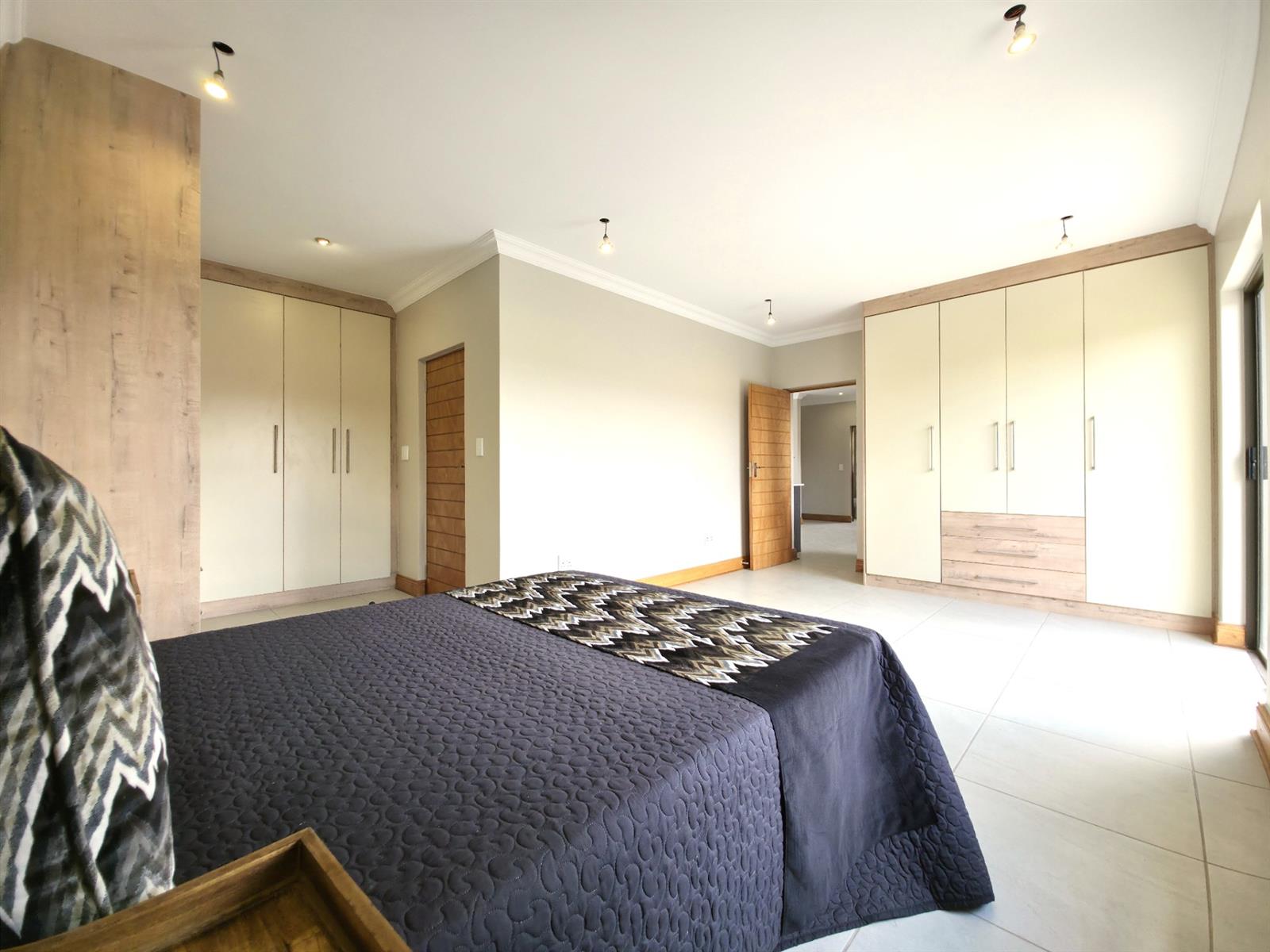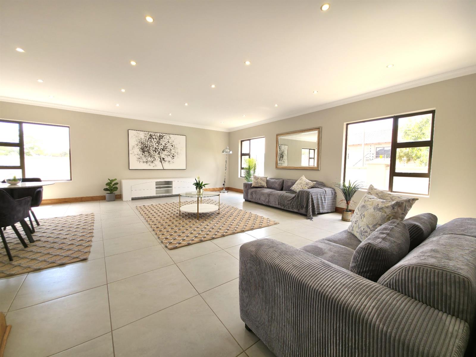 Step inside and be welcomed by sun-filled, open-plan living spaces that flow seamlessly from the sleek, modern kitchen – complete with a separate scullery/laundry – into the dining and living areas. Stacking doors open onto a covered patio with a built-in braai, ideal for year-round entertaining against the serene backdrop of the estate. A guest toilet completes the ground floor, while direct access from the double garage ensures convenience.