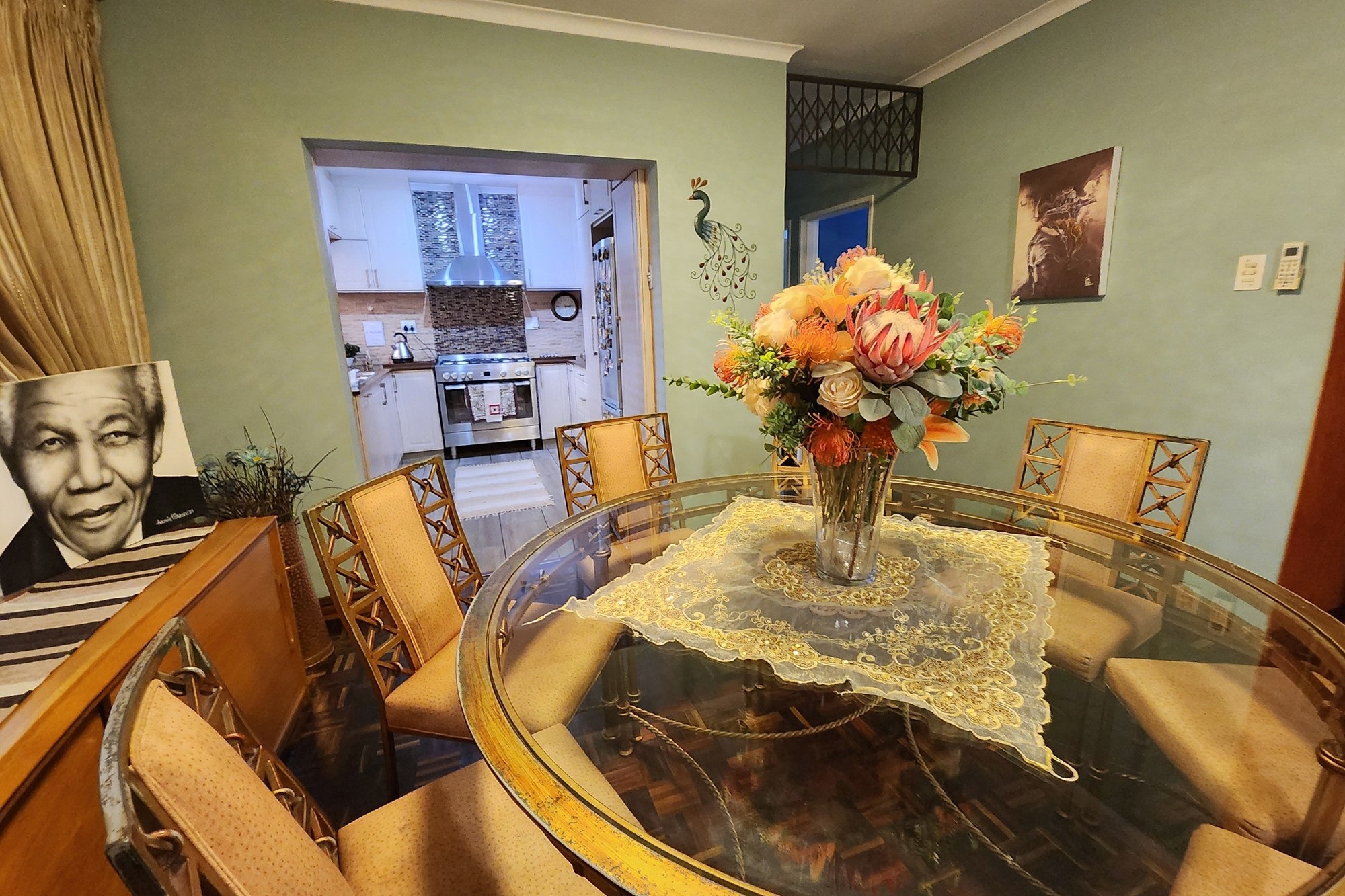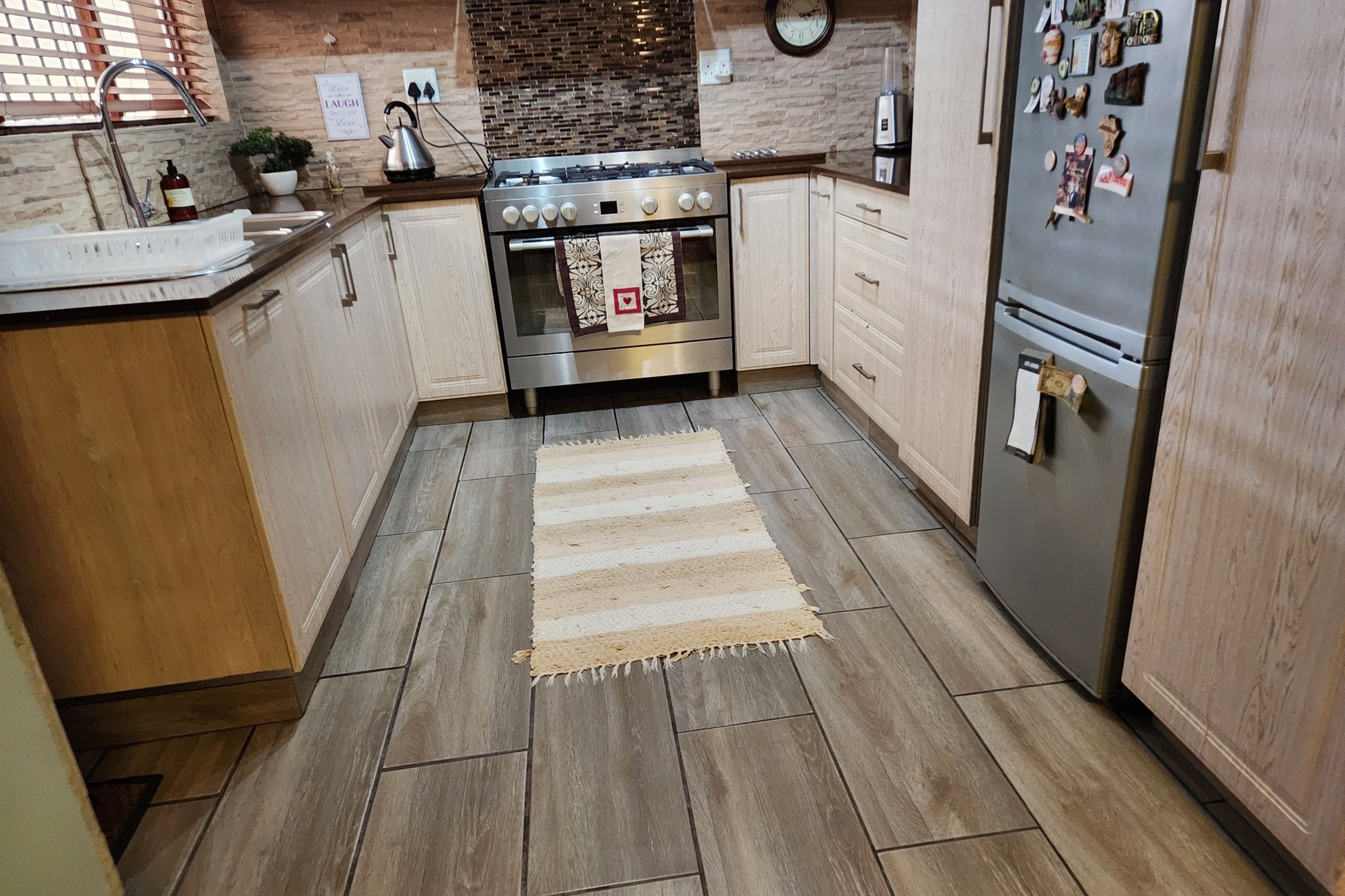 Step into the expansive, three bedroom house fully tiled lounge perfect setting for both relaxing evenings with two lounges the other set TV room for family gatherings. The open-plan layout flows into the other lounge area., Separate dining room that leads into a modern kitchen that’s fully fitted and ready for you to cook up a storm fitted with gas stove.
