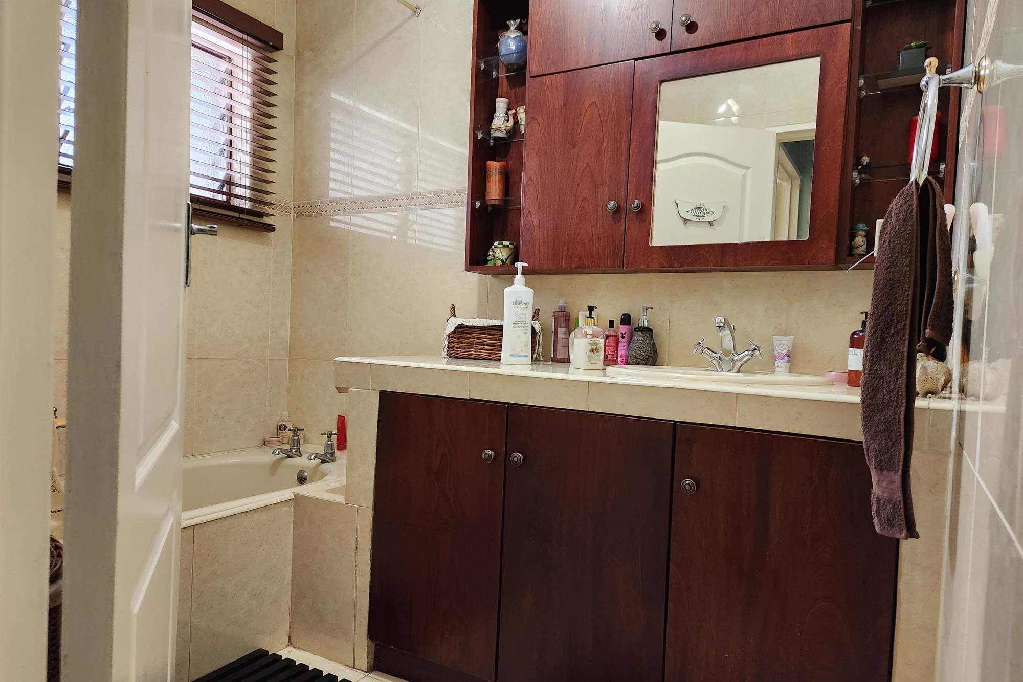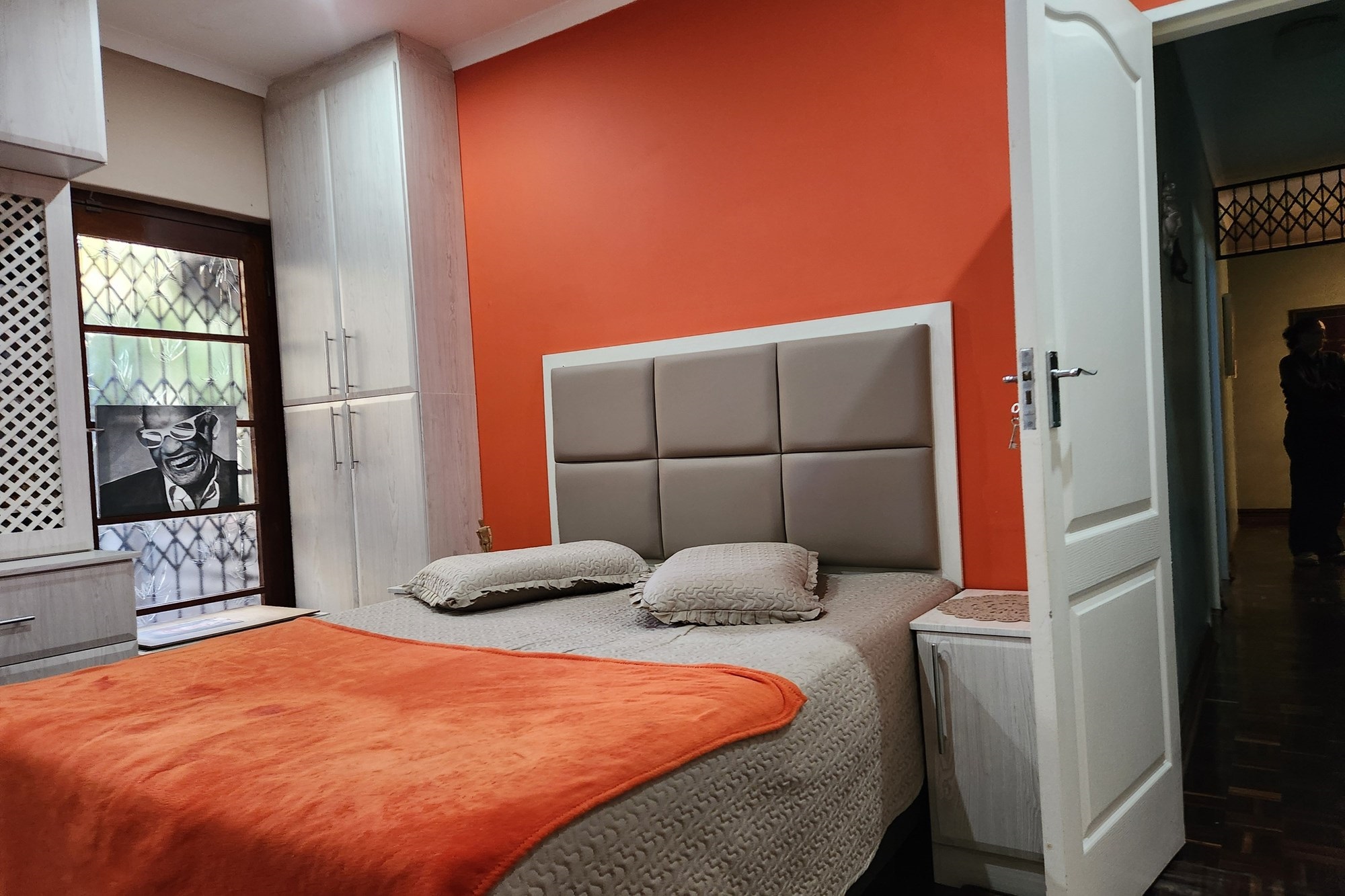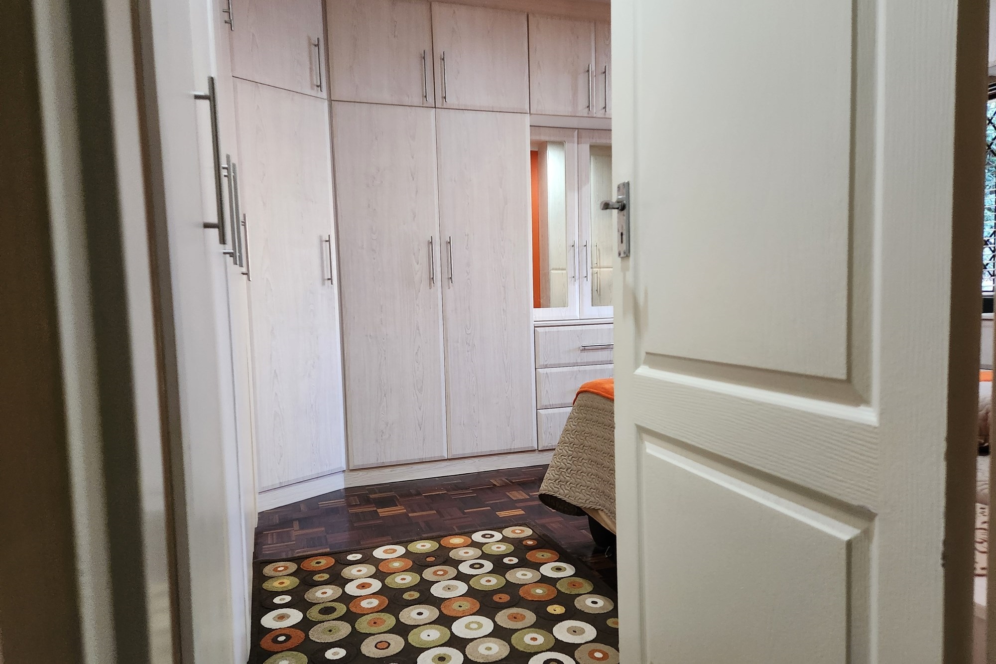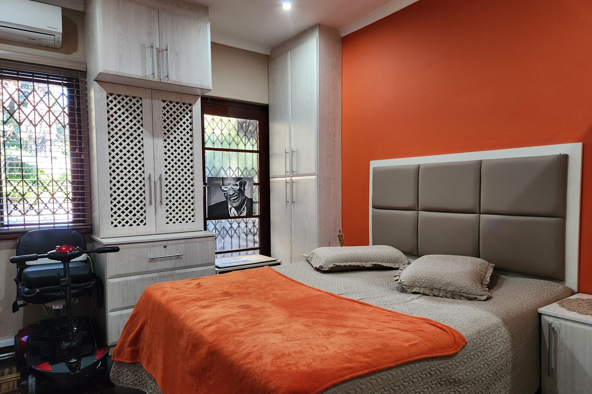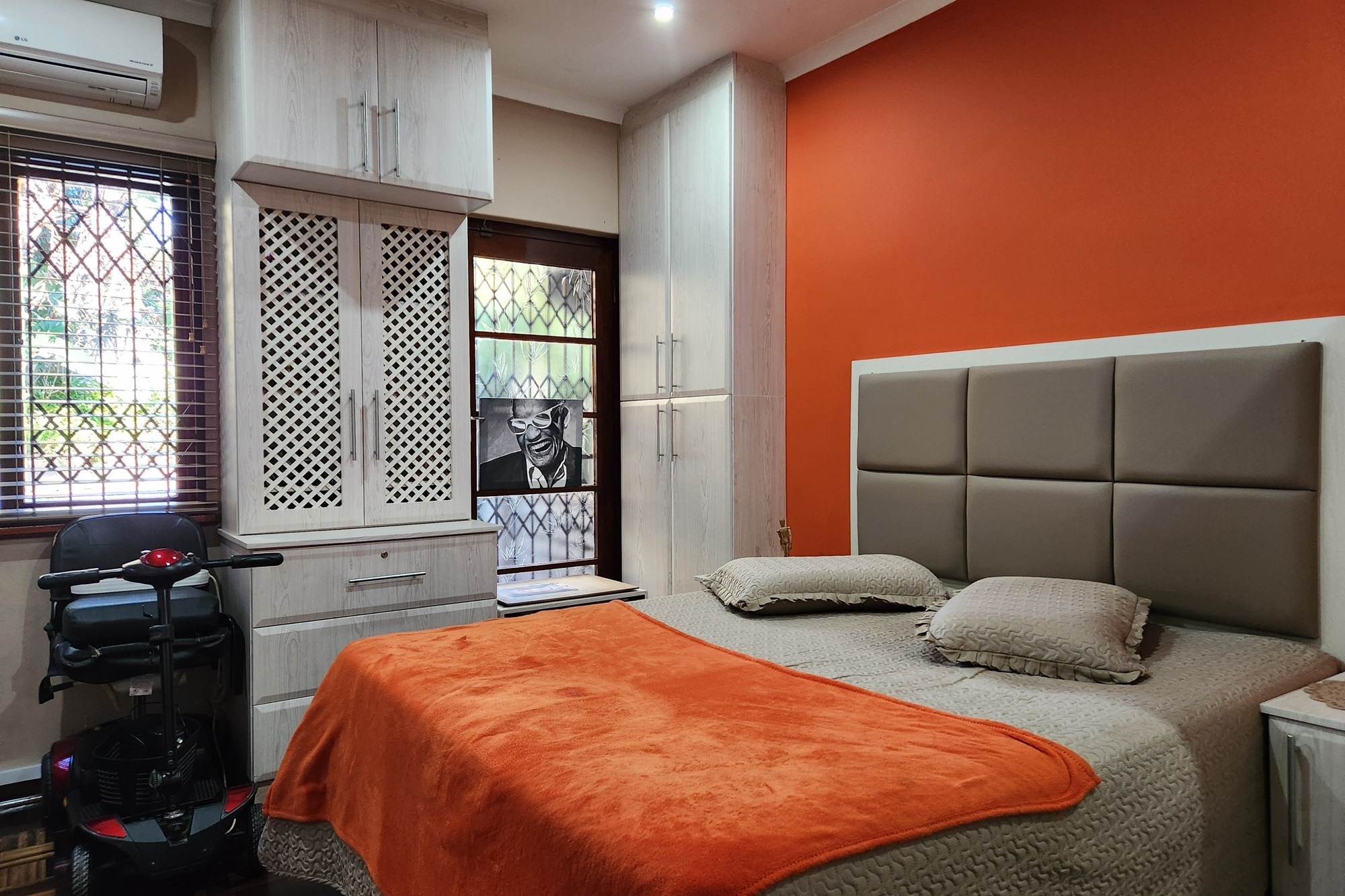 The three generously sized bedrooms, all beautifully fitted with built-in cupboards. The luxurious main bedroom boasts a full ensuite with shower and also the private entrance from the pool and garden .