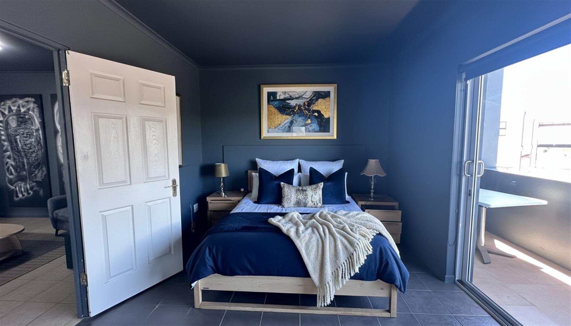 Step into a space where contemporary design meets coastal tranquility. This apartment features a sophisticated, moody palette of charcoal walls and sleek finishes, creating a dramatic and luxurious atmosphere that is perfectly balanced by the natural light of the West Coast.