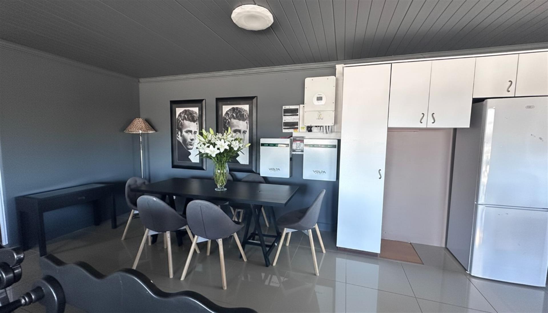 Step through large sliding glass doors onto an expansive wooden deck. This elevated outdoor space is perfect for alfresco dining while taking in the iconic ocean views and fresh Atlantic air that Yzerfontein is famous for.