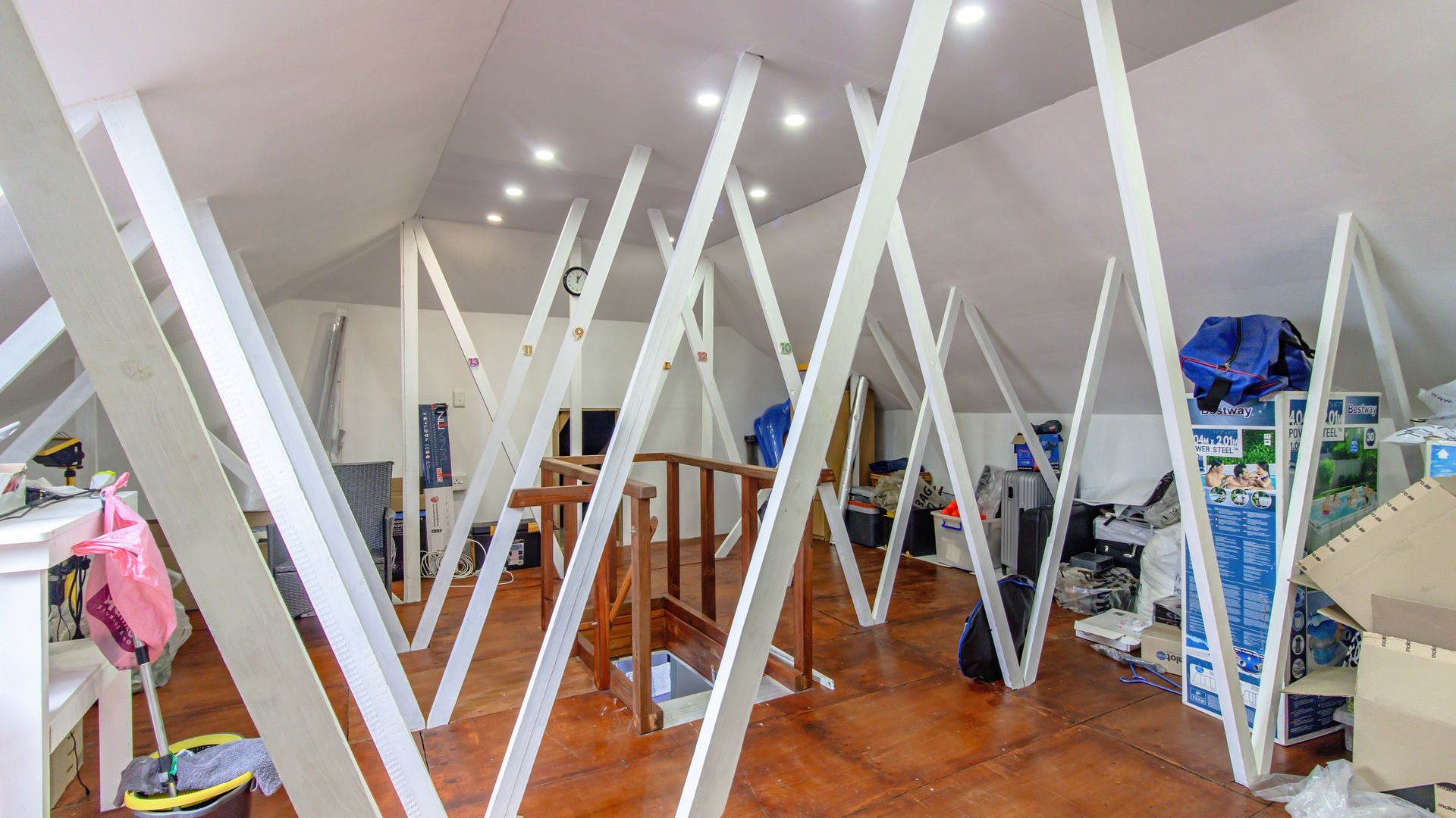 Accommodation includes one ground-floor en-suite bedroom with private entrance, three upstairs bedrooms and two bathrooms, including a luxurious main en-suite, plus a loft (7.4 m x 6.8 m) for storage or future conversion.