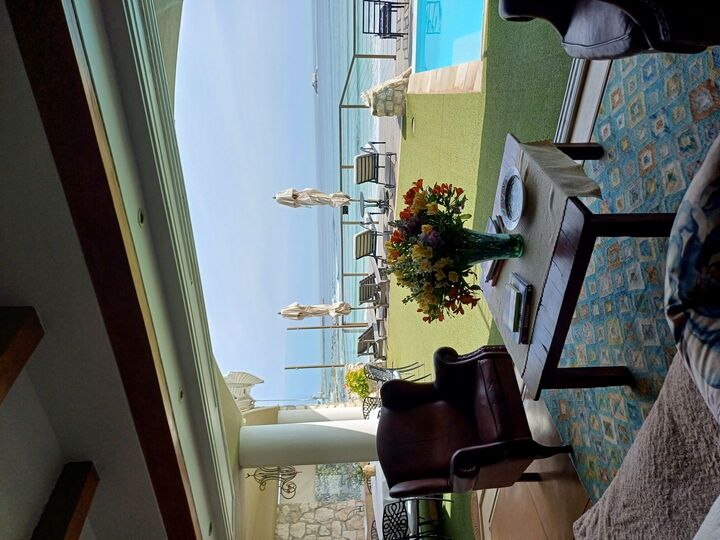 Outside, the allure continues. A sparkling pool beckons for refreshing dips on warm days, while the expansive patio offers the ideal setting for al fresco dining and soaking up the breath taking sea views. Security features include an alarm system and security gates, offering peace of mind.